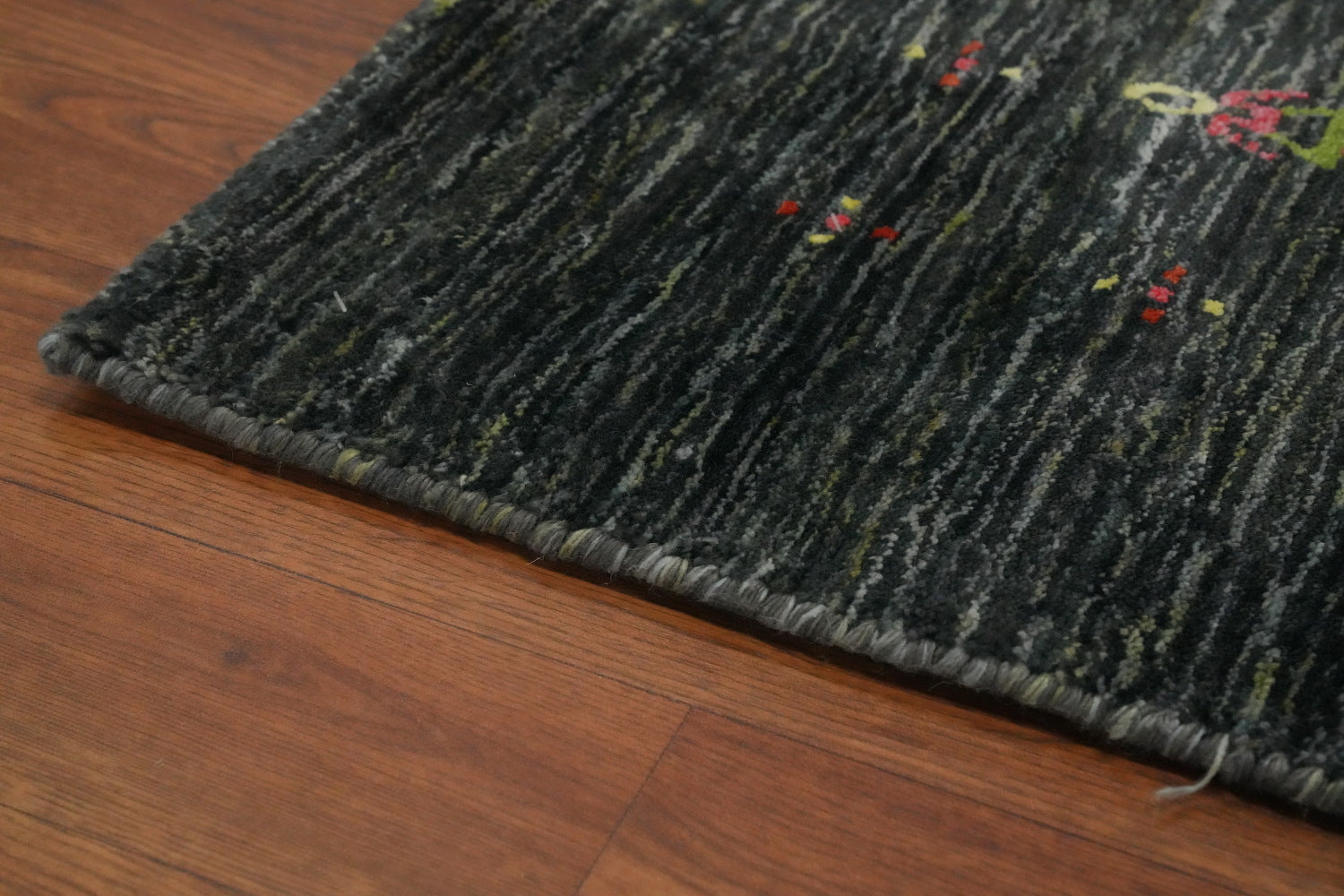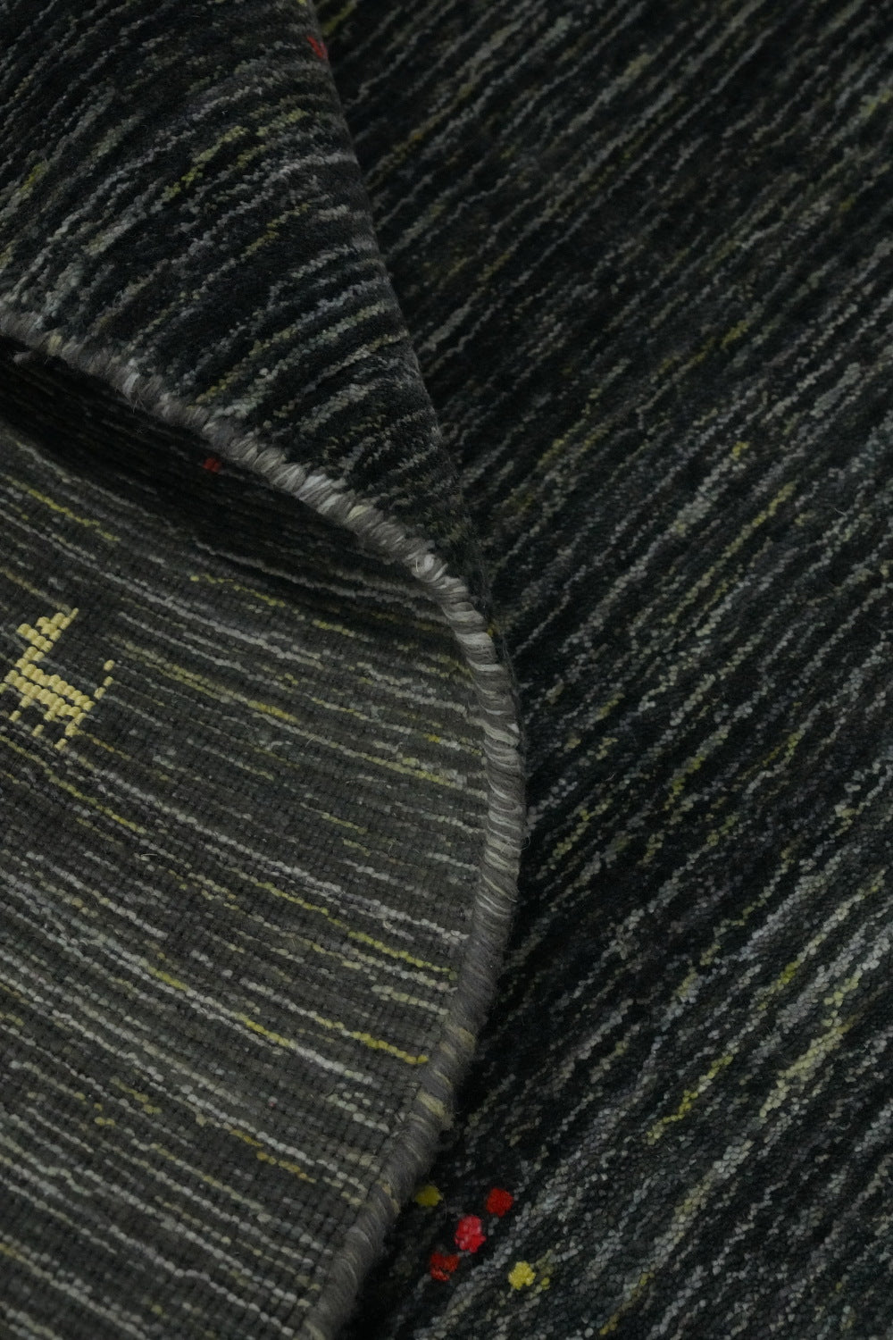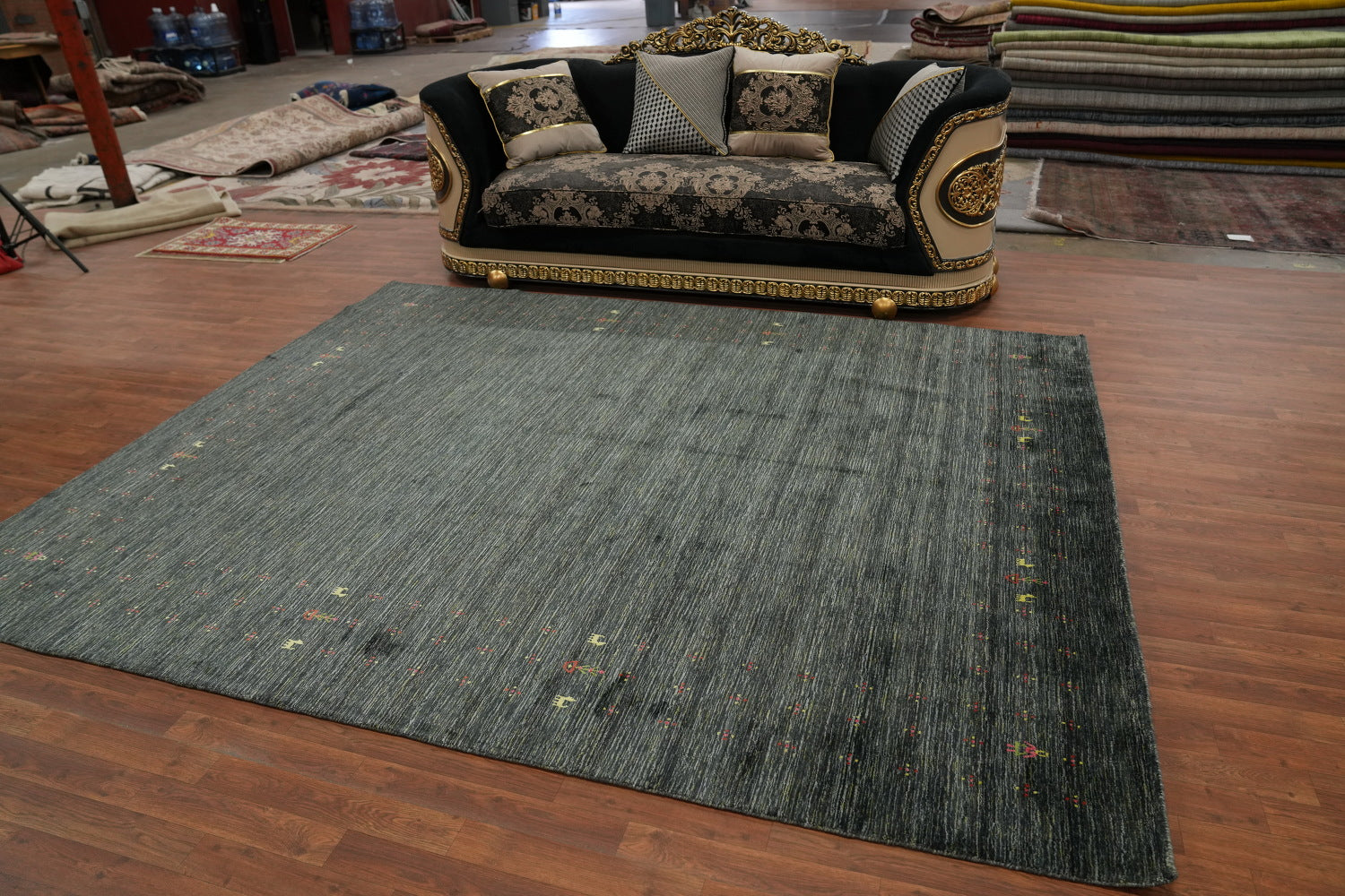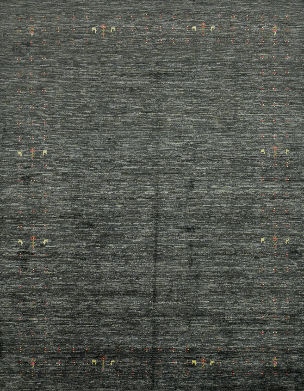 A Beautiful Genuine India Gabbeh rug is Hand Knotted by skillful weavers in India with 100% Wool Material. This rug is in New, First Quality condition. dimensions are 9' 11'' X 7' 10'' in foot and 302 X 239 in centimeter. the primary color is Greys & Charcoal.