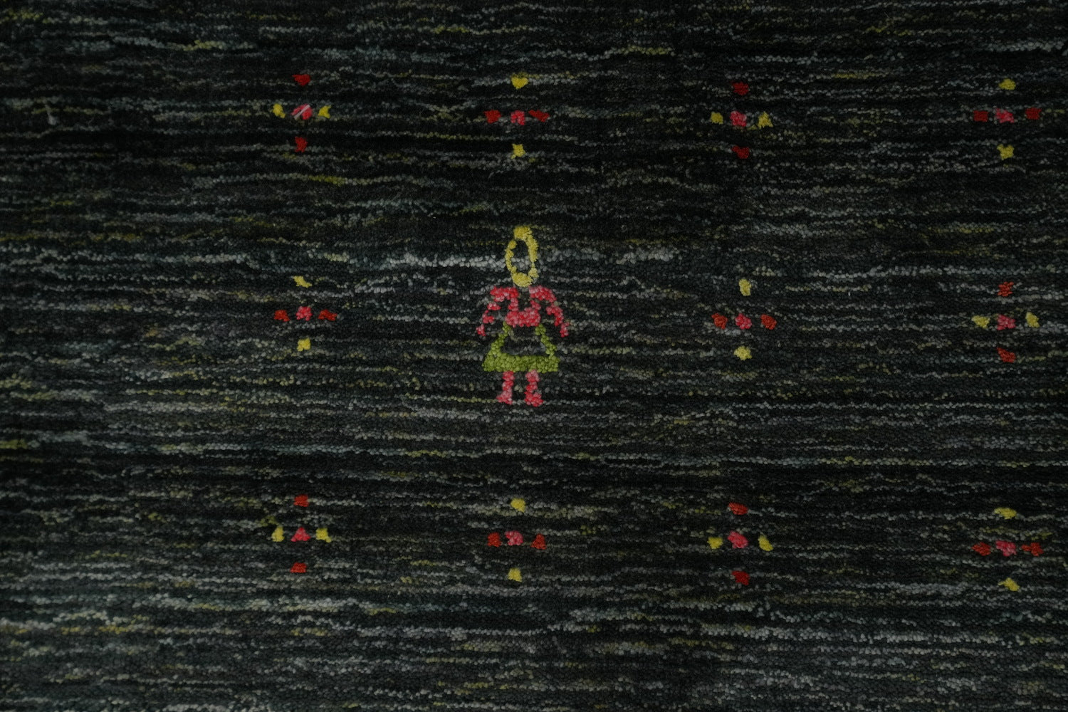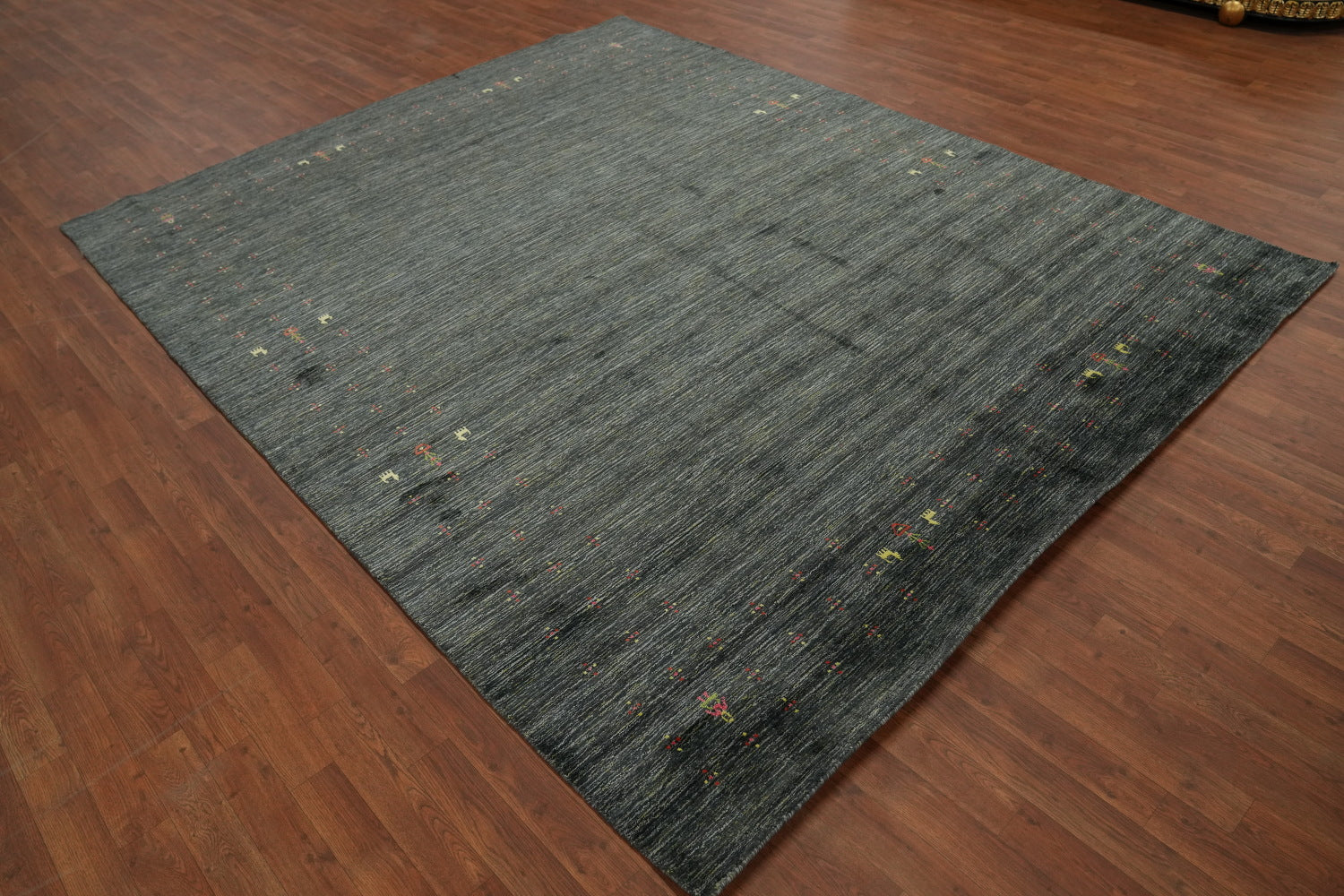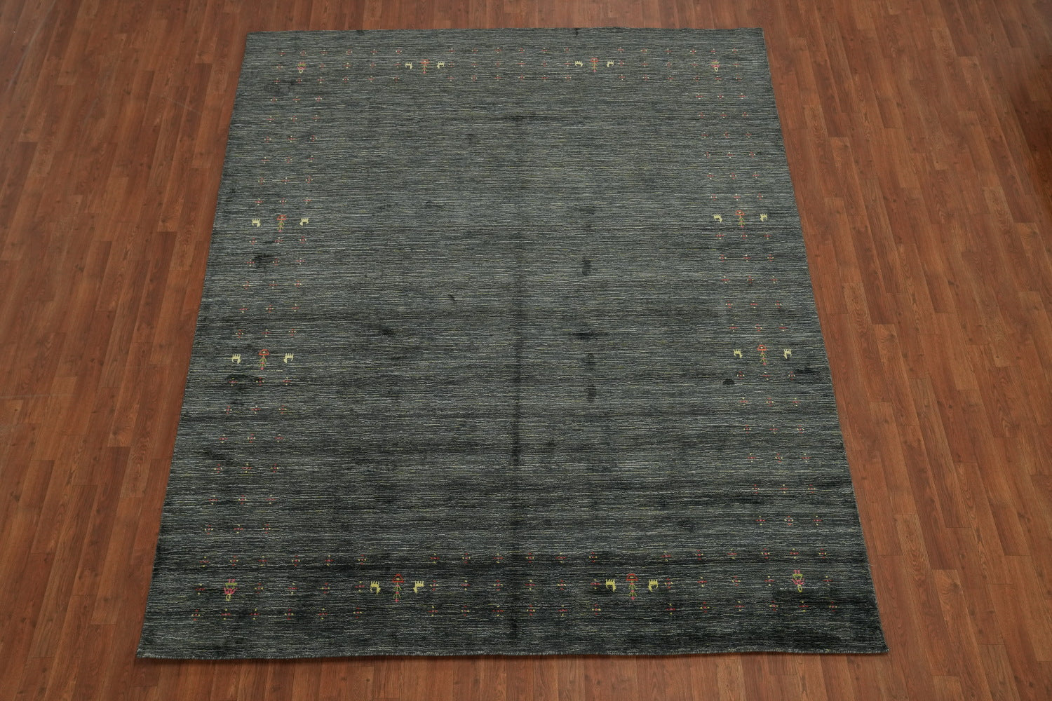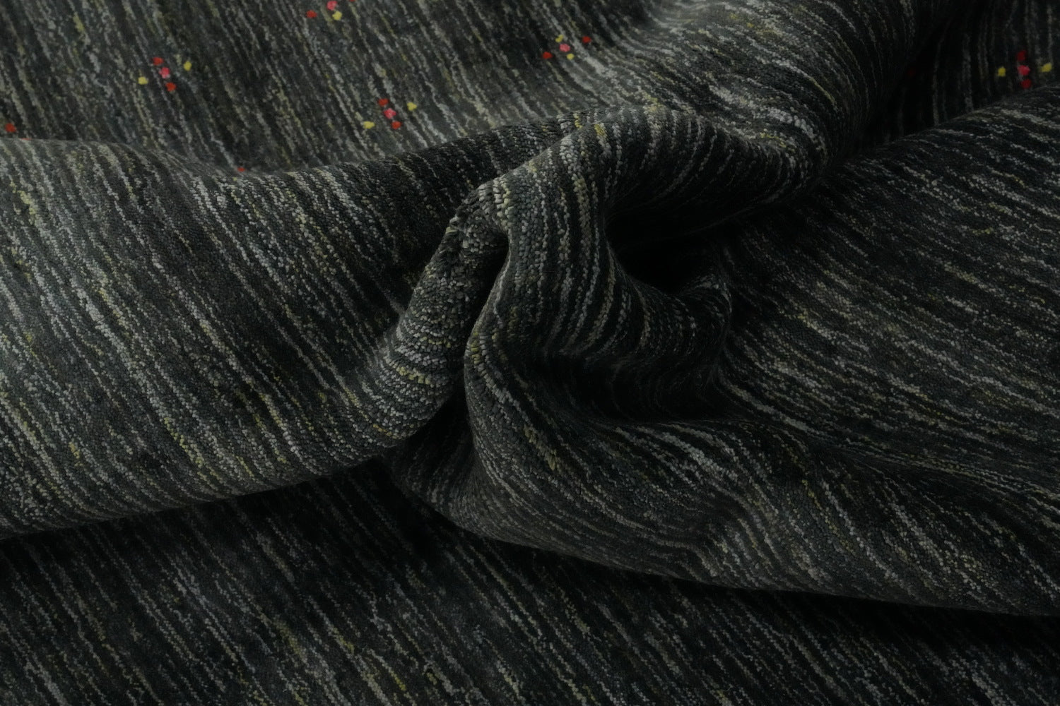 A Beautiful Genuine India Gabbeh rug is Hand Knotted by skillful weavers in India with 100% Wool Material. This rug is in New, First Quality condition. dimensions are 9' 11'' X 7' 10'' in foot and 302 X 239 in centimeter. the primary color is Greys & Charcoal.