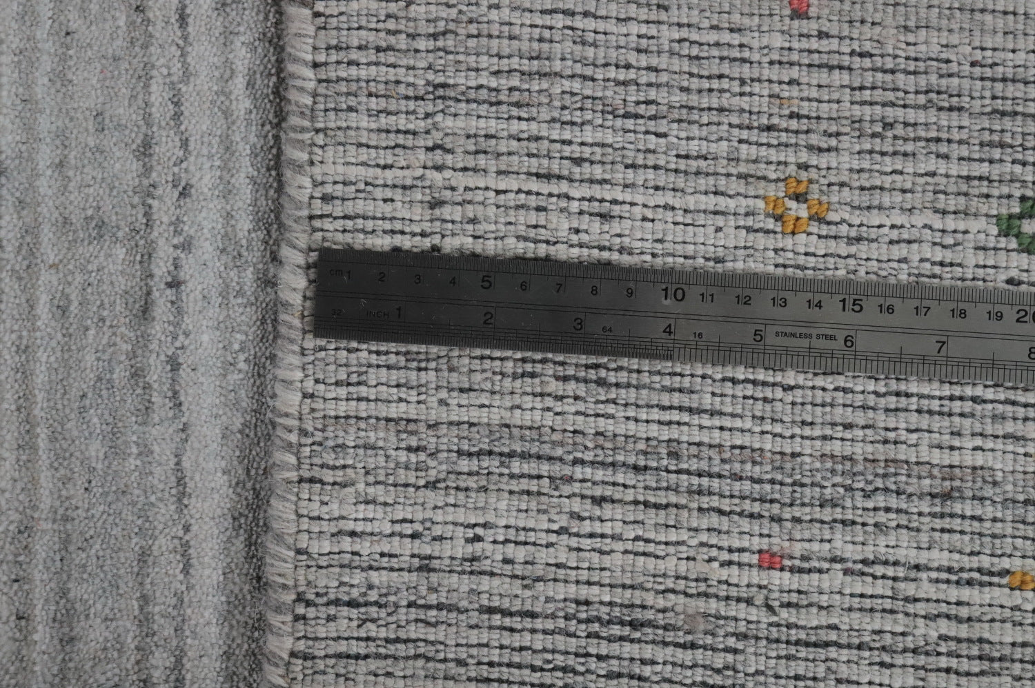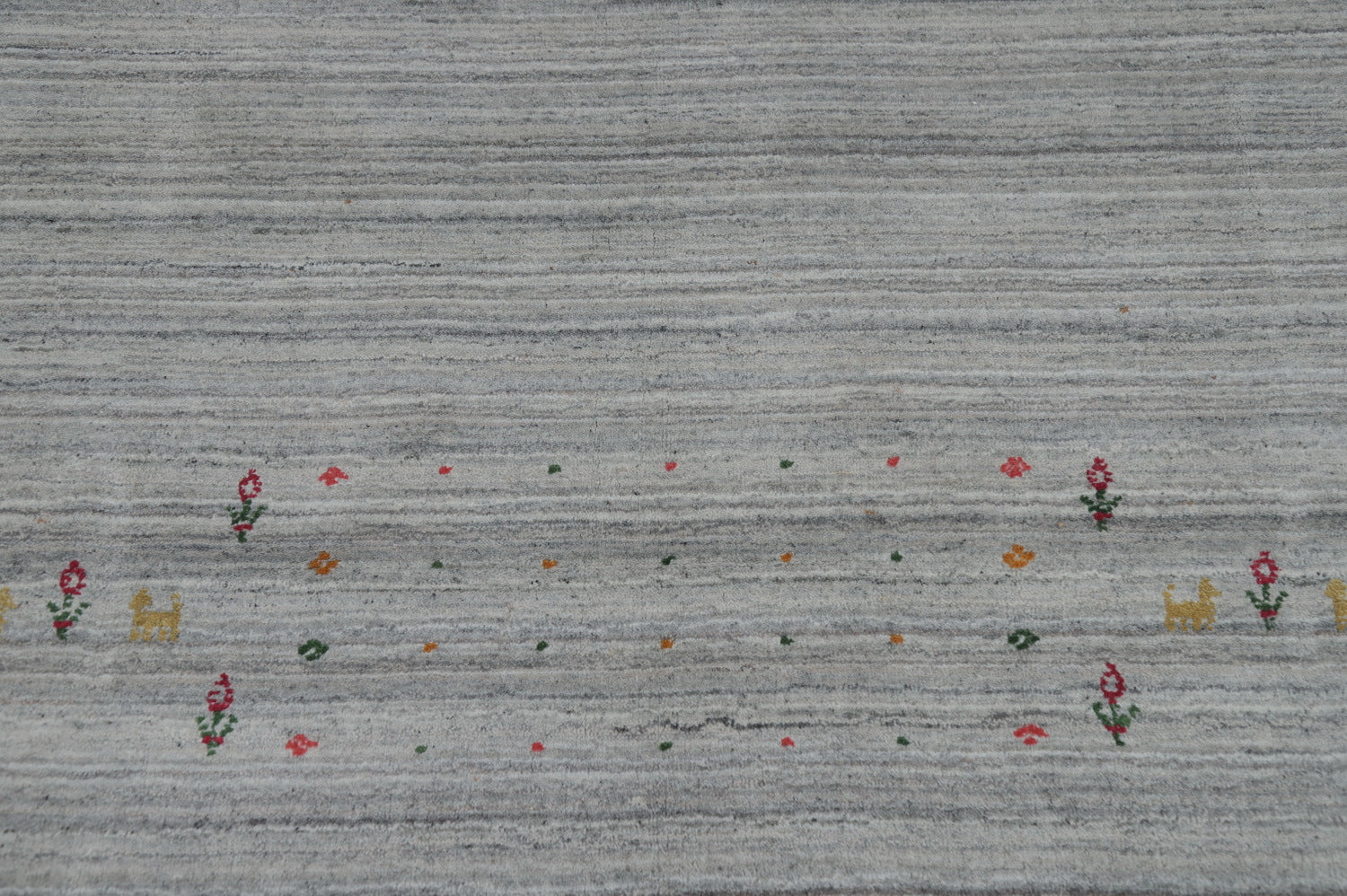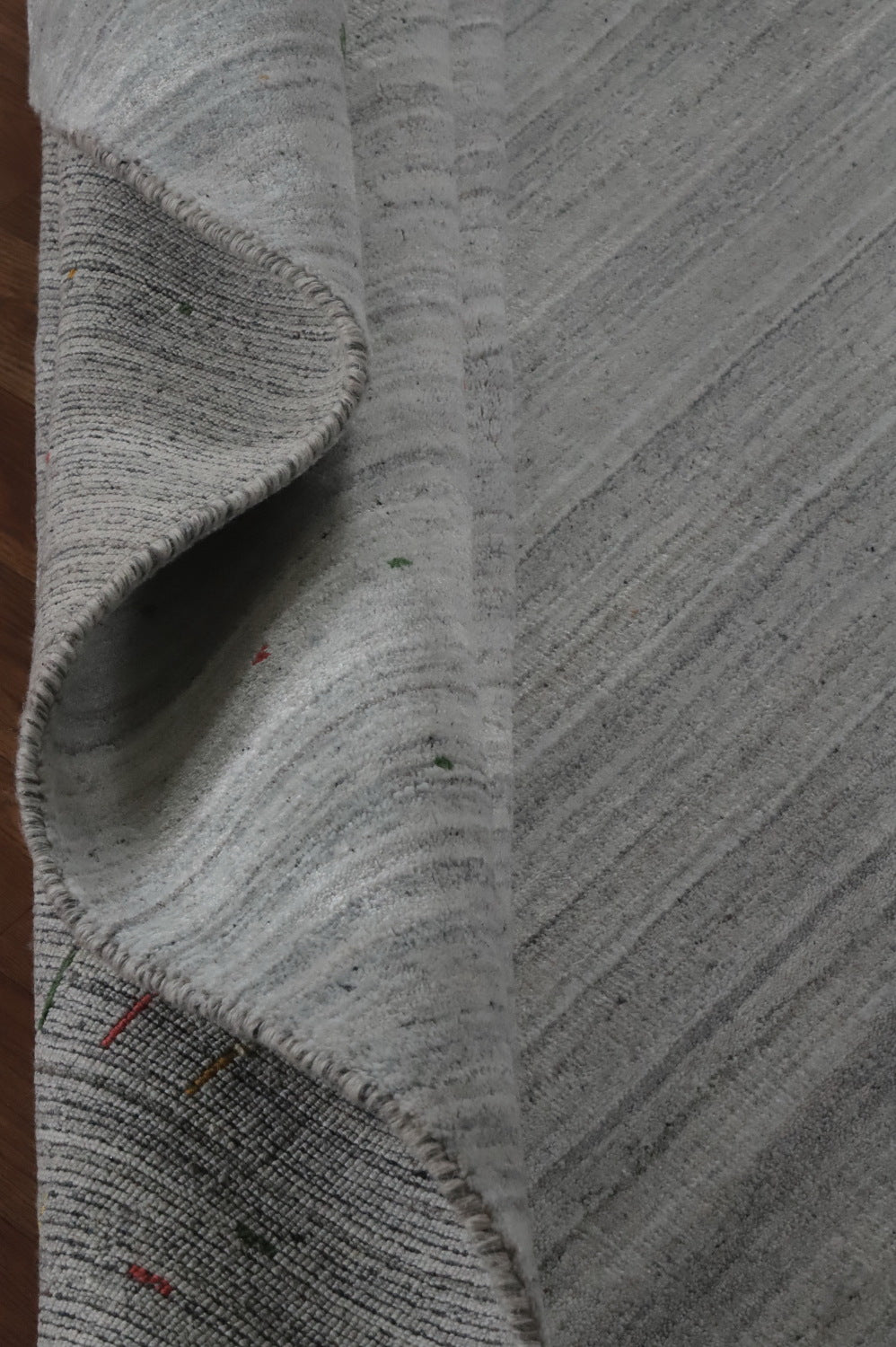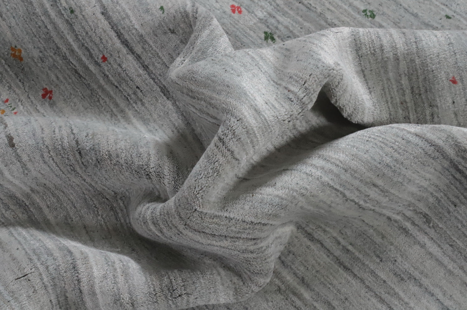 A Beautiful Genuine India Gabbeh rug is Hand Knotted by skillful weavers in India with 100% Wool Material. This rug is in New, First Quality condition. dimensions are 11' 8'' X 9' 3'' in foot and 356 X 282 in centimeter. the primary color is Greys & Charcoal.
