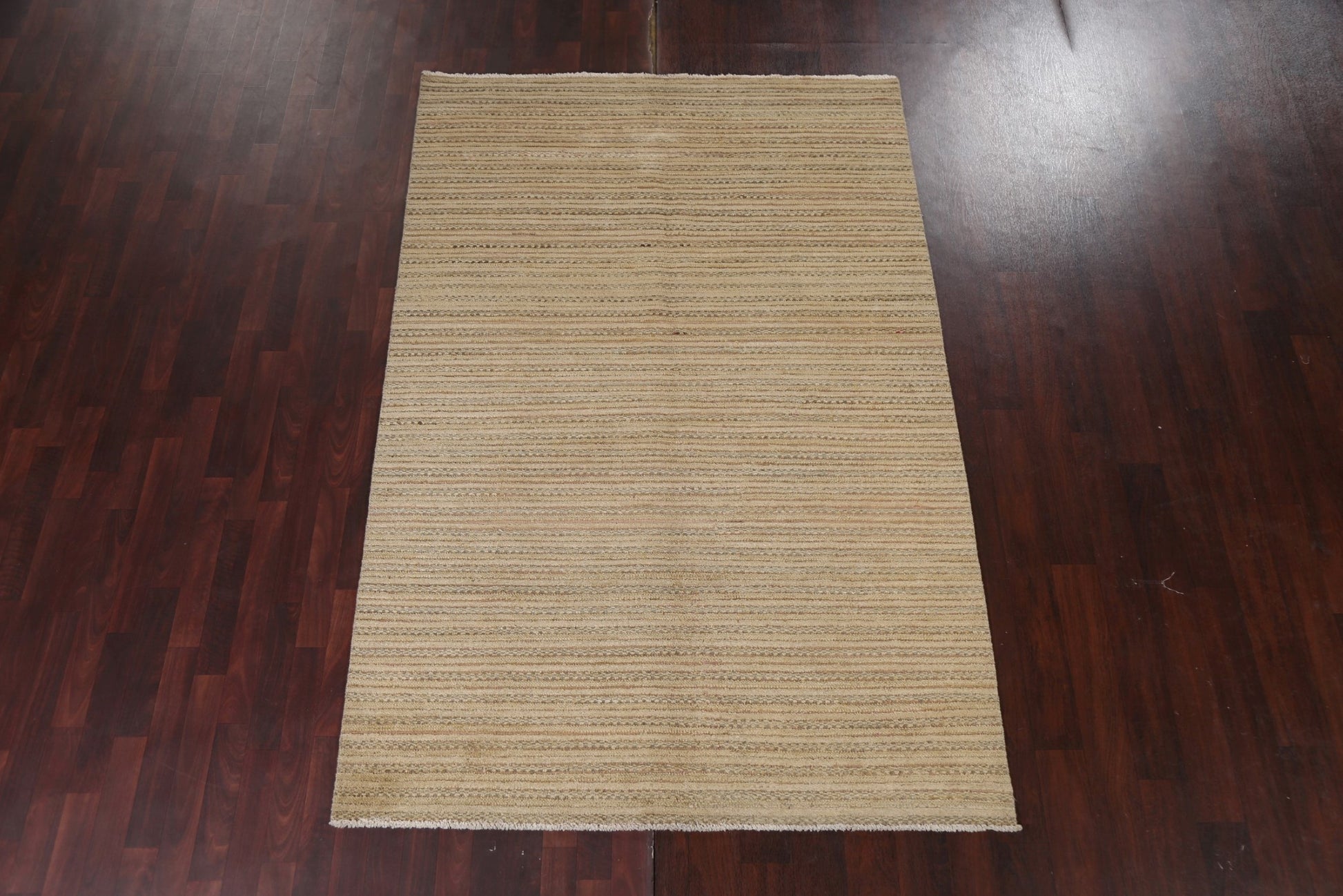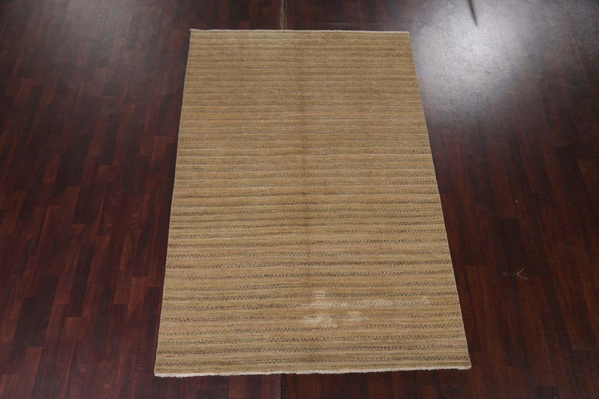 A Beautiful Genuine Pakistan Gabbeh (kashkoli) rug is Hand Knotted by skillful weavers in Pakistan with 100% Wool Material. This rug is in New, First Quality condition. dimensions are 8' 3'' X 5' 6'' in foot and 251 X 168 in centimeter. the primary color is Beige & Ivories.