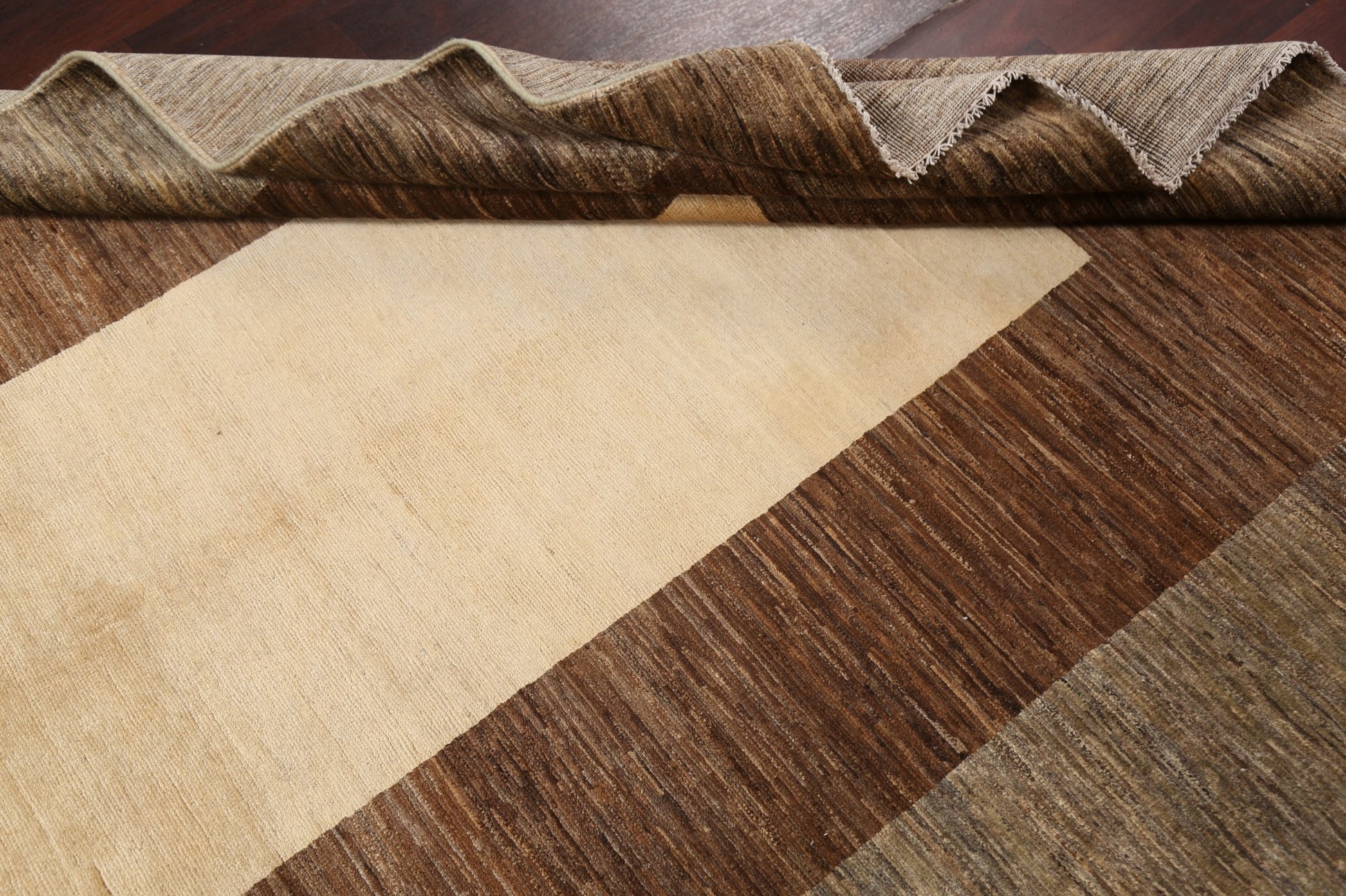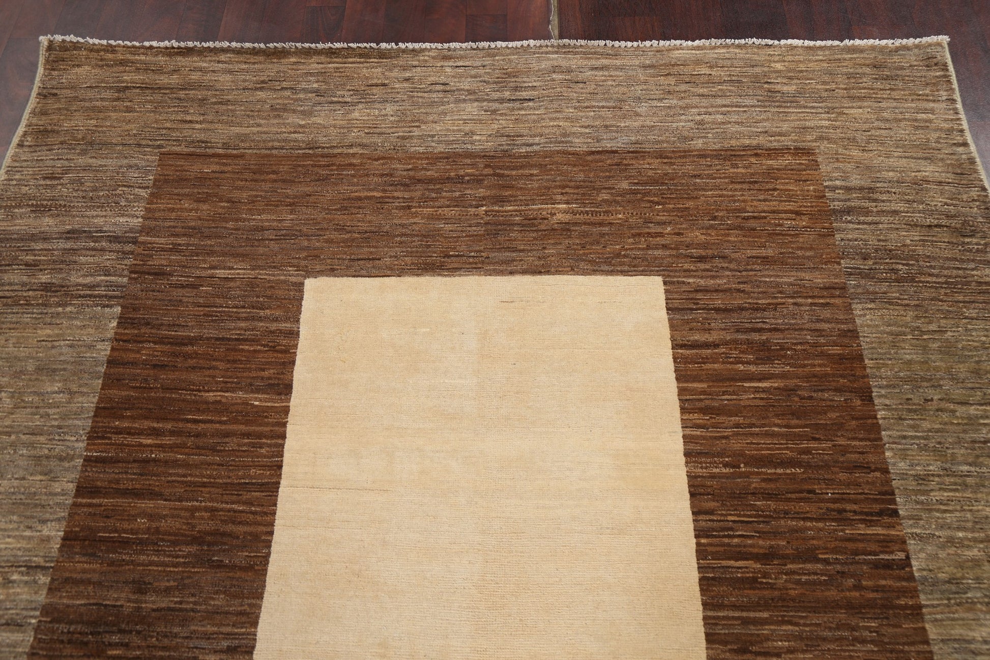 A Beautiful Genuine Pakistan Gabbeh (kashkoli) rug is Hand Knotted by skillful weavers in Pakistan with 100% Wool Material. This rug is in New, First Quality condition. dimensions are 8' 7'' X 5' 8'' in foot and 262 X 173 in centimeter. the primary color is Brown.