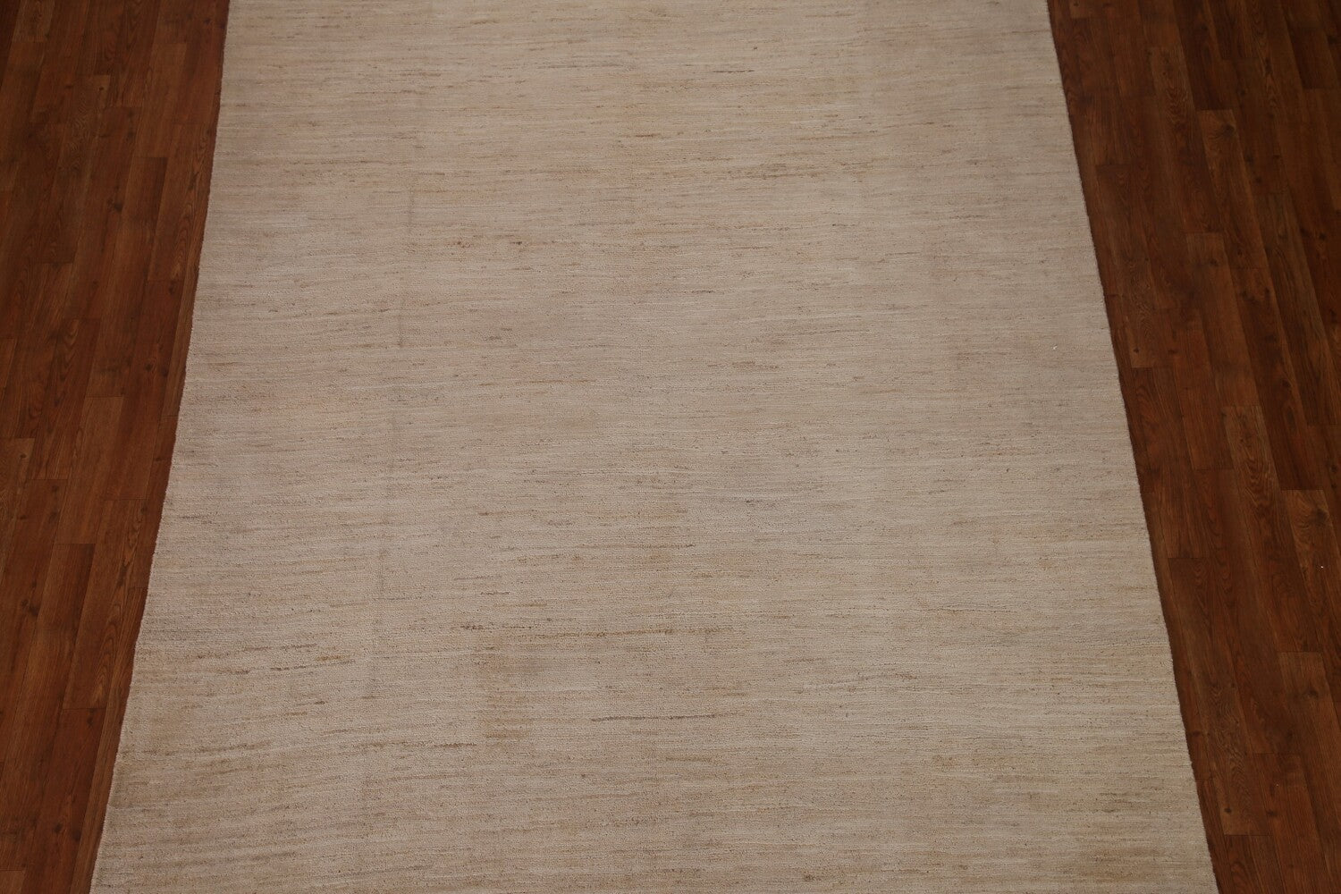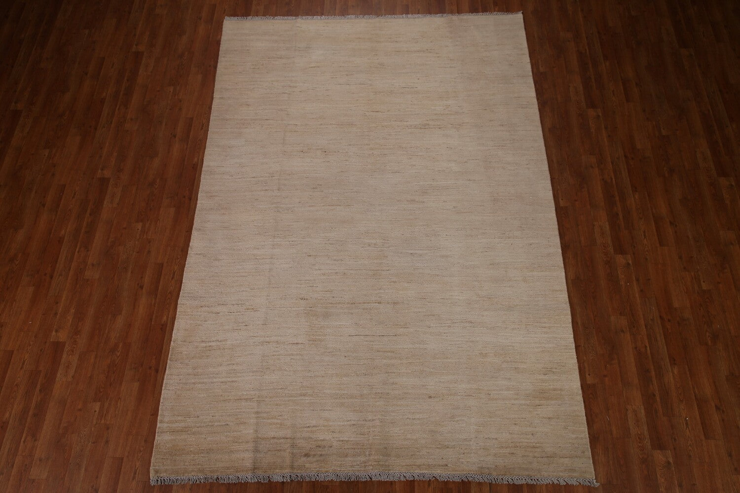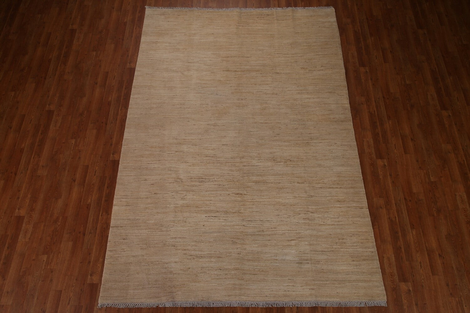 A Beautiful Genuine Pakistan Gabbeh (kashkoli) rug is Hand Knotted by skillful weavers in Pakistan with 100% Wool Material. This rug is in New, First Quality condition. dimensions are 9' 6'' X 6' 7'' in foot and 290 X 201 in centimeter. the primary color is Beige & Ivories.