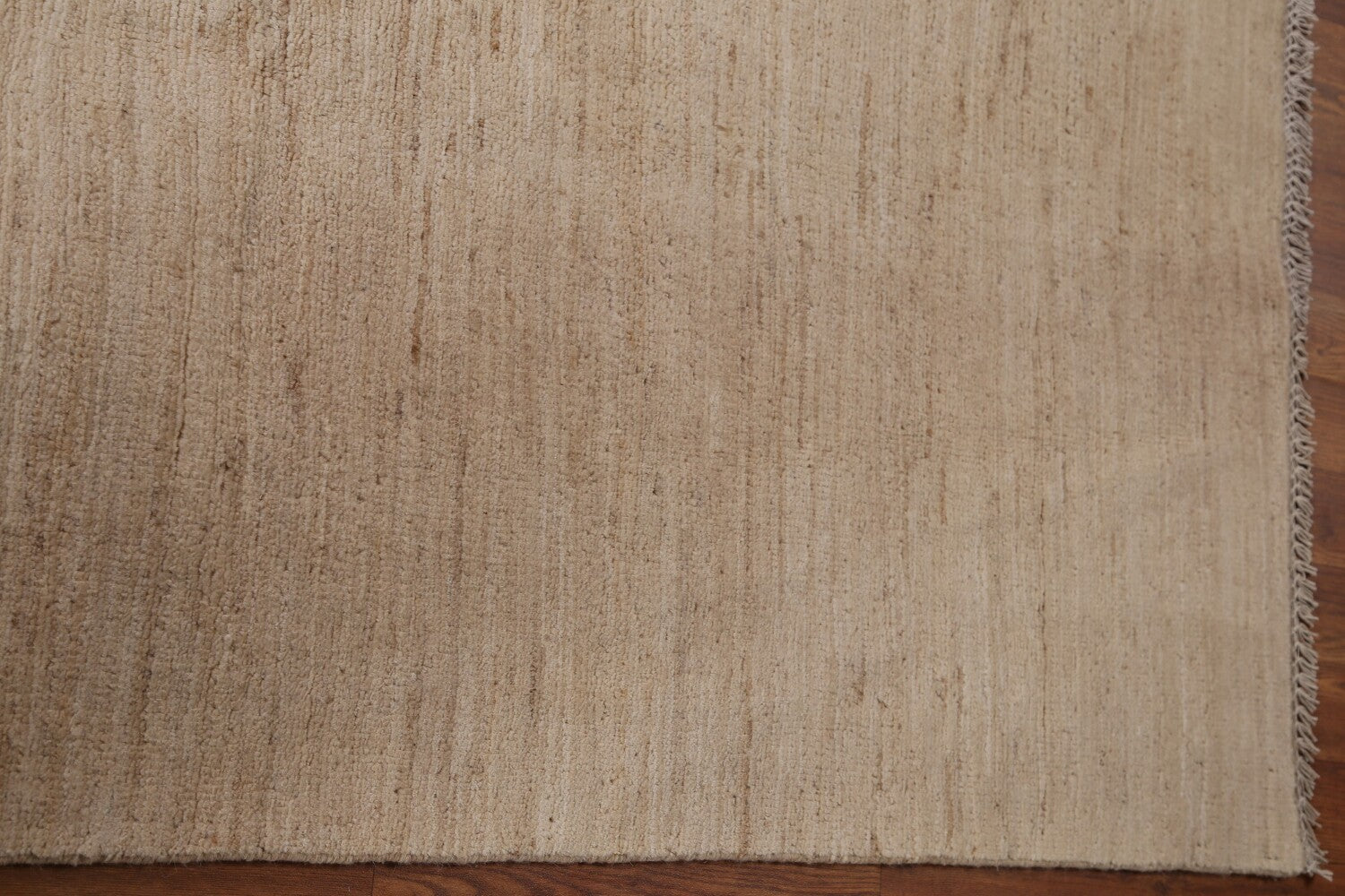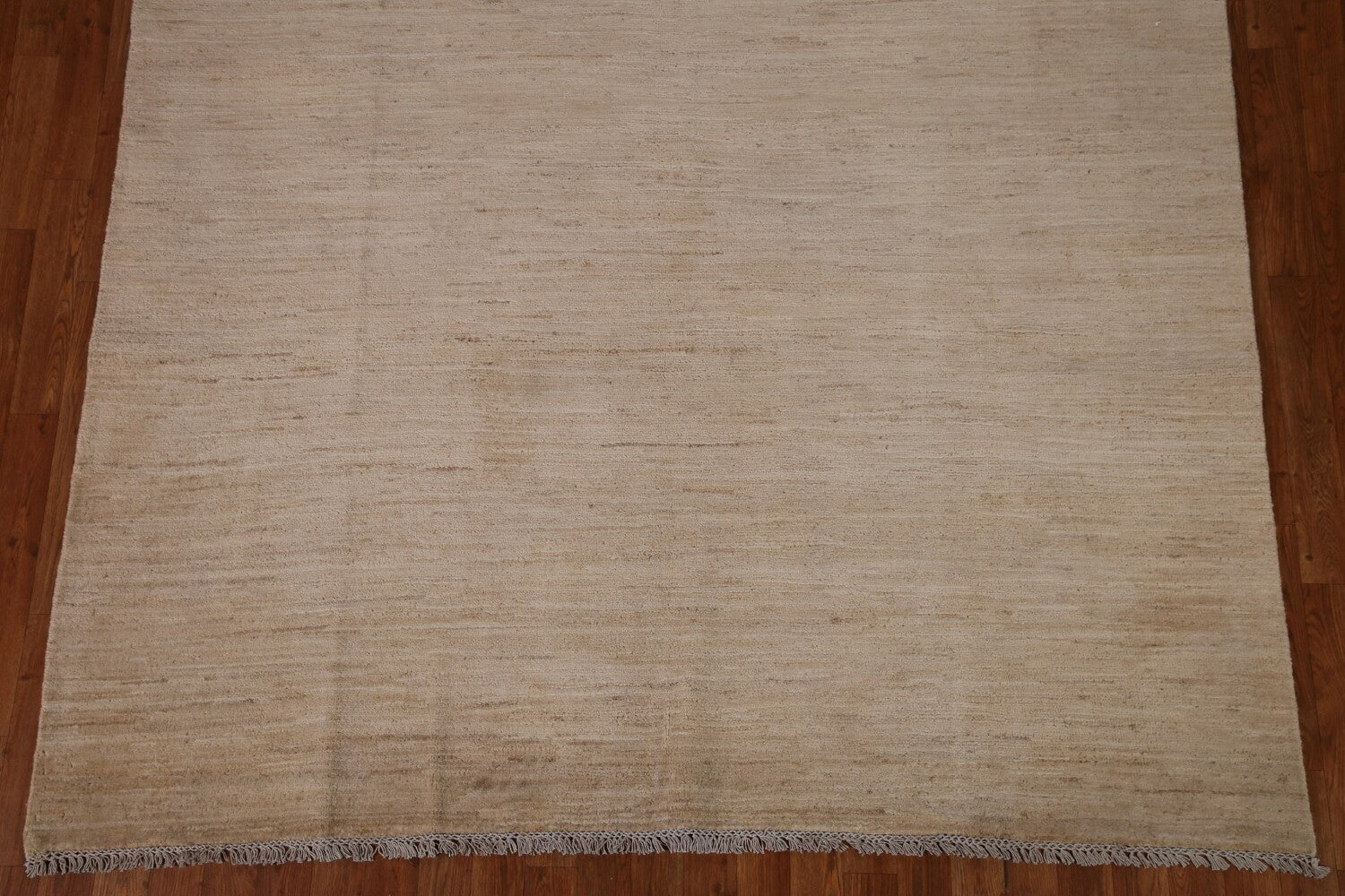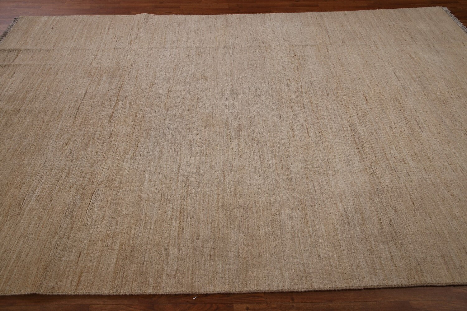 A Beautiful Genuine Pakistan Gabbeh (kashkoli) rug is Hand Knotted by skillful weavers in Pakistan with 100% Wool Material. This rug is in New, First Quality condition. dimensions are 9' 6'' X 6' 7'' in foot and 290 X 201 in centimeter. the primary color is Beige & Ivories.