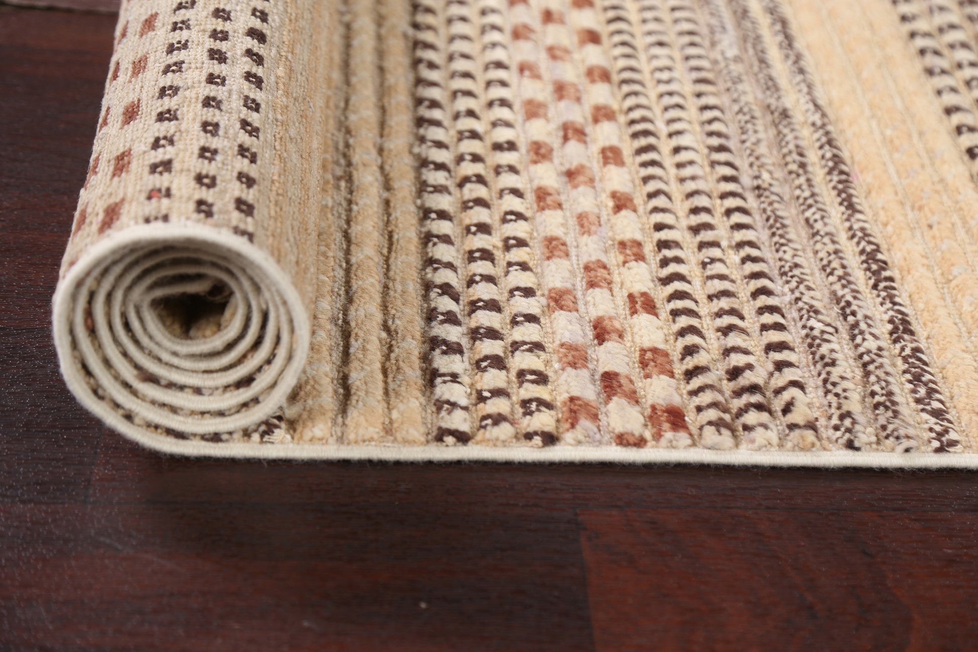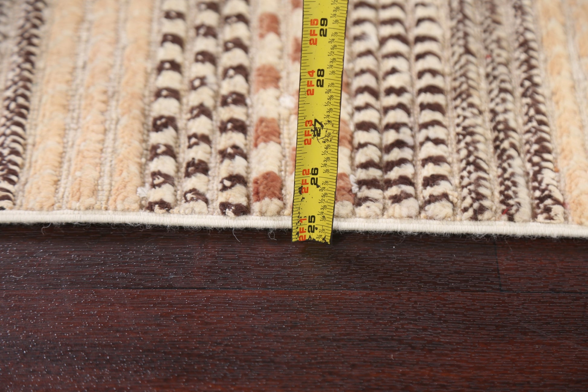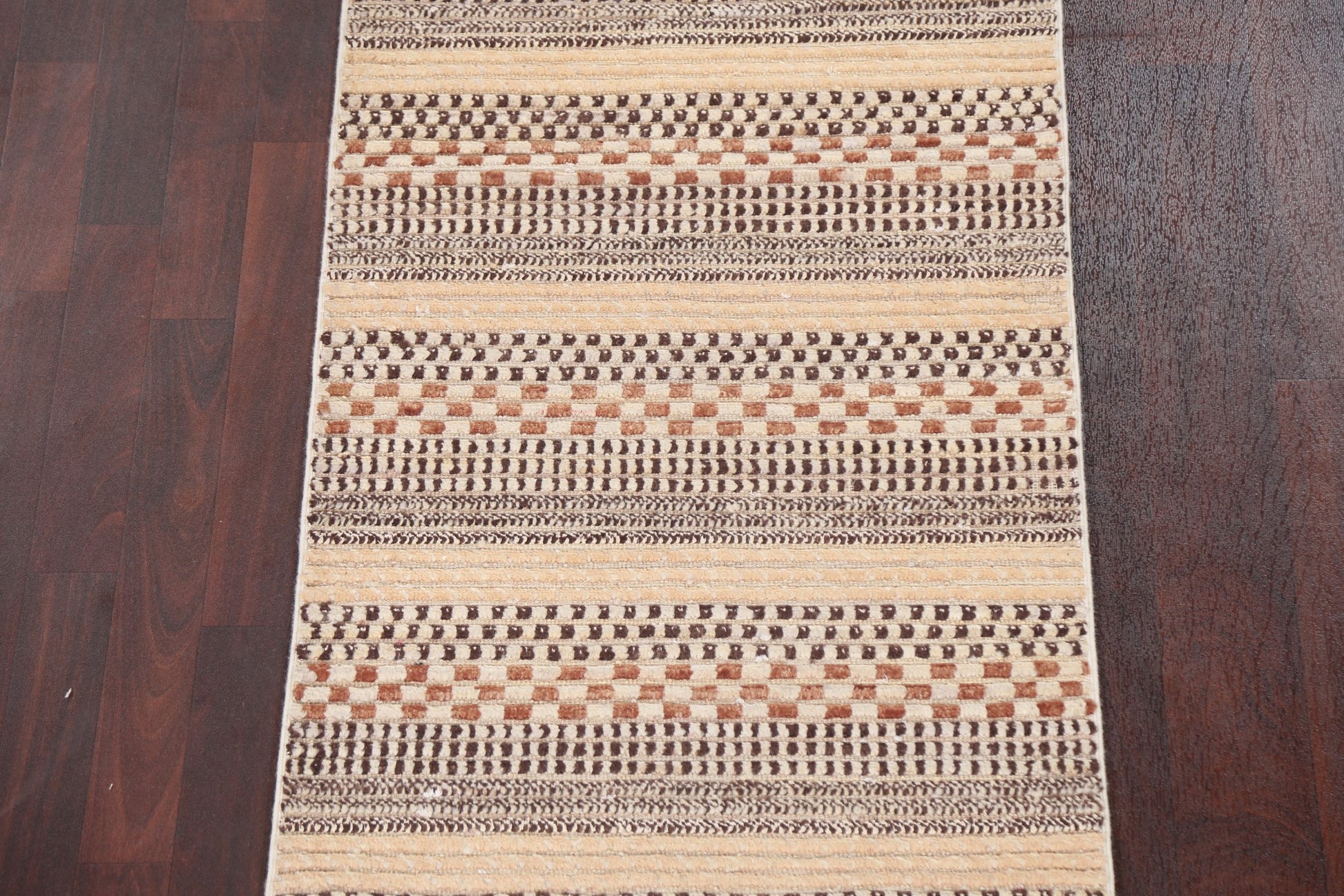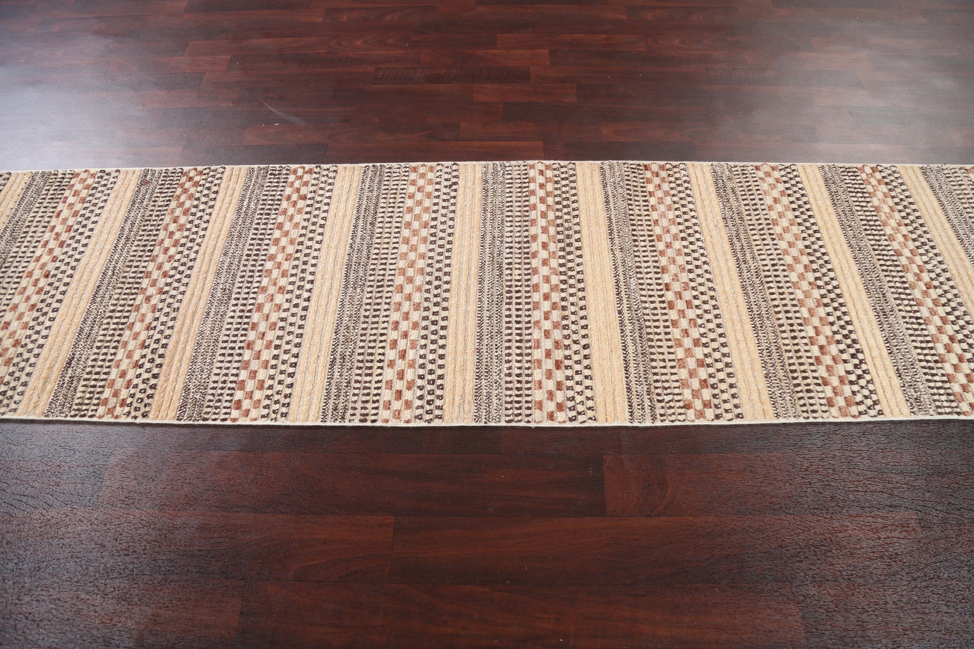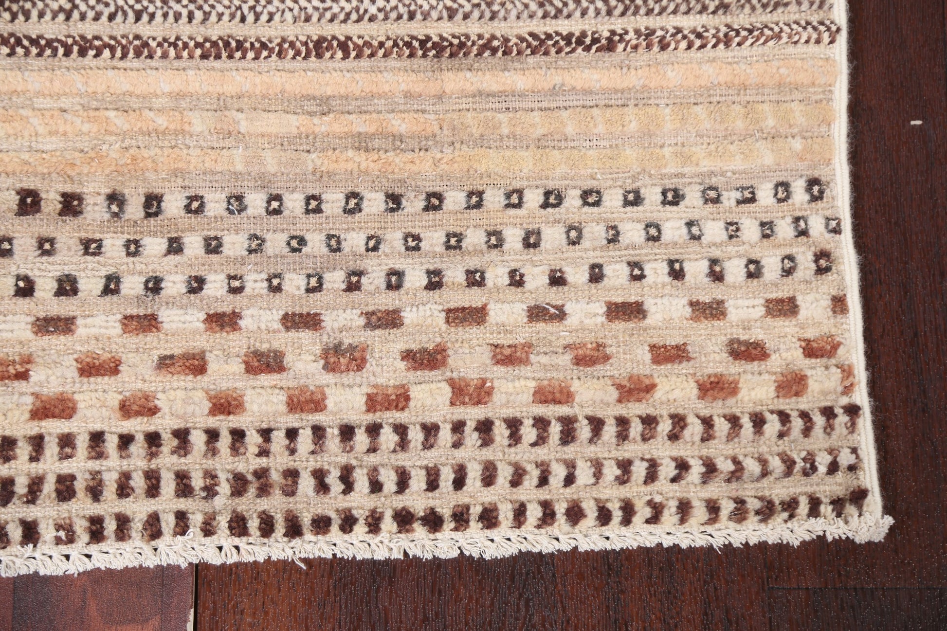 A Beautiful Genuine Pakistan Gabbeh (kashkoli) rug is Hand Knotted by skillful weavers in Pakistan with 100% Wool Material. This rug is in New, First Quality condition. dimensions are 12' 5'' X 2' 6'' in foot and 378 X 76 in centimeter. the primary color is Beige & Ivories.
