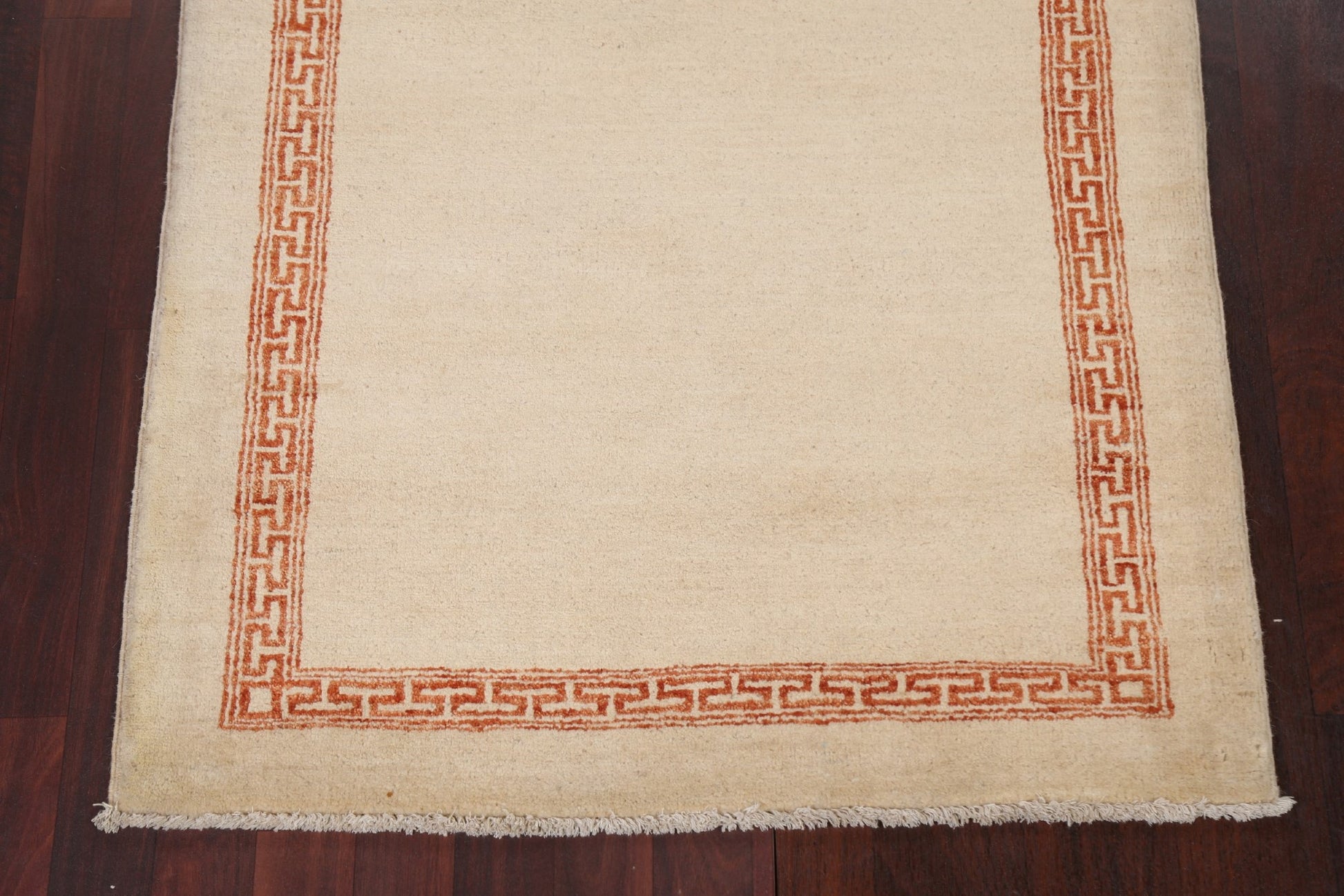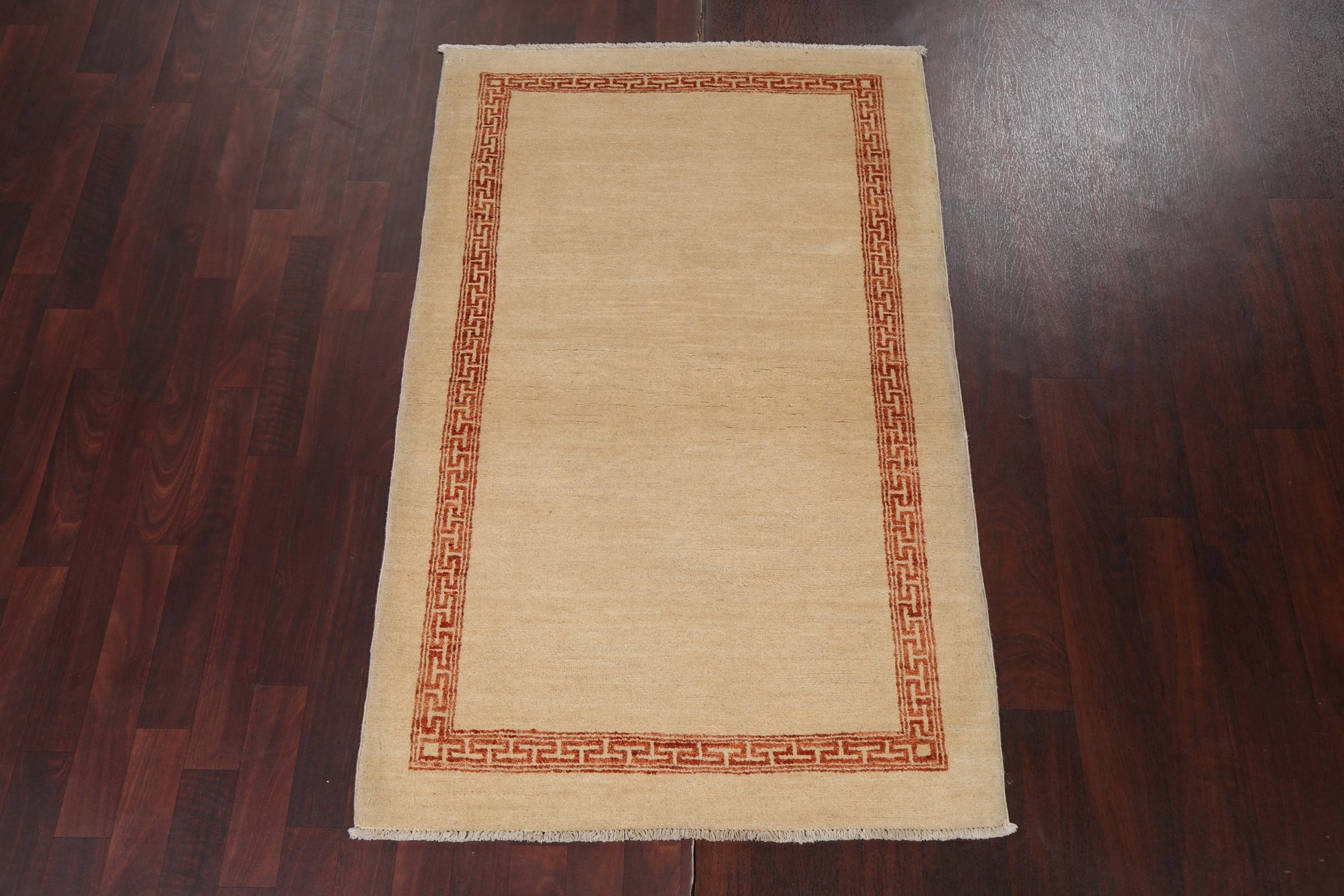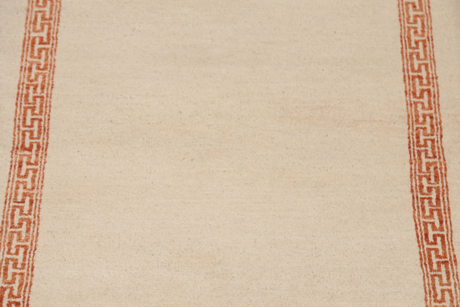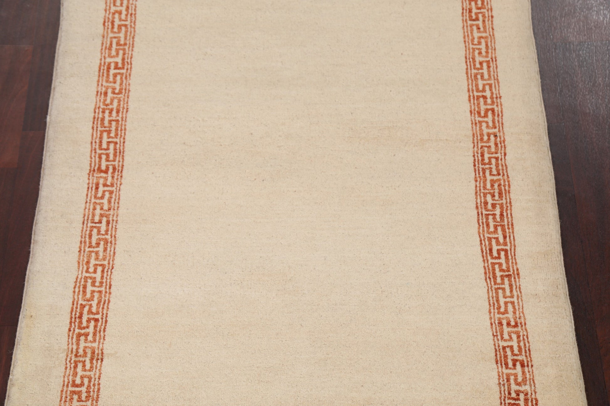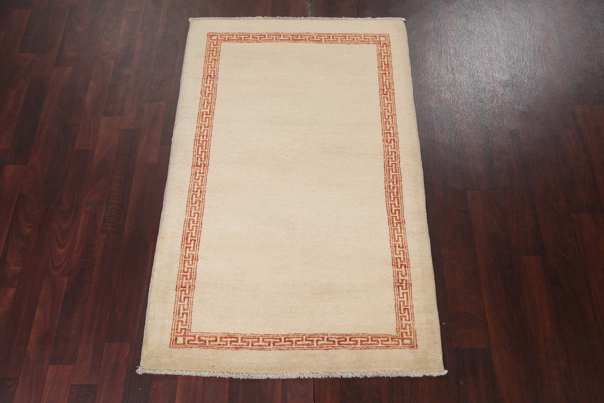 A Beautiful Genuine Pakistan Gabbeh (kashkoli) rug is Hand Knotted by skillful weavers in Pakistan with 100% Wool Material. This rug is in New, First Quality condition. dimensions are 5' 3'' X 3' 4'' in foot and 160 X 102 in centimeter. the primary color is Beige & Ivories.