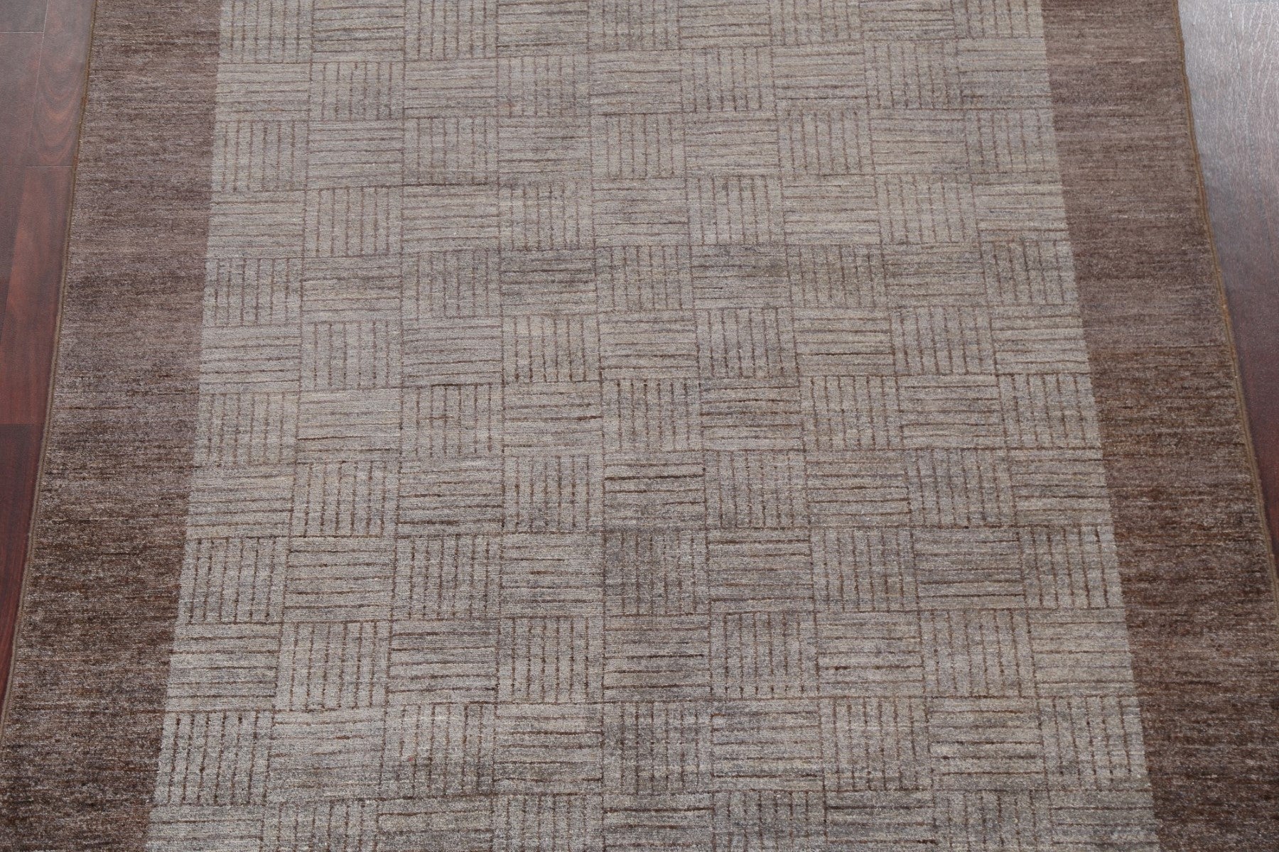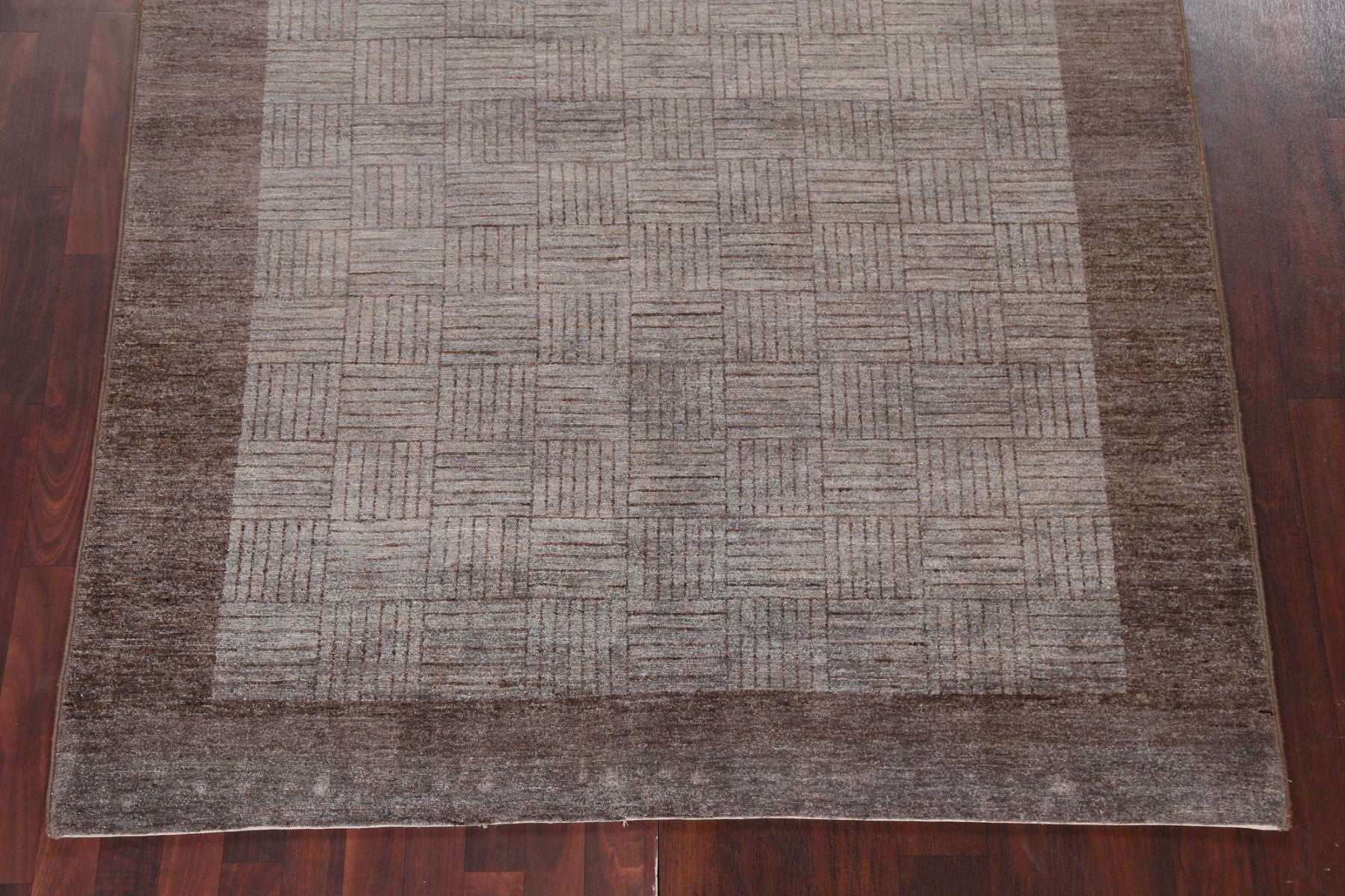 A Beautiful Genuine Pakistan Gabbeh (kashkoli) rug is Hand Knotted by skillful weavers in Pakistan with 100% Wool Material. This rug is in New, First Quality condition. dimensions are 7' 6'' X 5' 9'' in foot and 229 X 175 in centimeter. the primary color is Greys & Charcoal.