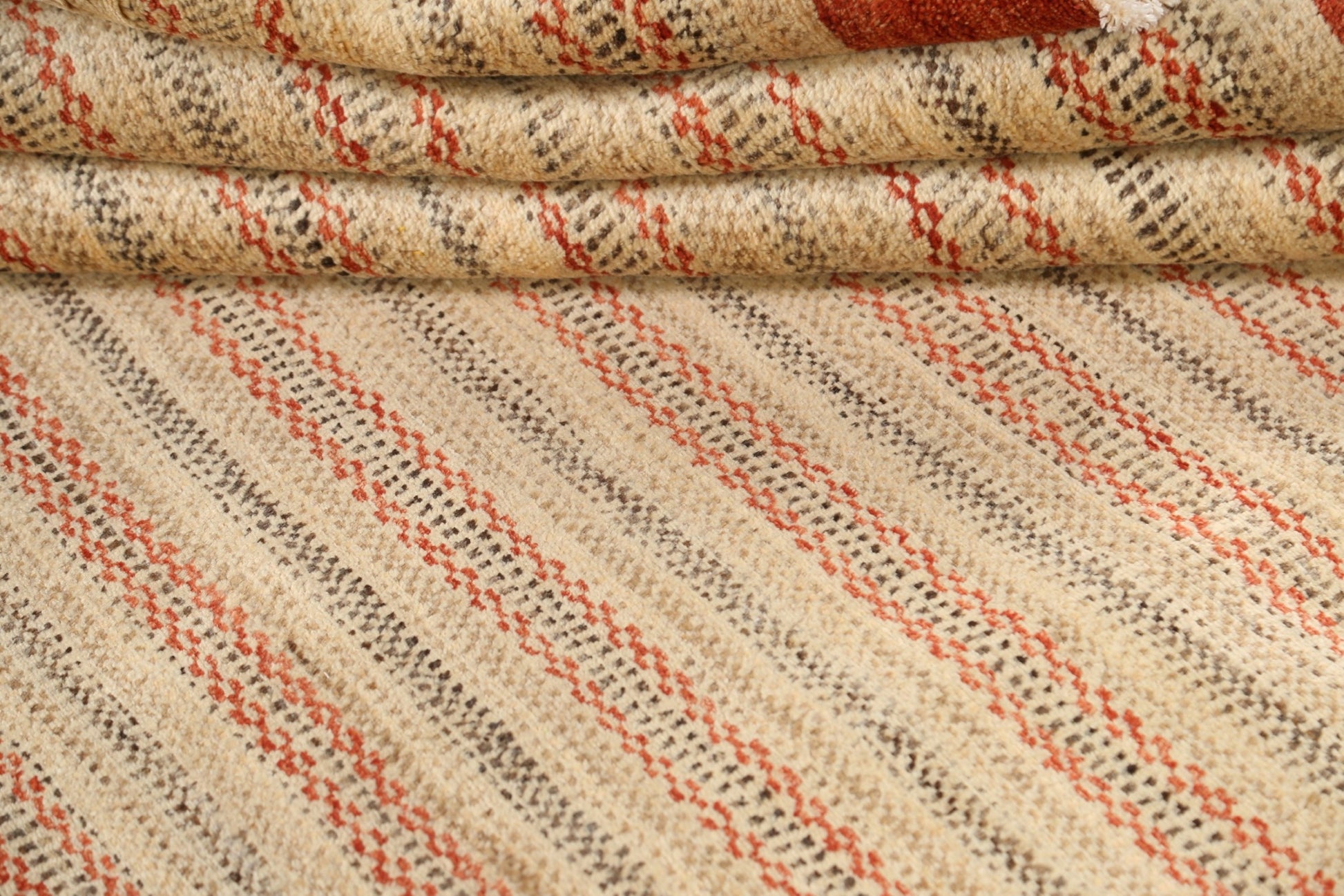 A Beautiful Genuine Pakistan Gabbeh (kashkoli) rug is Hand Knotted by skillful weavers in Pakistan with 100% Wool Material. This rug is in New, First Quality condition. dimensions are 9' 10'' X 6' 6'' in foot and 300 X 198 in centimeter. the primary color is Beige & Ivories.