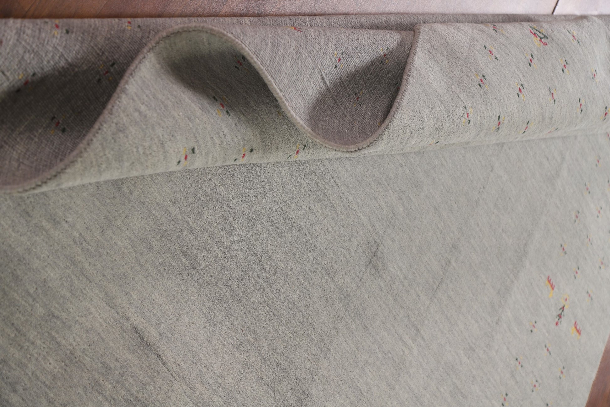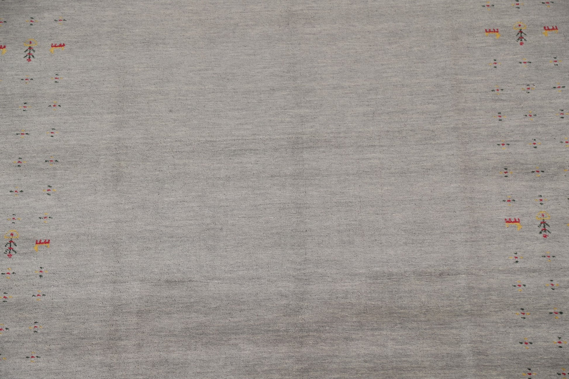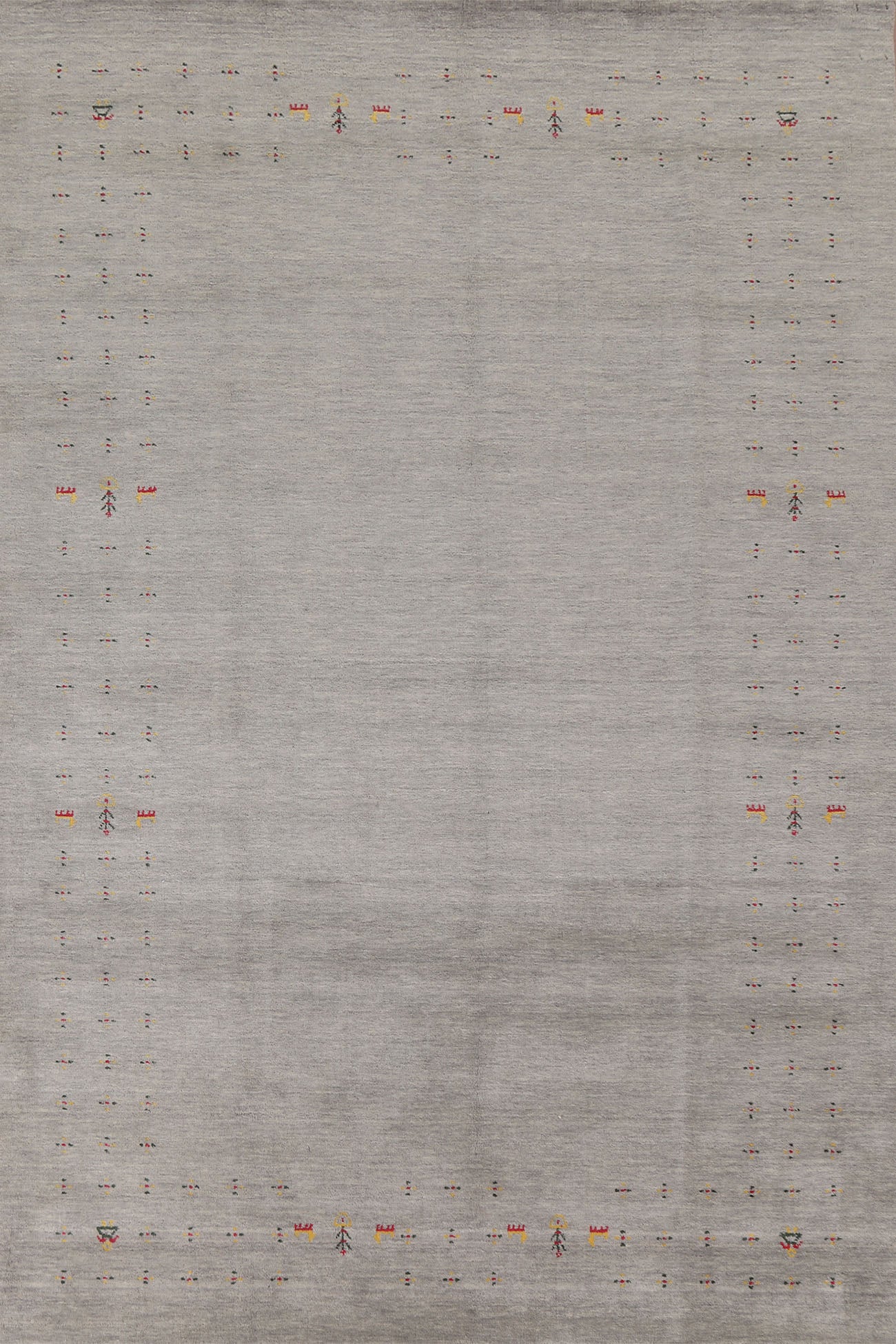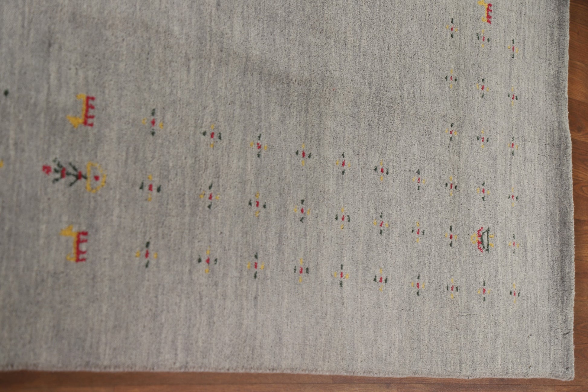 A Beautiful Genuine India Gabbeh rug is Hand Knotted by skillful weavers in India with 100% Wool Material. This rug is in New, First Quality condition. dimensions are 9' 9'' X 6' 8'' in foot and 297 X 203 in centimeter. the primary color is Greys & Charcoal.