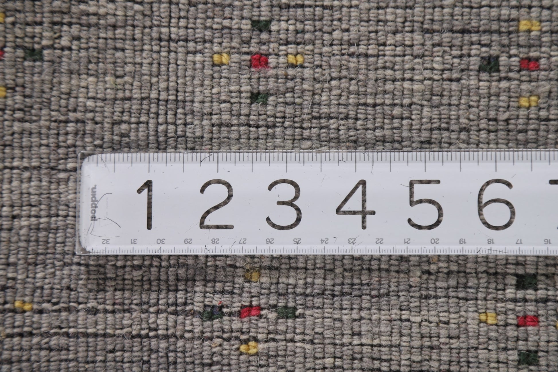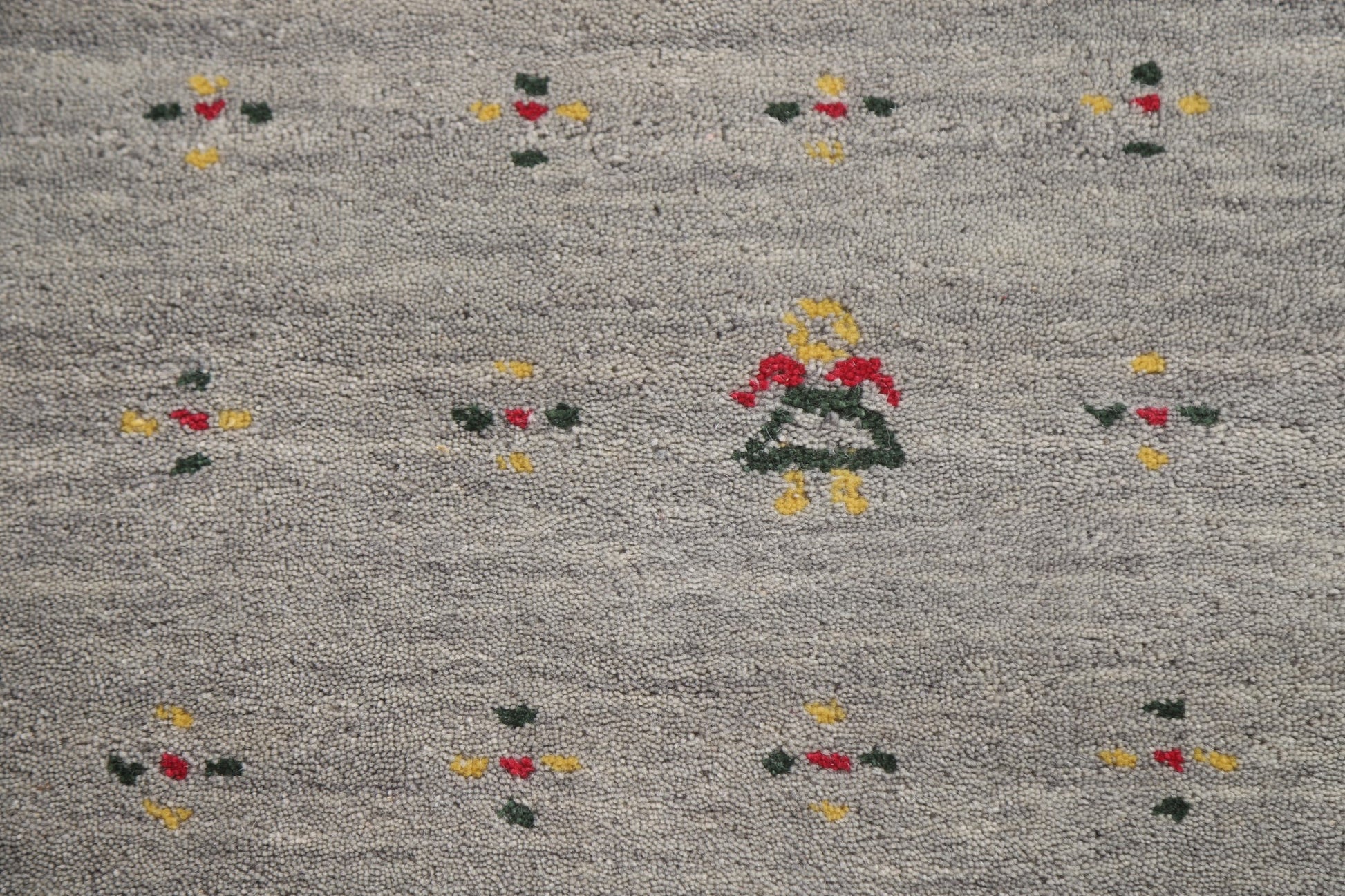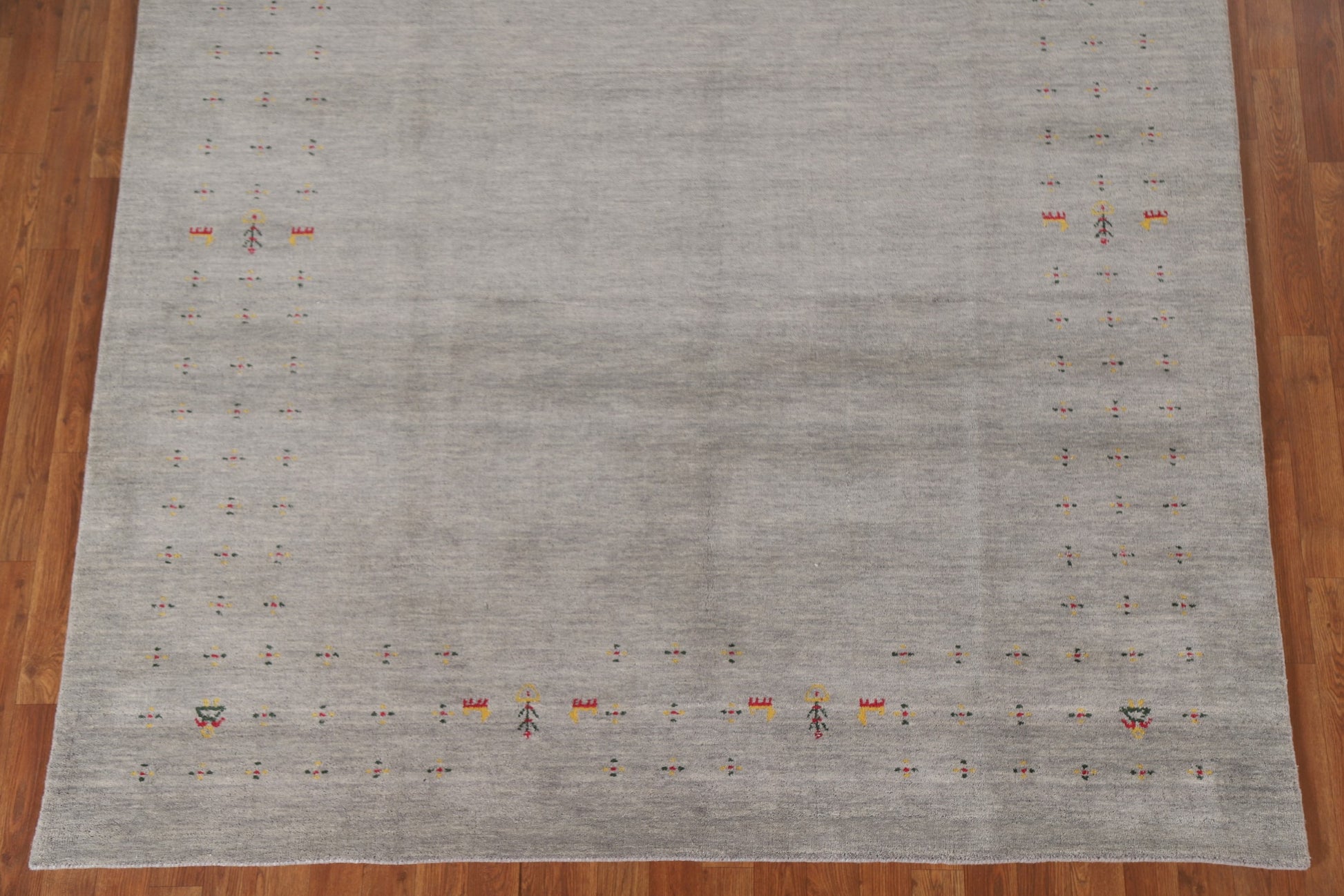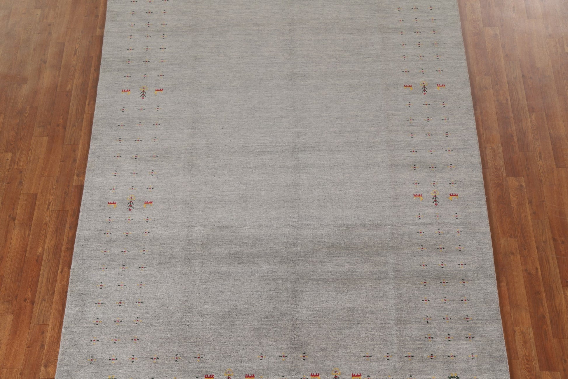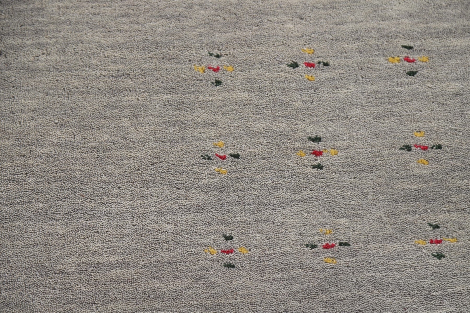 A Beautiful Genuine India Gabbeh rug is Hand Knotted by skillful weavers in India with 100% Wool Material. This rug is in New, First Quality condition. dimensions are 9' 9'' X 6' 8'' in foot and 297 X 203 in centimeter. the primary color is Greys & Charcoal.