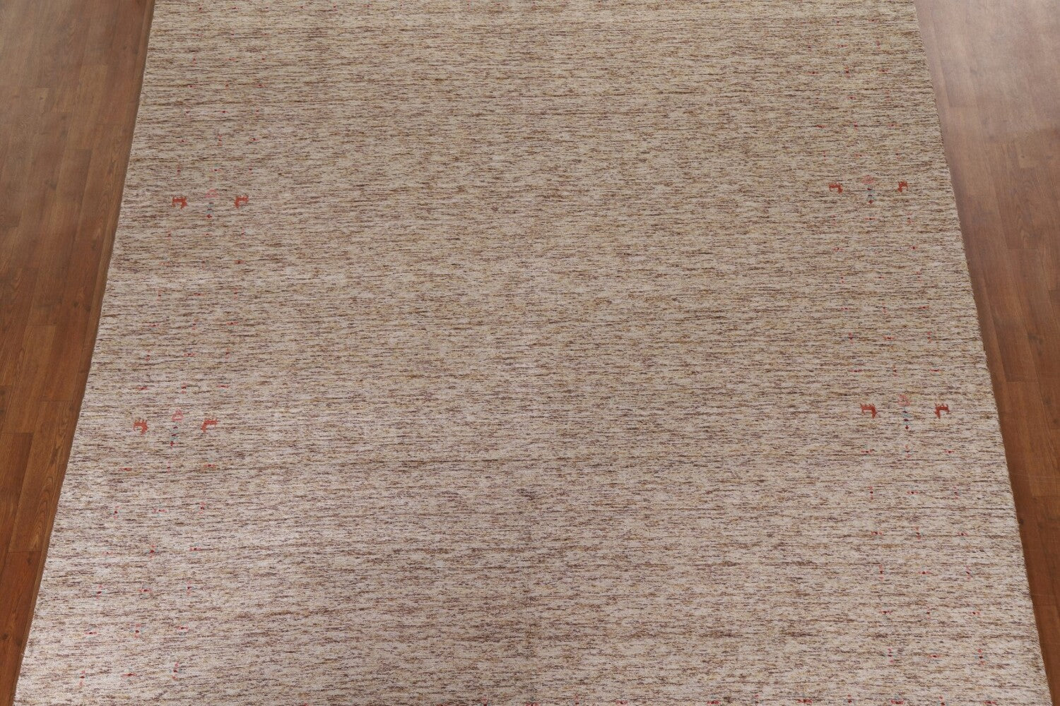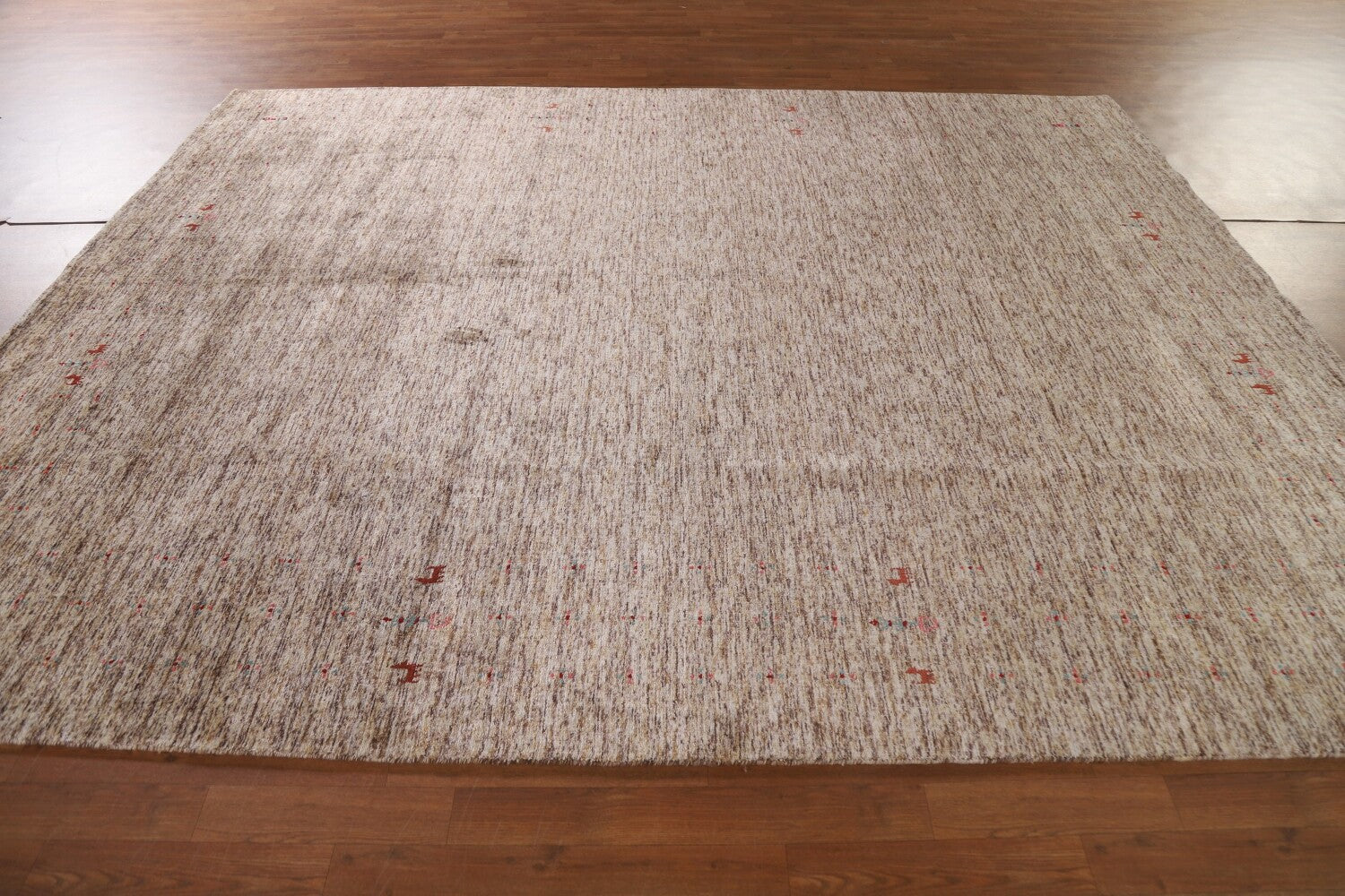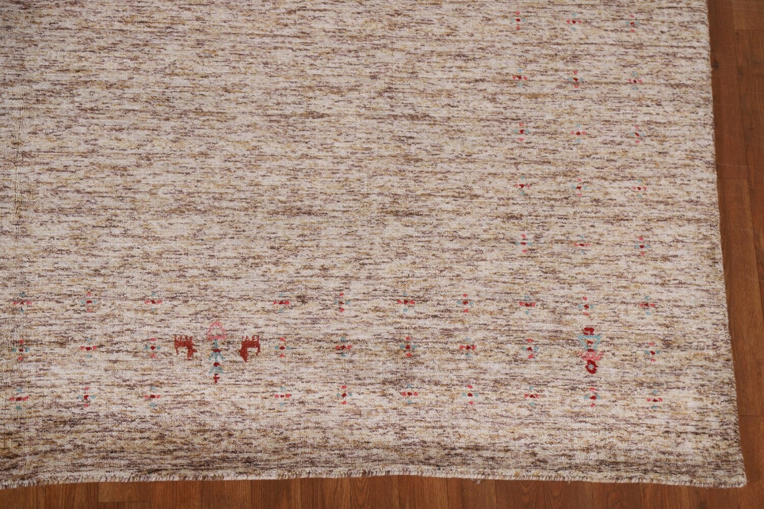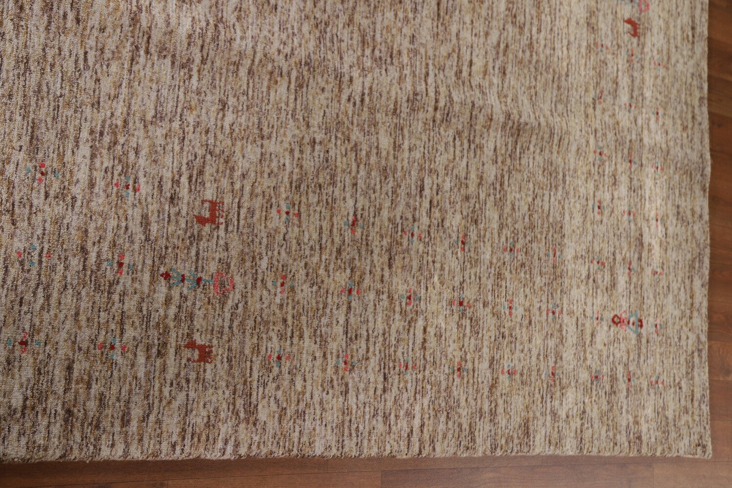 A Beautiful Genuine India Gabbeh rug is Hand Knotted by skillful weavers in India with 100% Wool Material. This rug is in New, First Quality condition. dimensions are 9' 11'' X 8' 2'' in foot and 302 X 249 in centimeter. the primary color is Beige & Ivories.