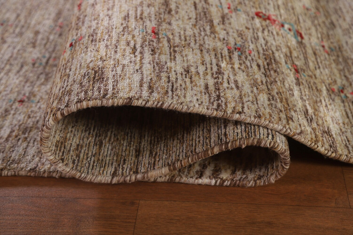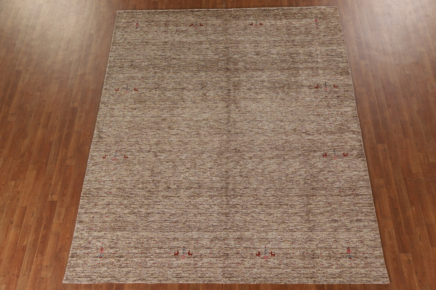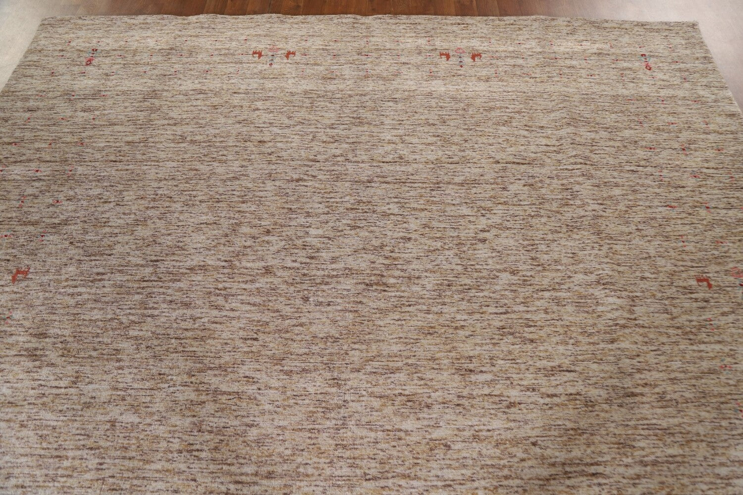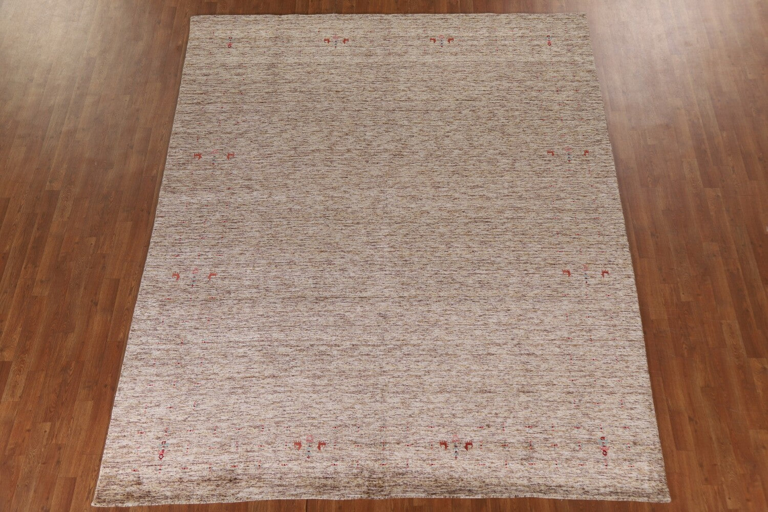 A Beautiful Genuine India Gabbeh rug is Hand Knotted by skillful weavers in India with 100% Wool Material. This rug is in New, First Quality condition. dimensions are 9' 11'' X 8' 2'' in foot and 302 X 249 in centimeter. the primary color is Beige & Ivories.