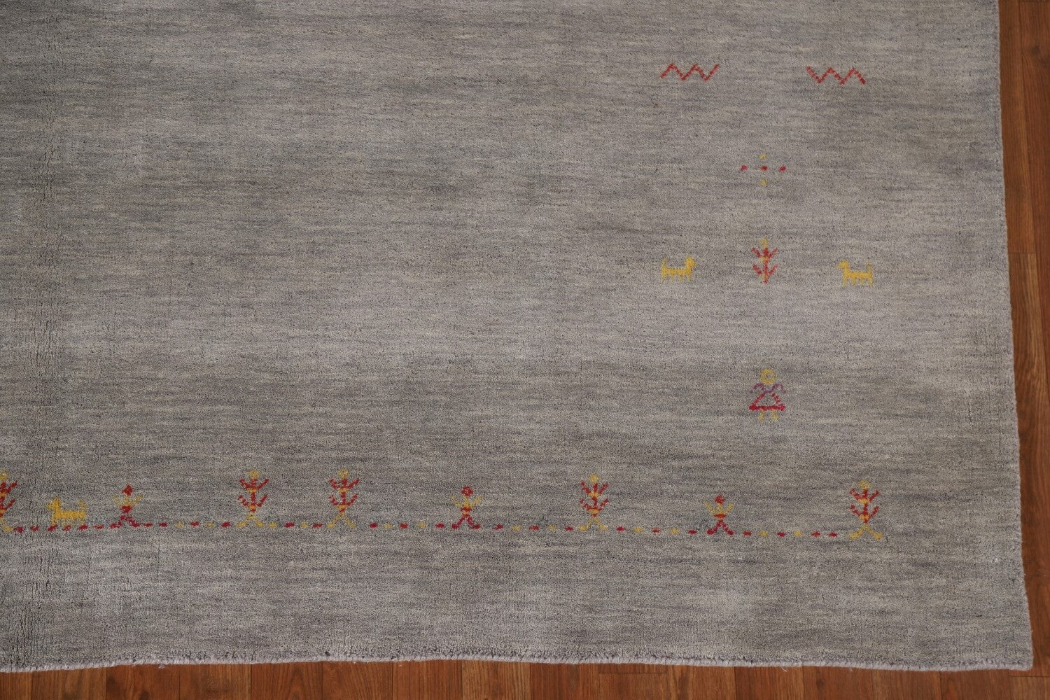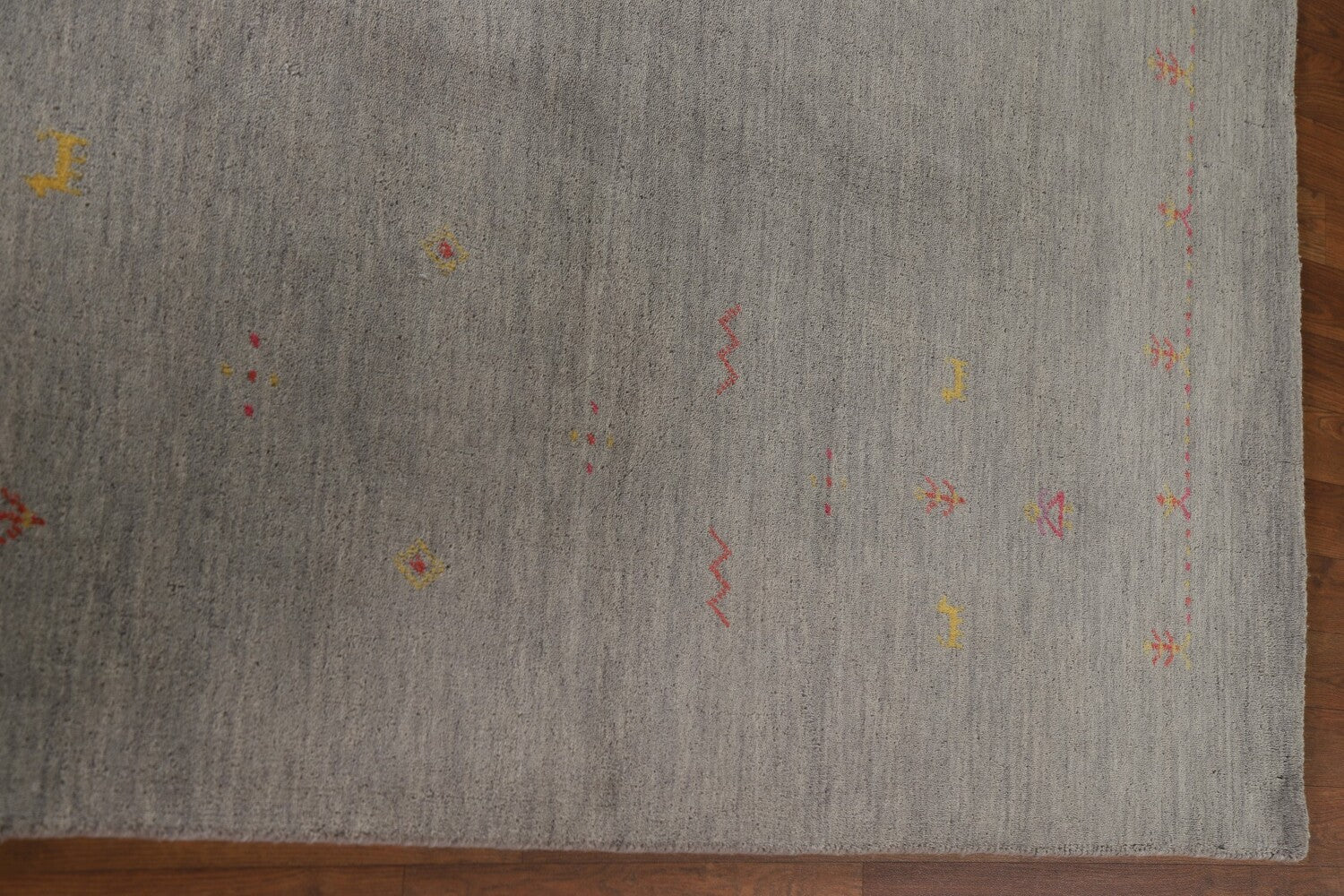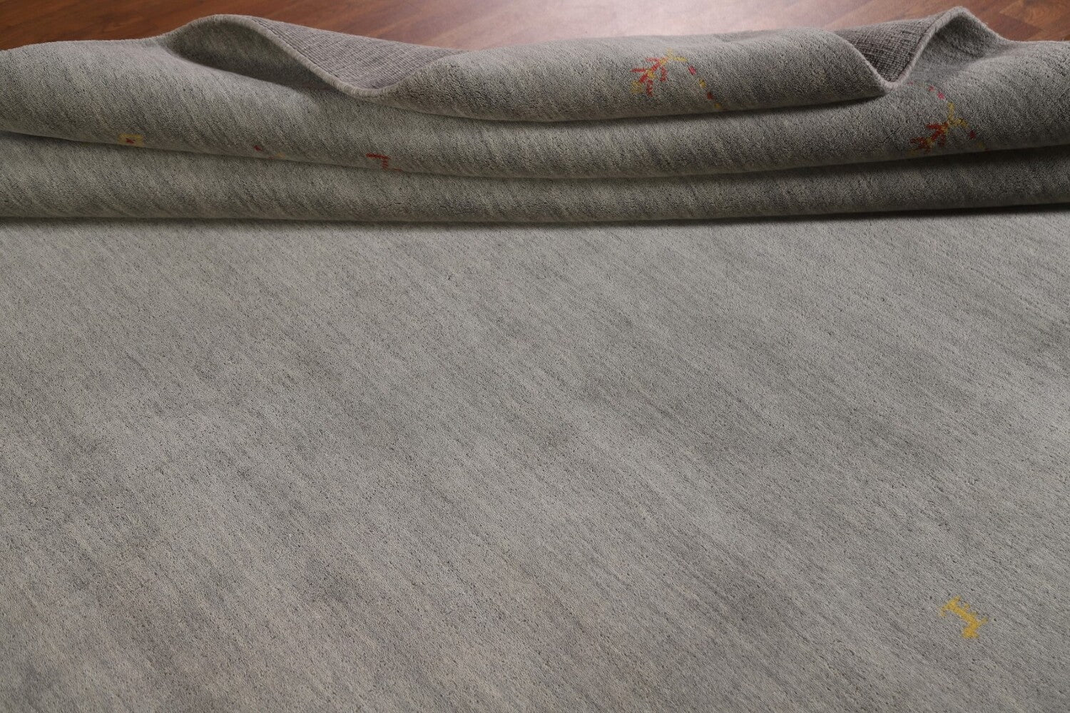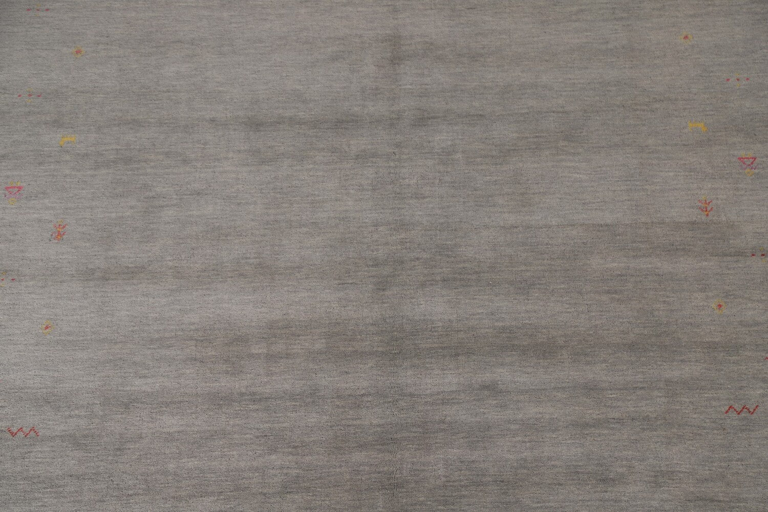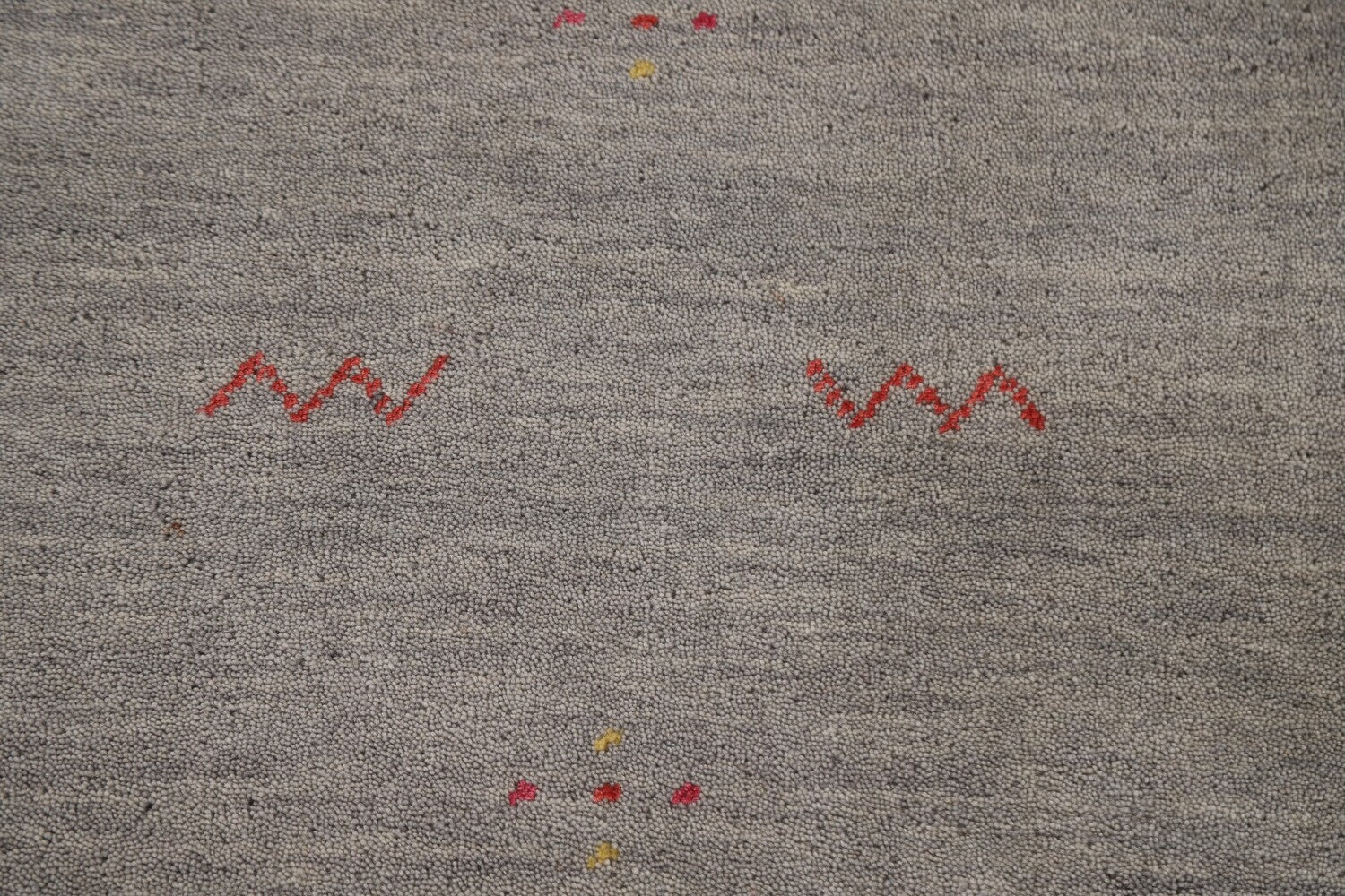 A Beautiful Genuine India Gabbeh rug is Hand Knotted by skillful weavers in India with 100% Wool Material. This rug is in New, First Quality condition. dimensions are 9' 8'' X 8' 1'' in foot and 295 X 246 in centimeter. the primary color is Greys & Charcoal.