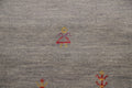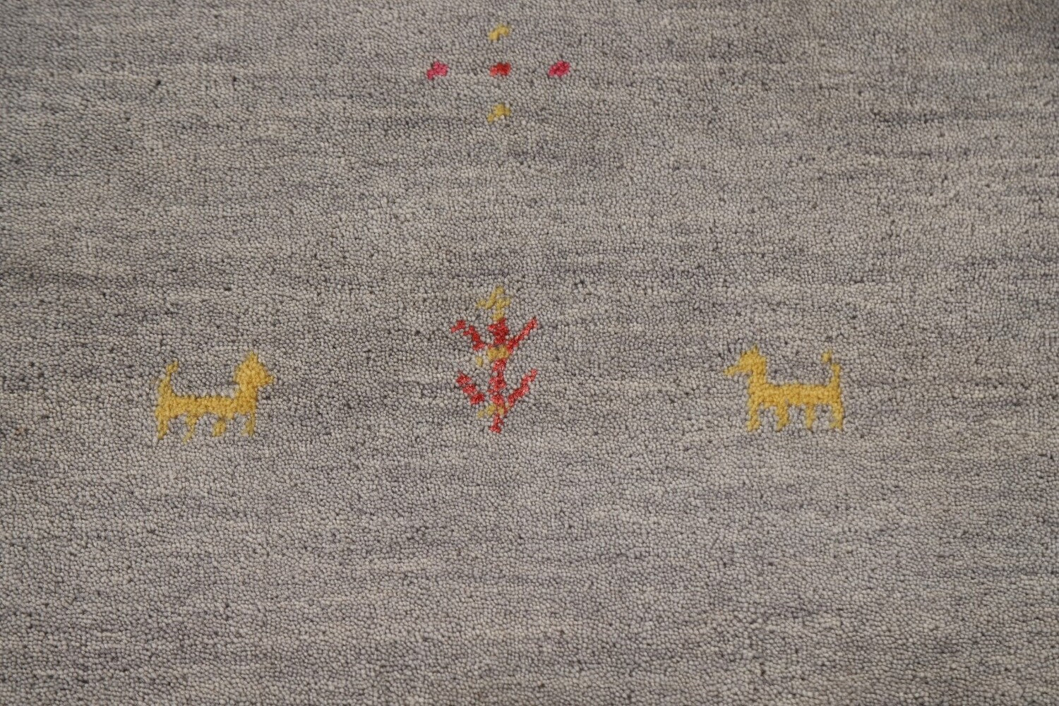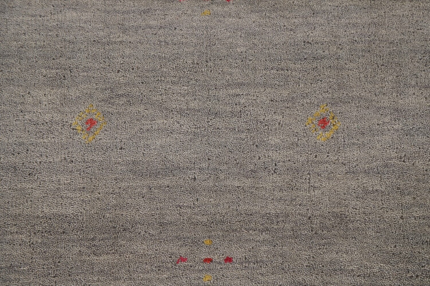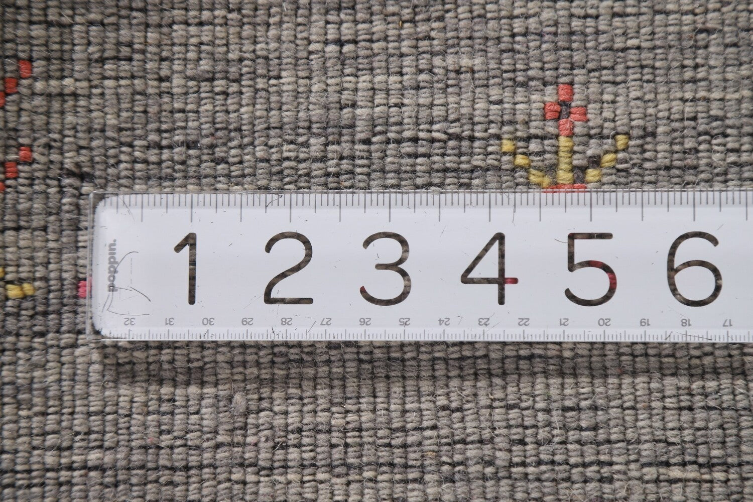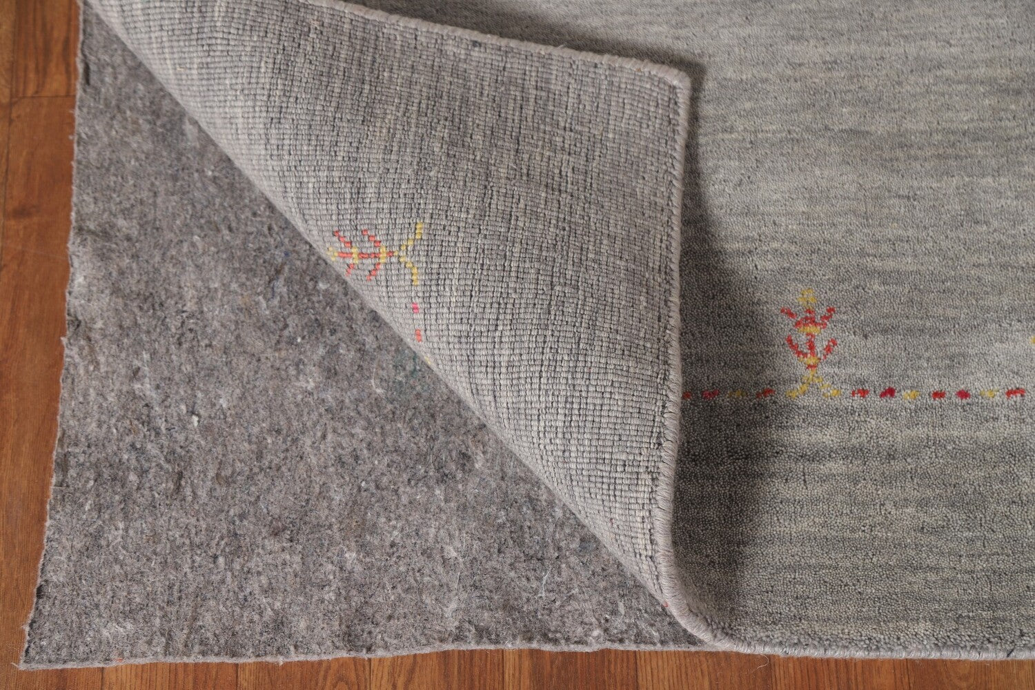 A Beautiful Genuine India Gabbeh rug is Hand Knotted by skillful weavers in India with 100% Wool Material. This rug is in New, First Quality condition. dimensions are 9' 8'' X 8' 1'' in foot and 295 X 246 in centimeter. the primary color is Greys & Charcoal.