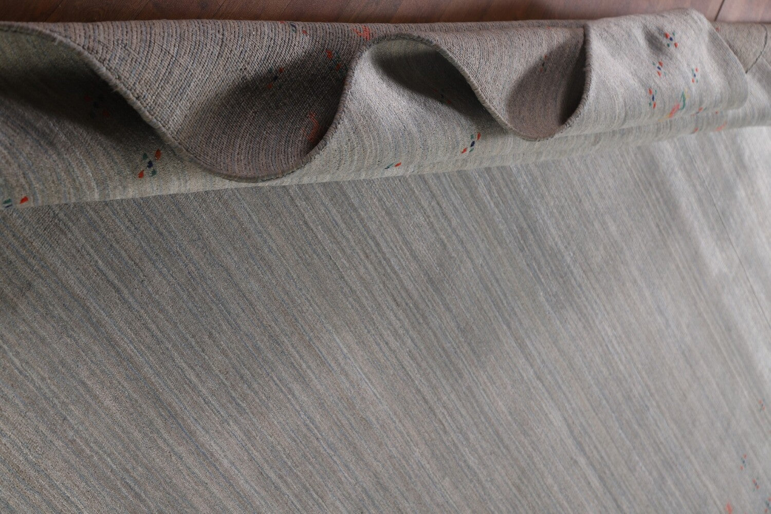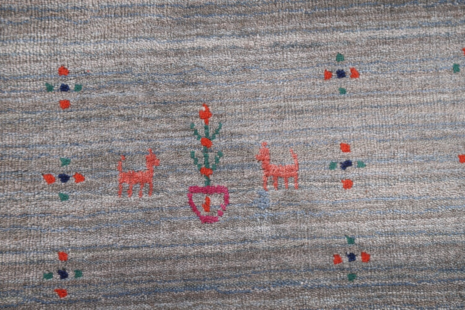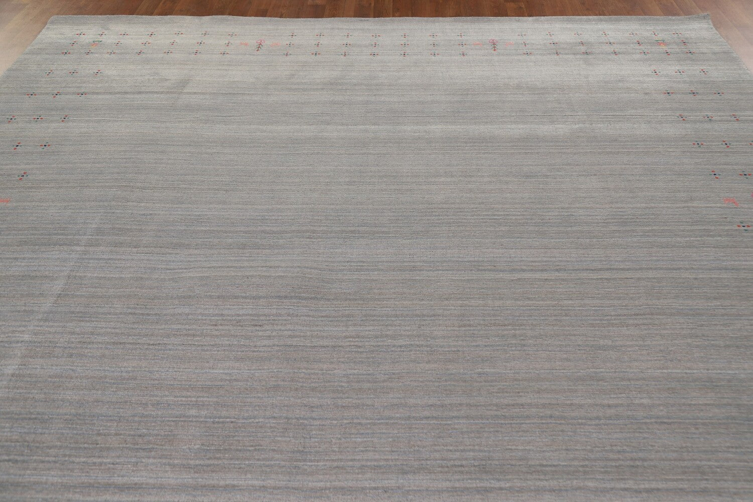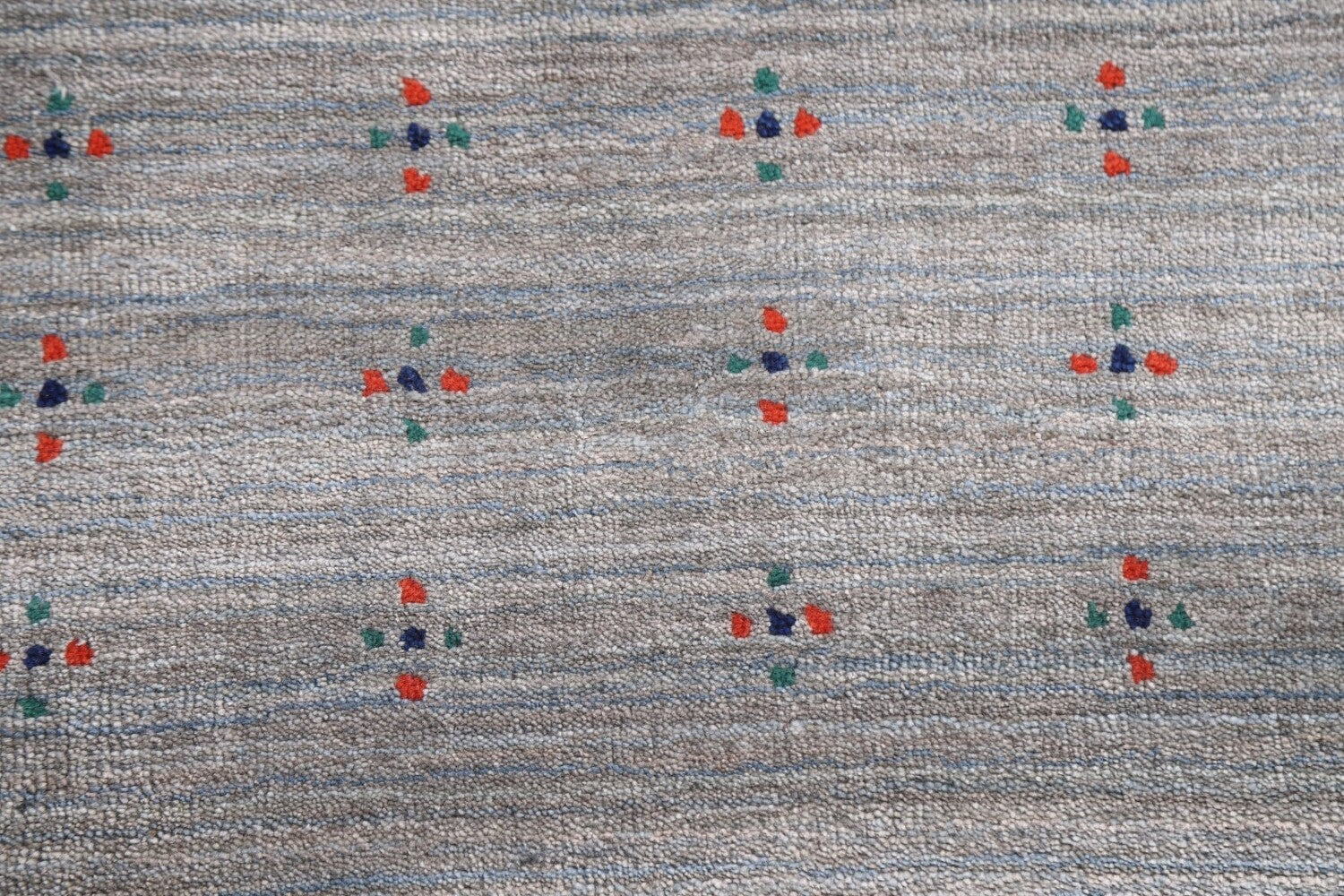 A Beautiful Genuine India Gabbeh rug is Hand Knotted by skillful weavers in India with 100% Wool Material. This rug is in New, First Quality condition. dimensions are 11' 11'' X 9' 1'' in foot and 363 X 277 in centimeter. the primary color is Greys & Charcoal.