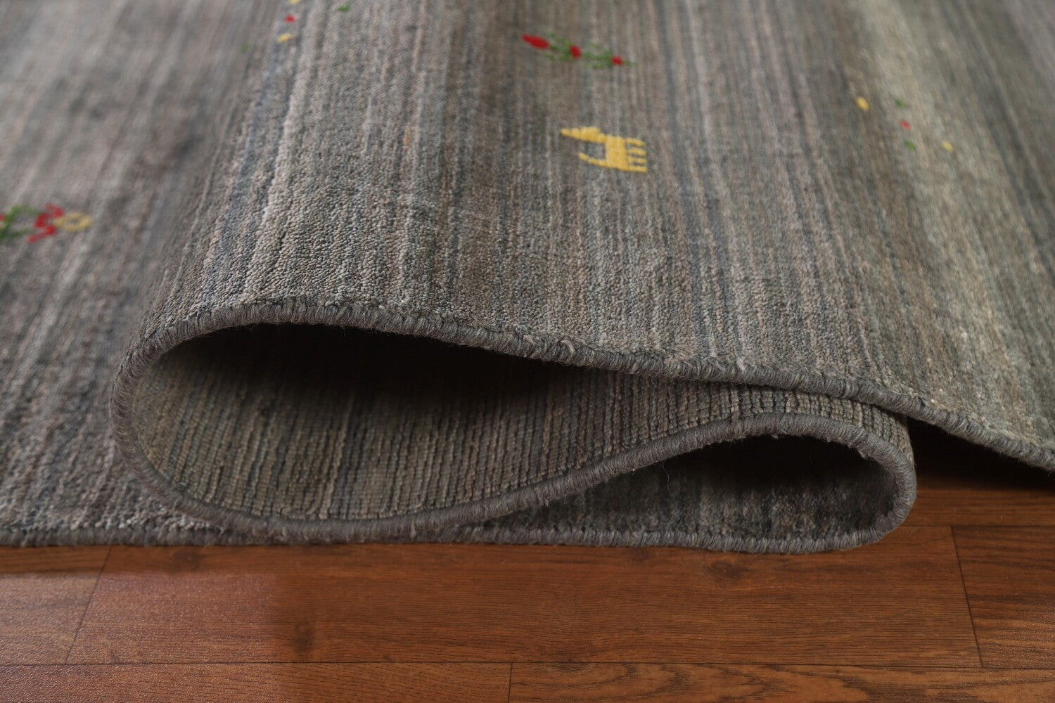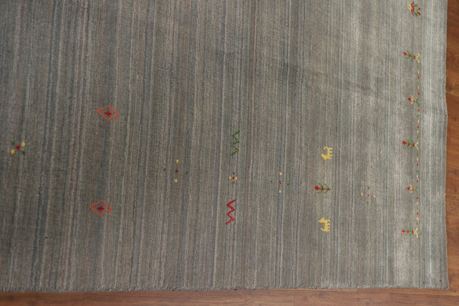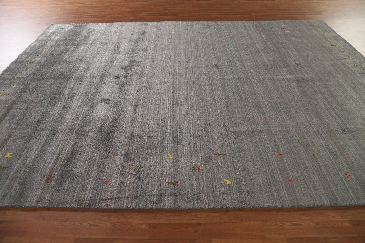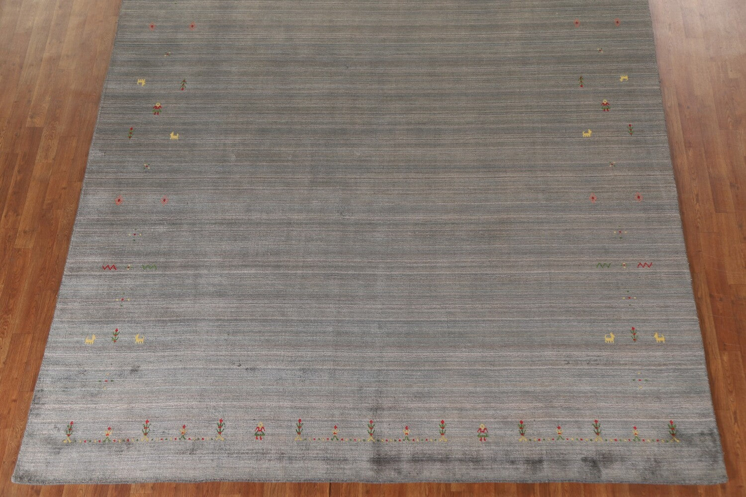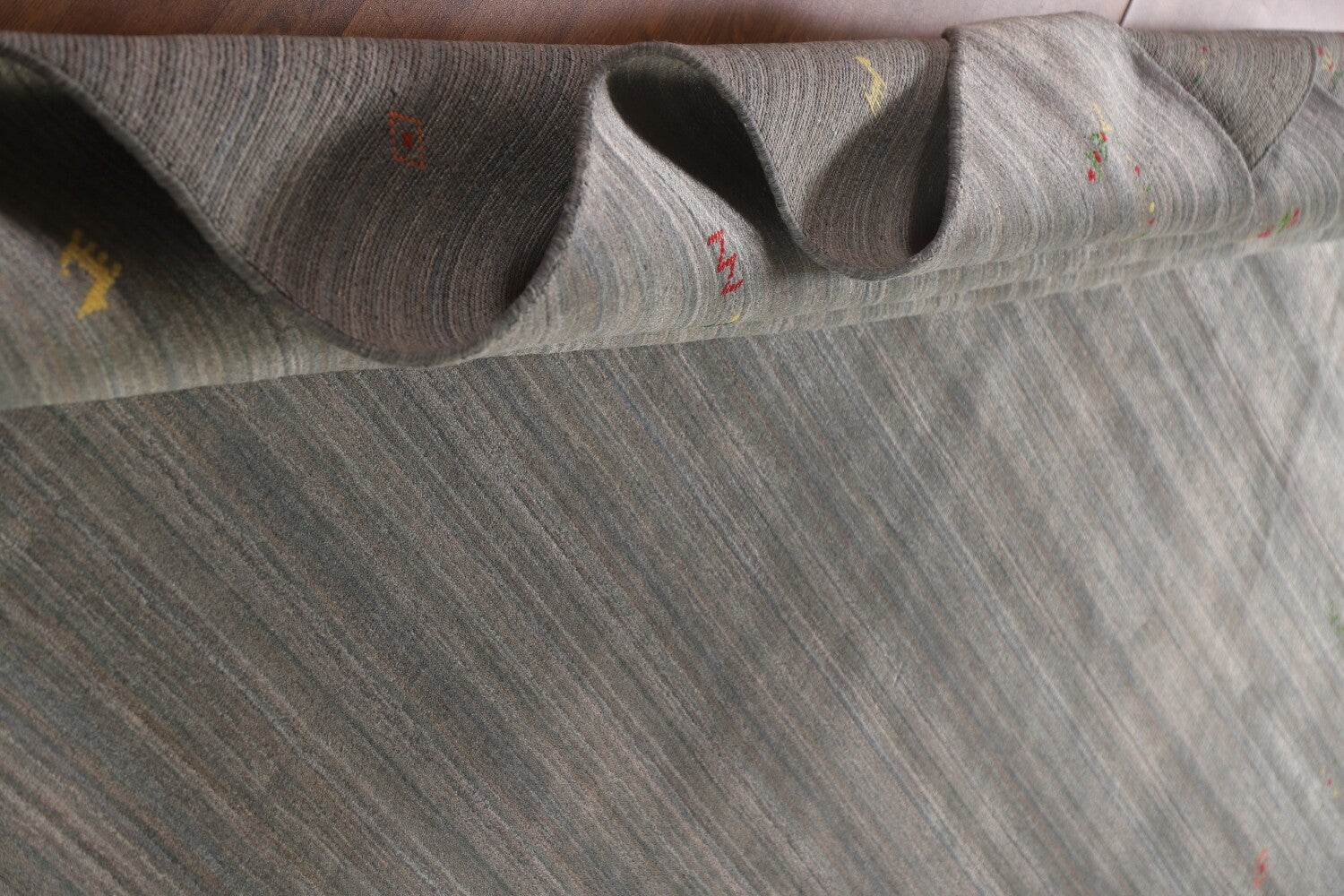 A Beautiful Genuine India Gabbeh rug is Hand Knotted by skillful weavers in India with 100% Wool Material. This rug is in New, First Quality condition. dimensions are 11' 8'' X 8' 9'' in foot and 356 X 267 in centimeter. the primary color is Greys & Charcoal.