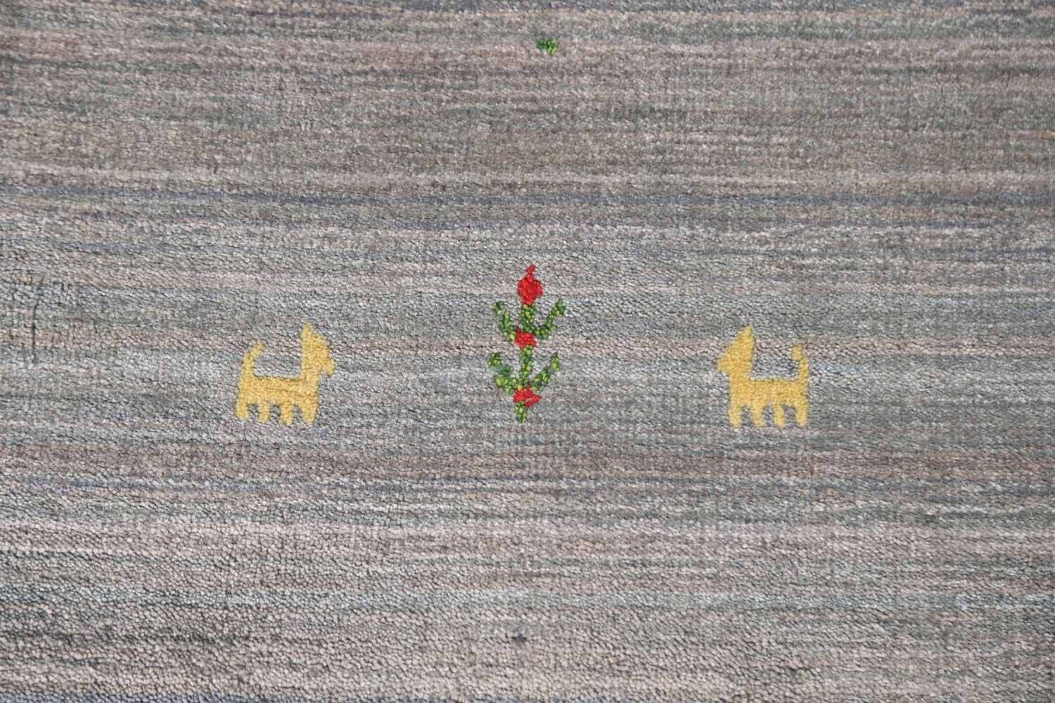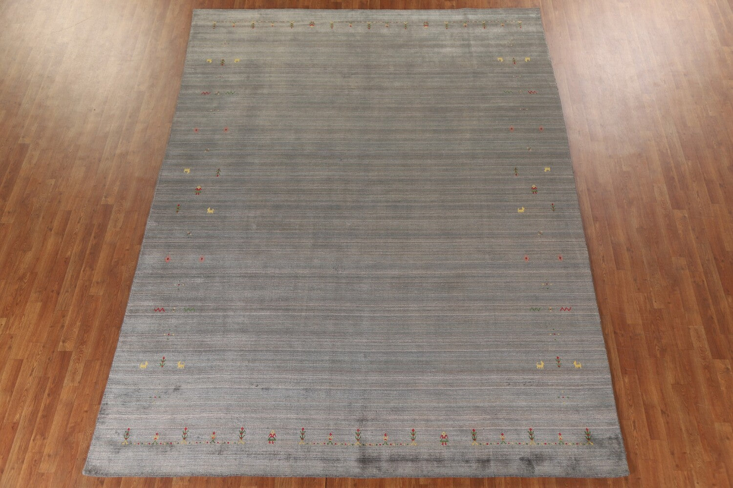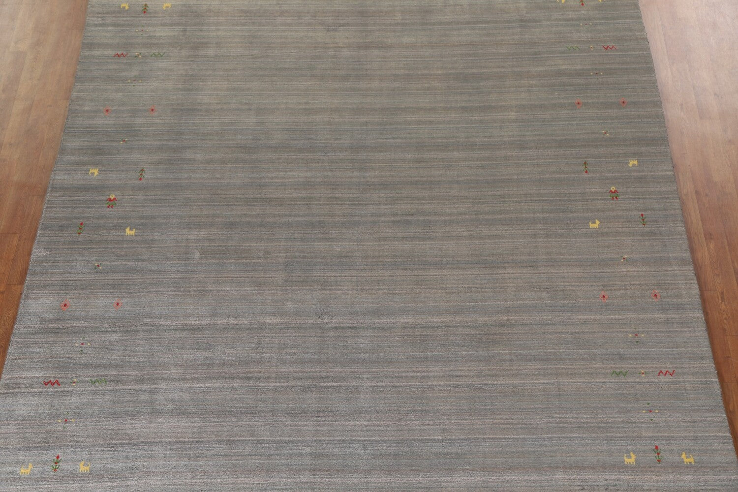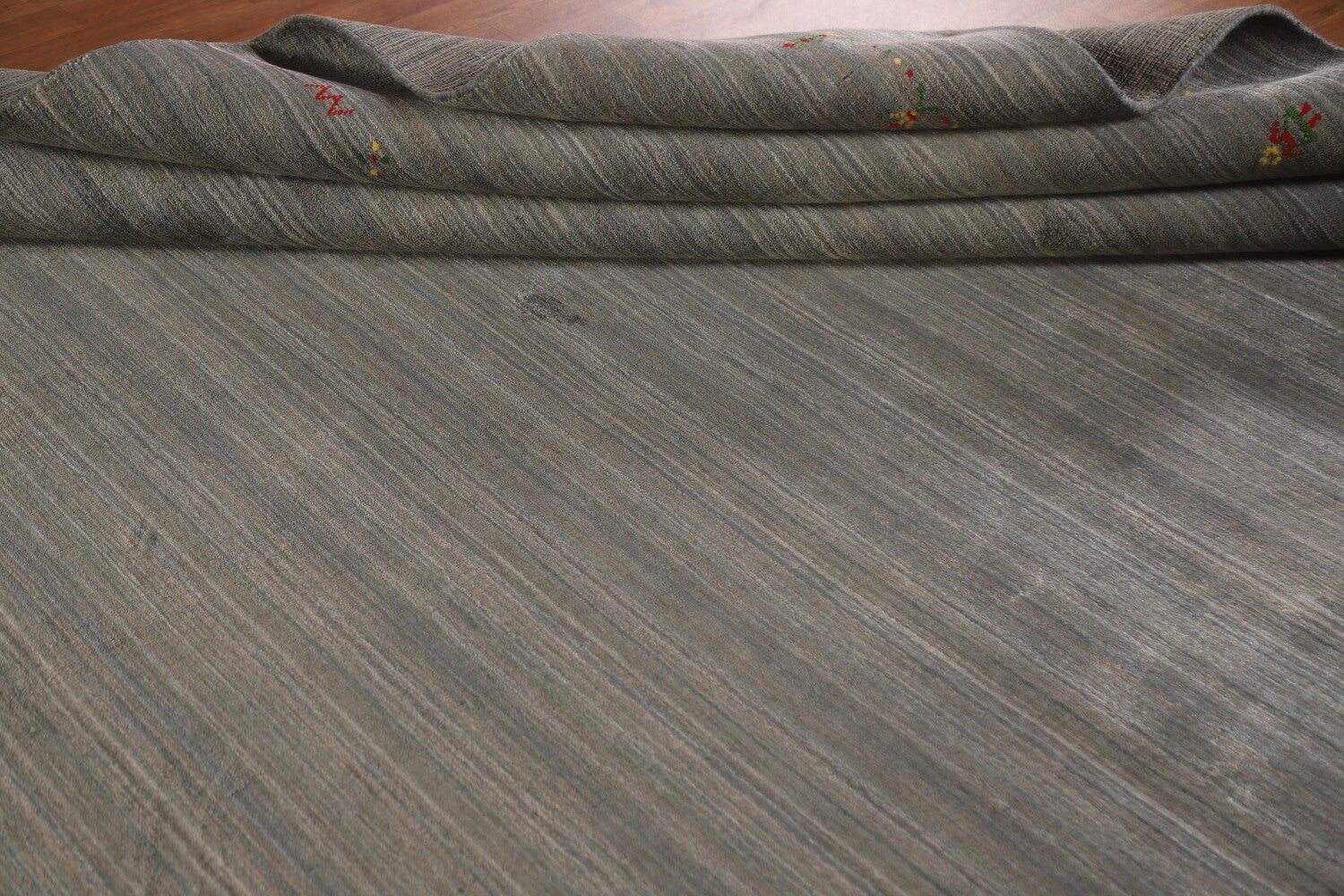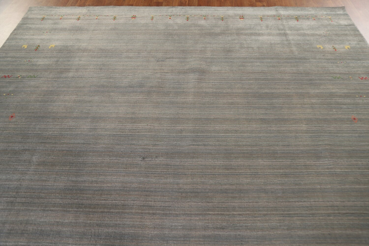 A Beautiful Genuine India Gabbeh rug is Hand Knotted by skillful weavers in India with 100% Wool Material. This rug is in New, First Quality condition. dimensions are 11' 8'' X 8' 9'' in foot and 356 X 267 in centimeter. the primary color is Greys & Charcoal.