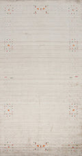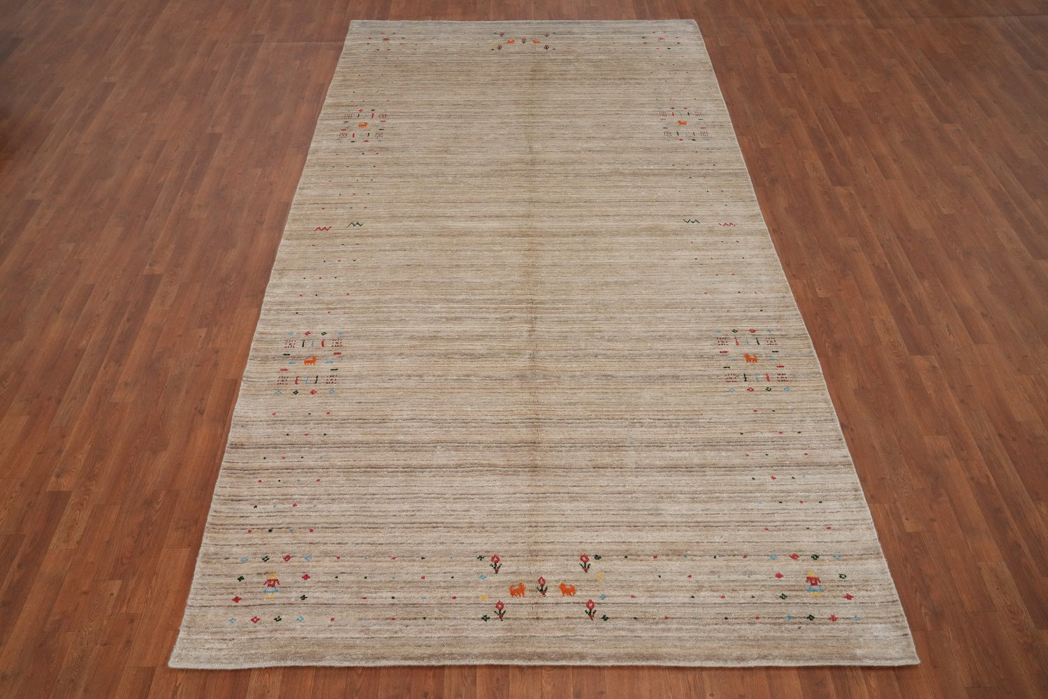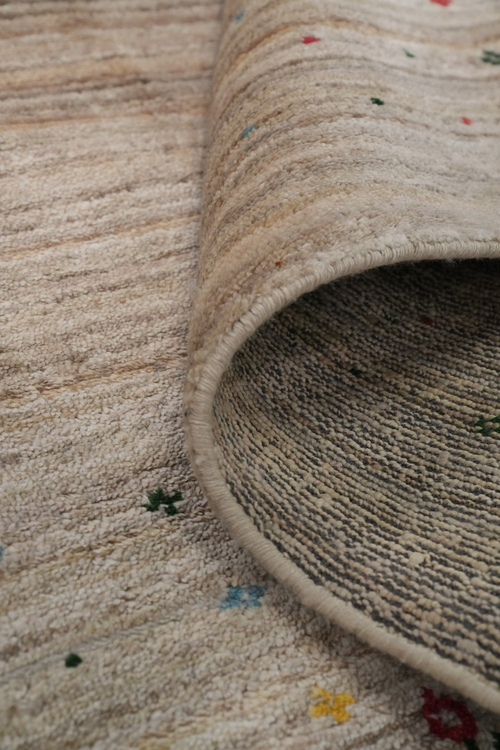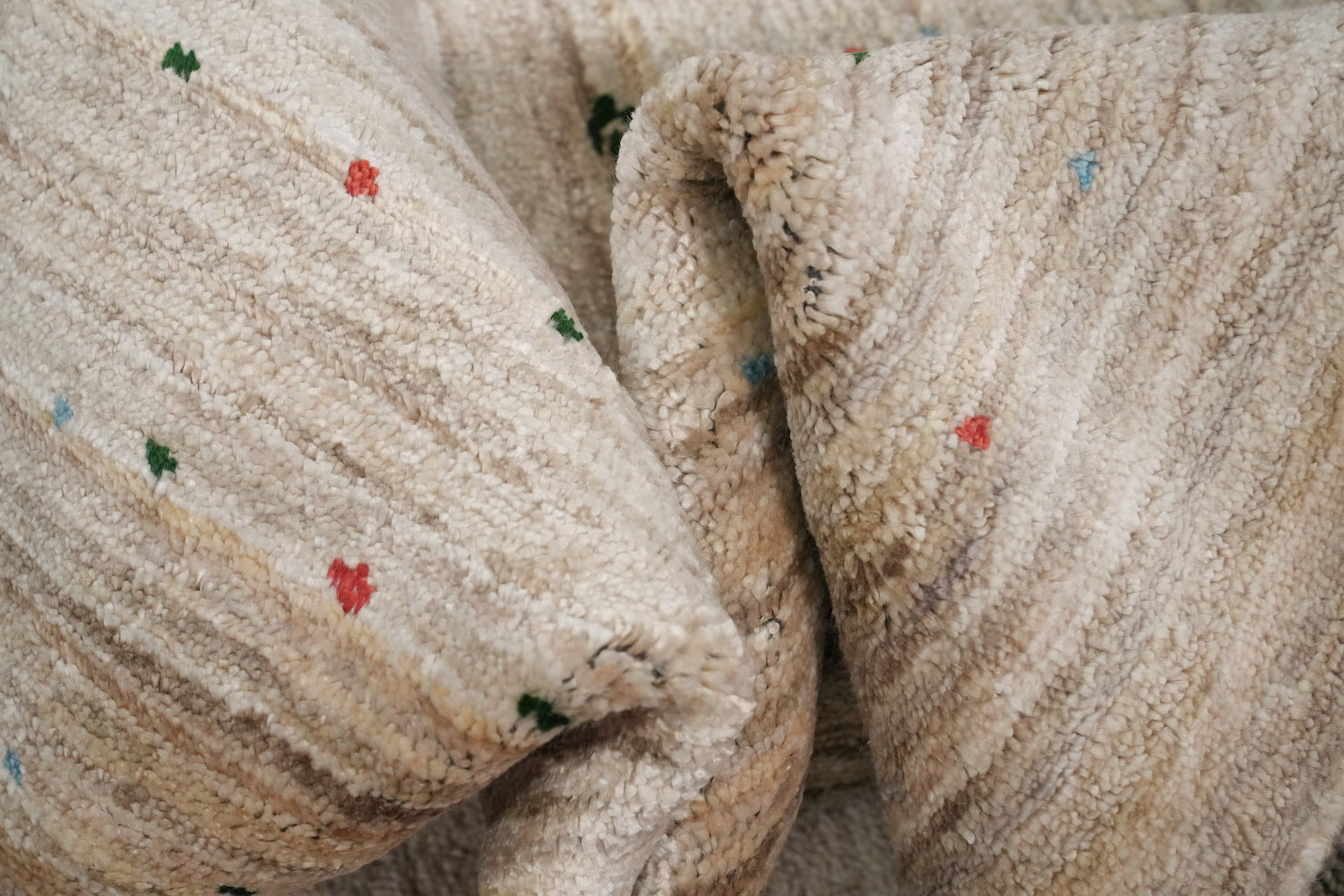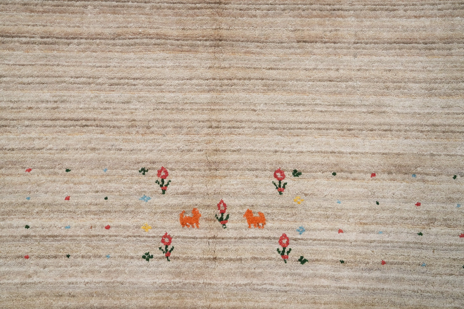 A Beautiful Genuine India Gabbeh rug is Hand Knotted by skillful weavers in India with Viscose Silk Material. This rug is in New, First Quality condition. dimensions are 12' 0'' X 6' 6'' in foot and 366 X 198 in centimeter. the primary color is Beige & Ivories.