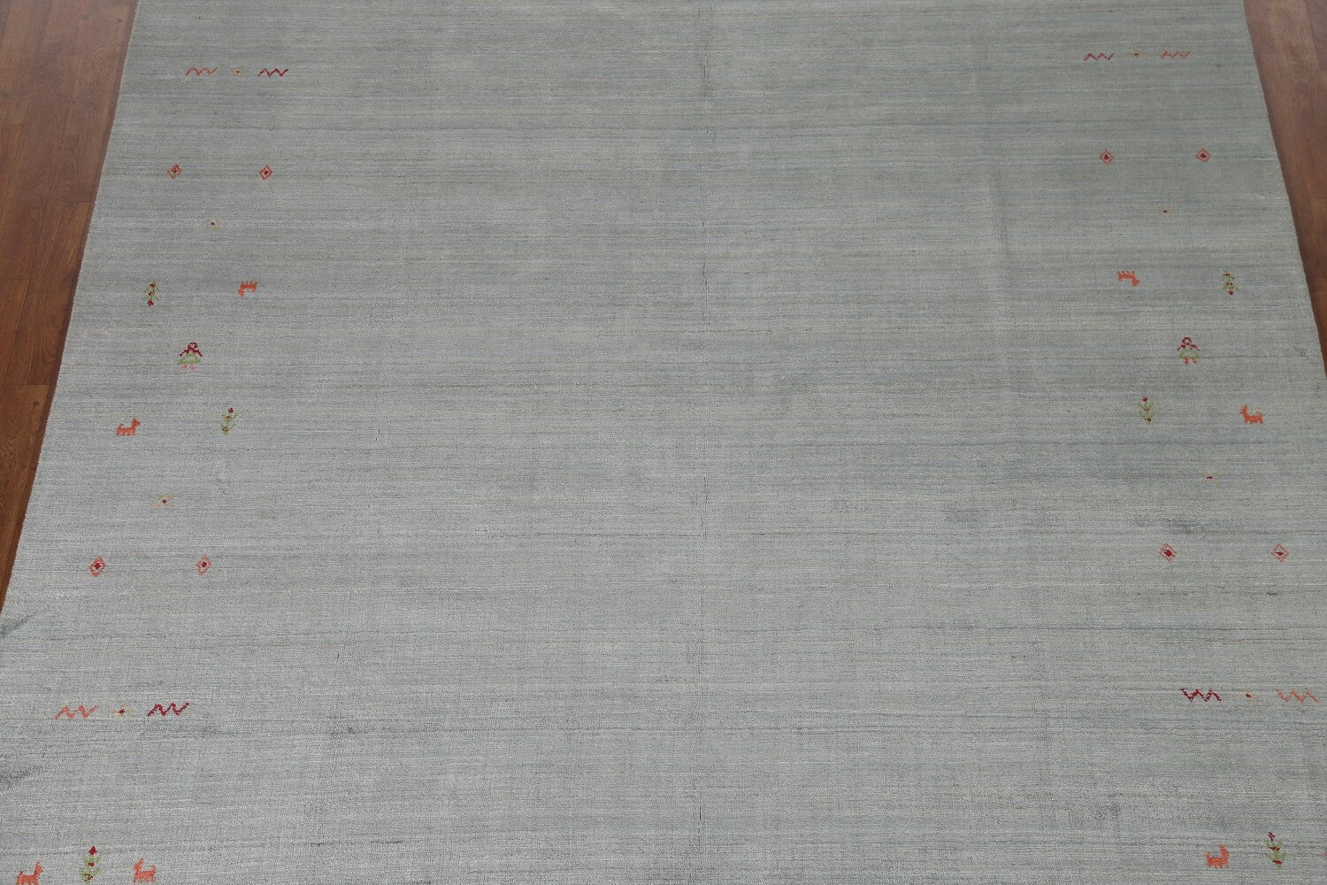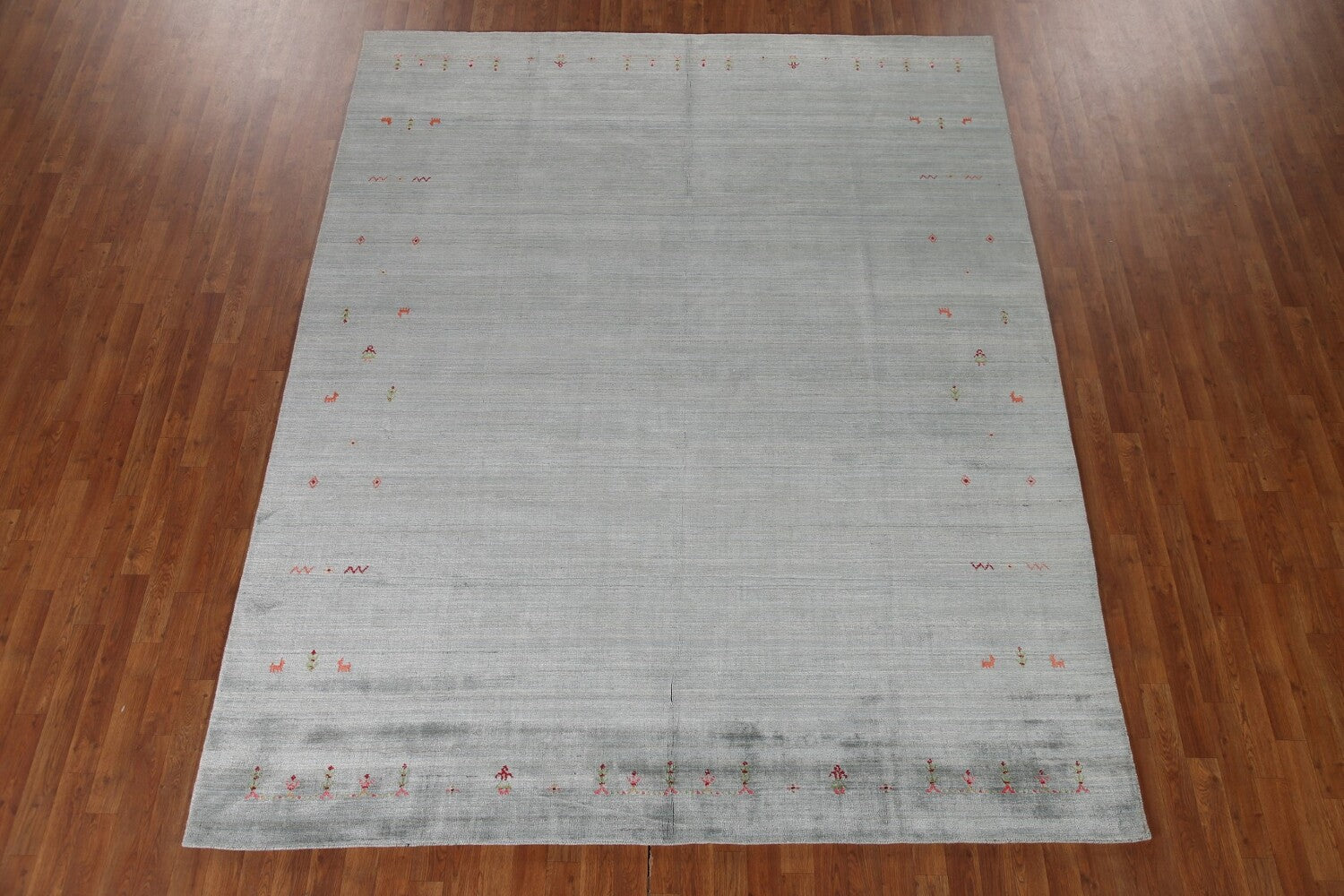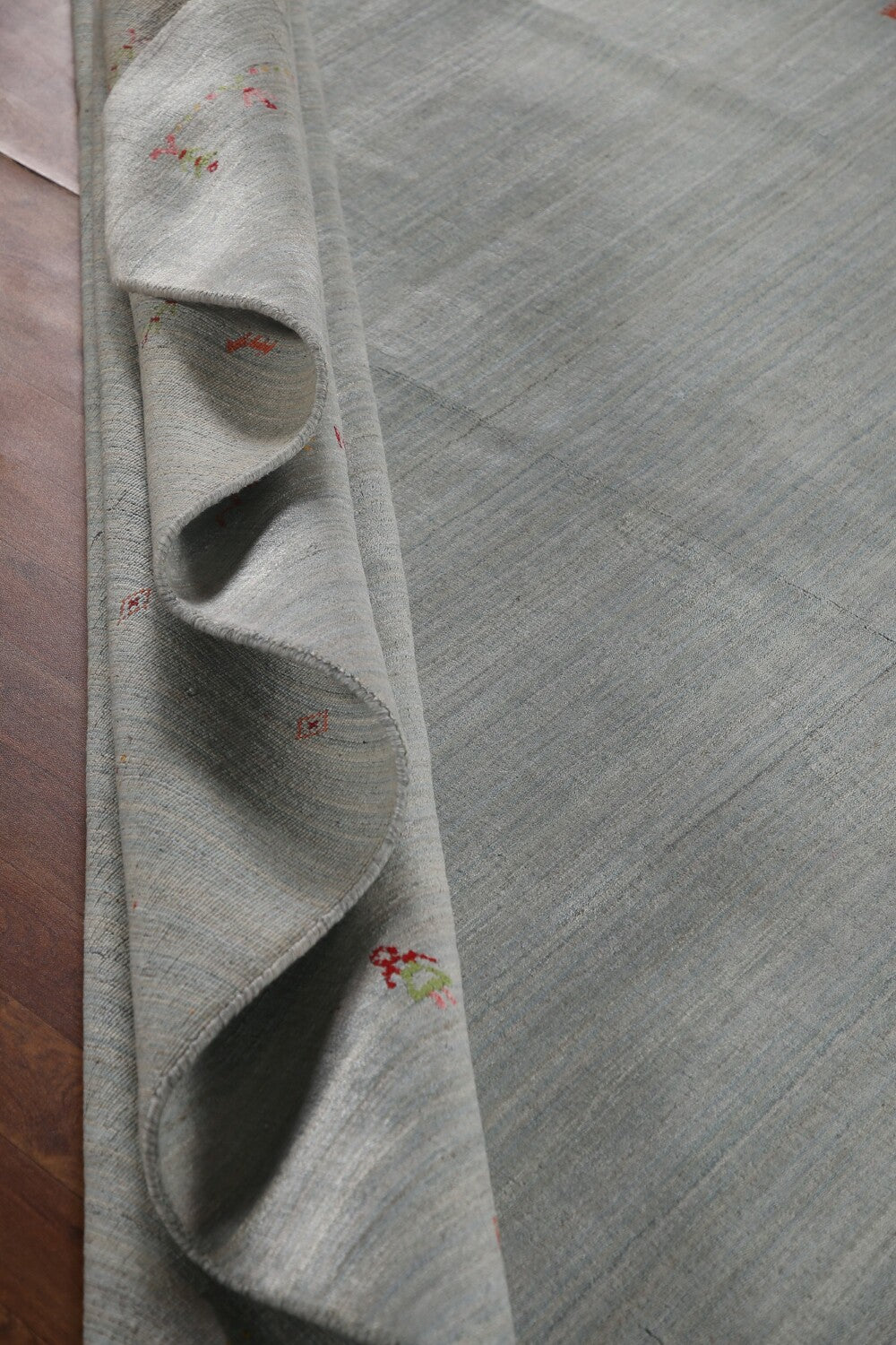A Beautiful Genuine India Gabbeh rug is Hand Knotted by skillful weavers in India with 100% Wool Material. This rug is in New, First Quality condition. dimensions are 9' 10'' X 8' 0'' in foot and 300 X 244 in centimeter. the primary color is Greys & Charcoal.