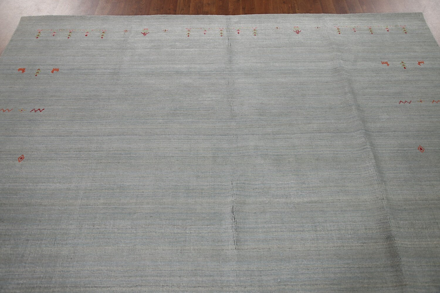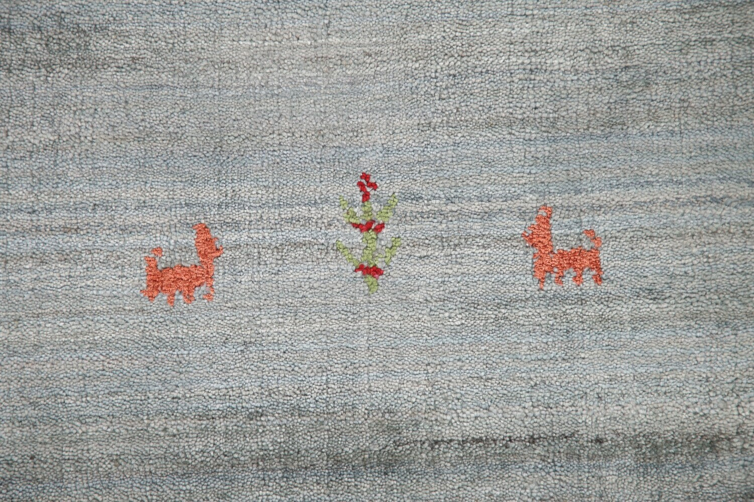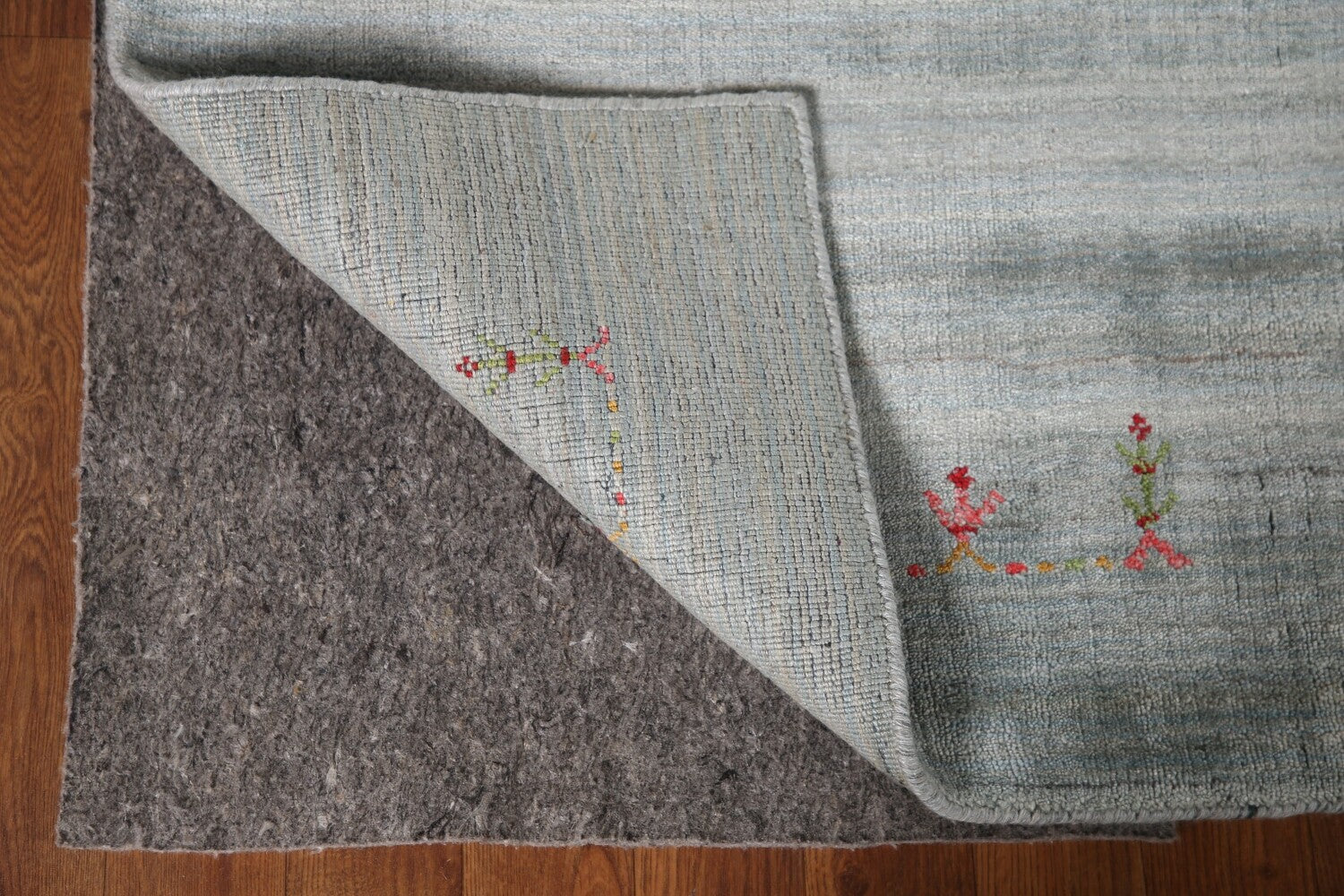 A Beautiful Genuine India Gabbeh rug is Hand Knotted by skillful weavers in India with 100% Wool Material. This rug is in New, First Quality condition. dimensions are 9' 10'' X 8' 0'' in foot and 300 X 244 in centimeter. the primary color is Greys & Charcoal.