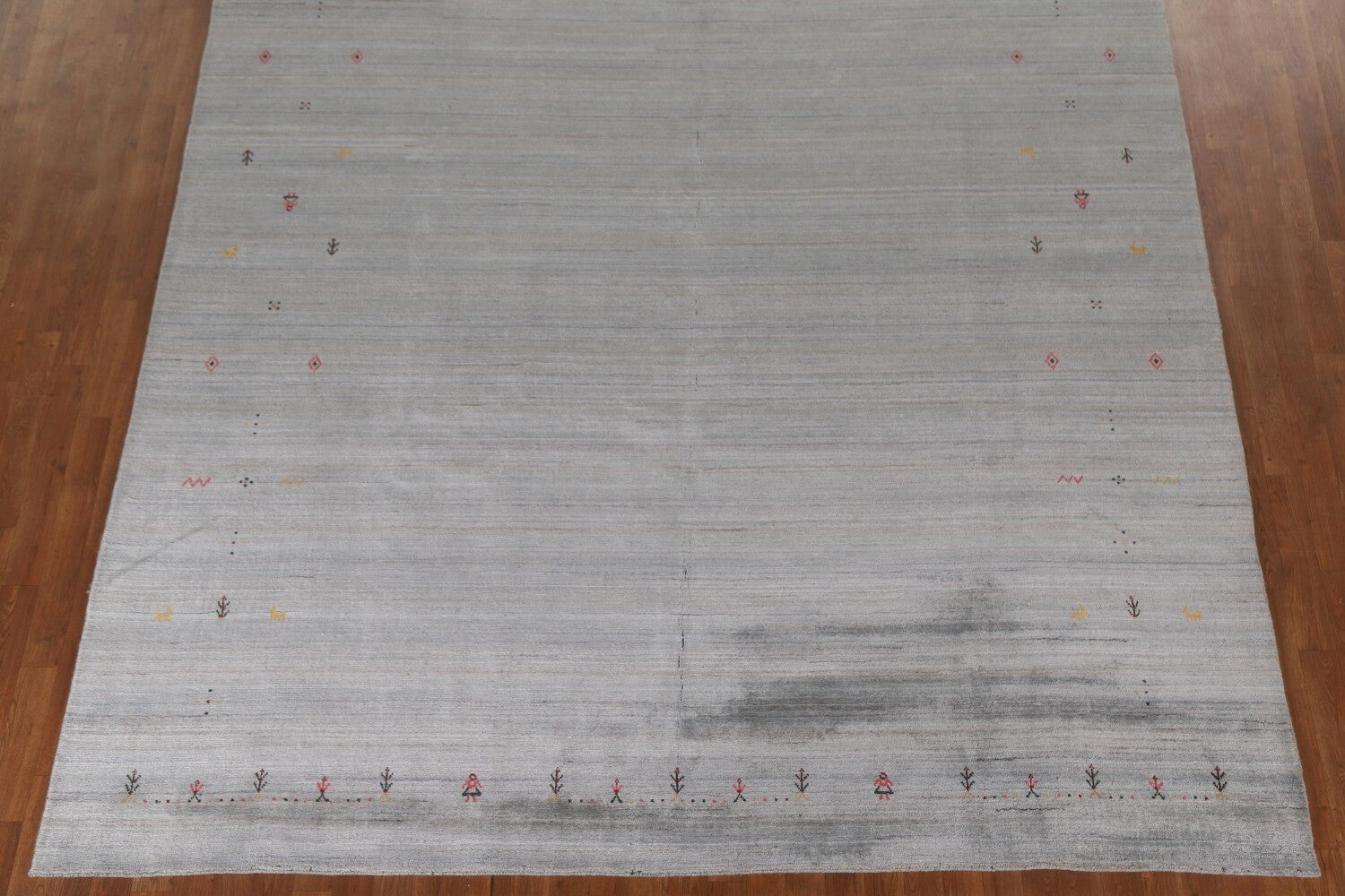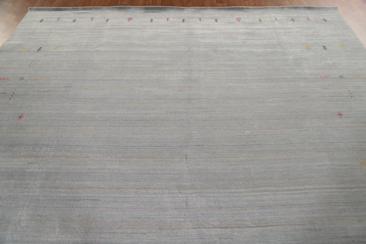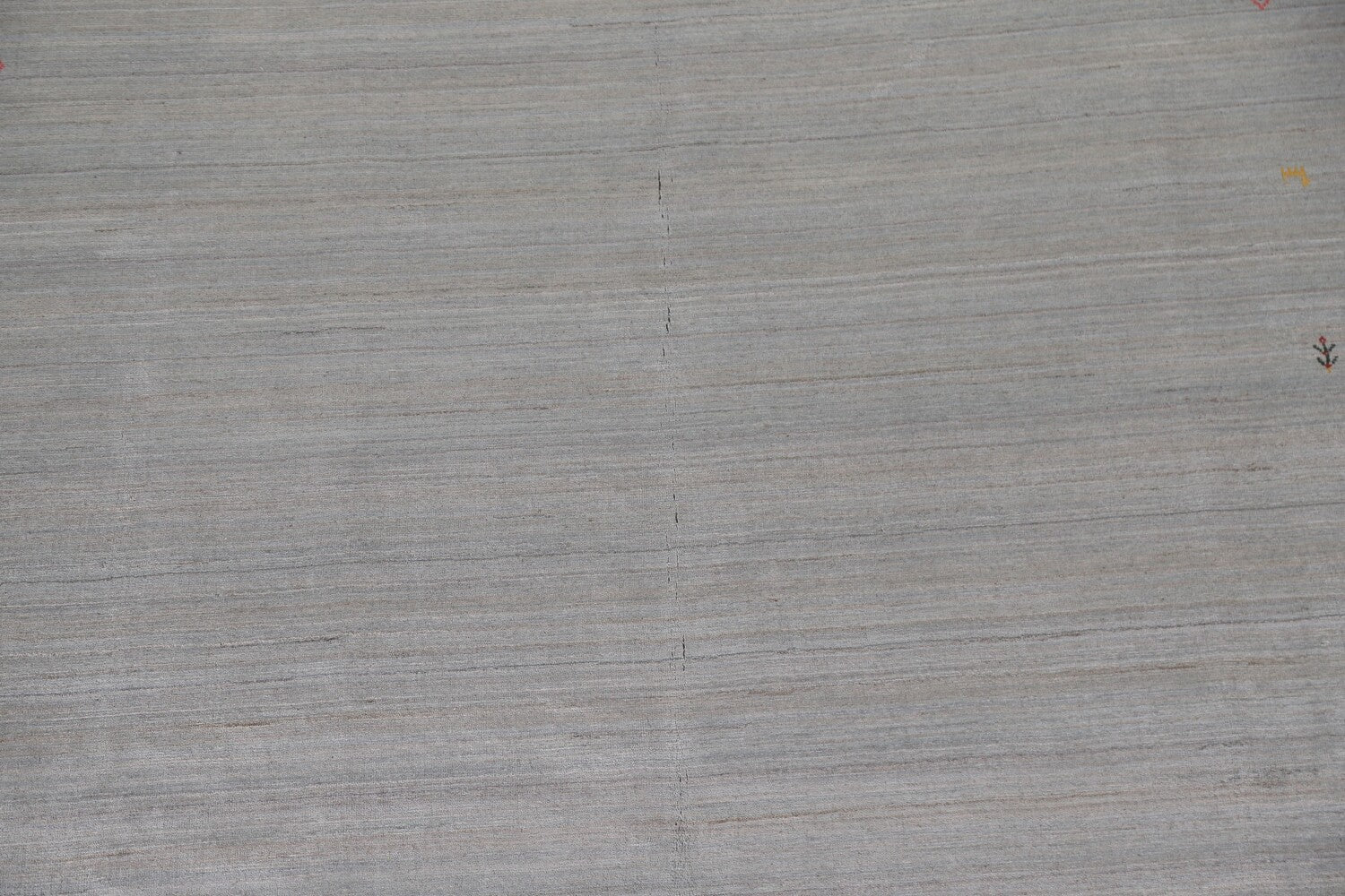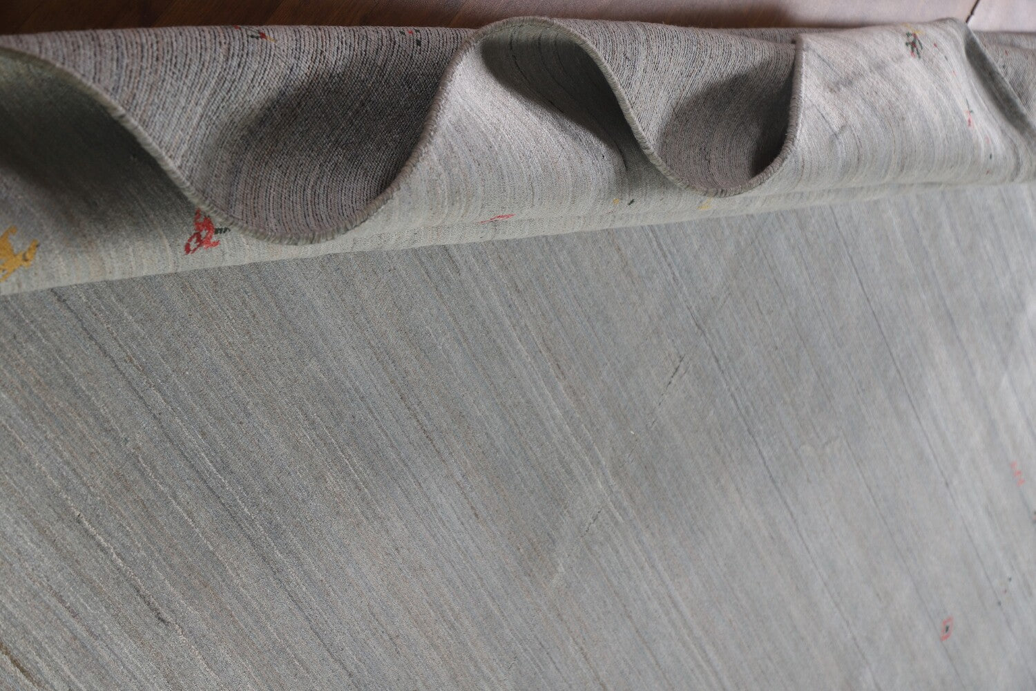 A Beautiful Genuine India Gabbeh rug is Hand Knotted by skillful weavers in India with 100% Wool Material. This rug is in New, First Quality condition. dimensions are 11' 8'' X 8' 10'' in foot and 356 X 269 in centimeter. the primary color is Greys & Charcoal.