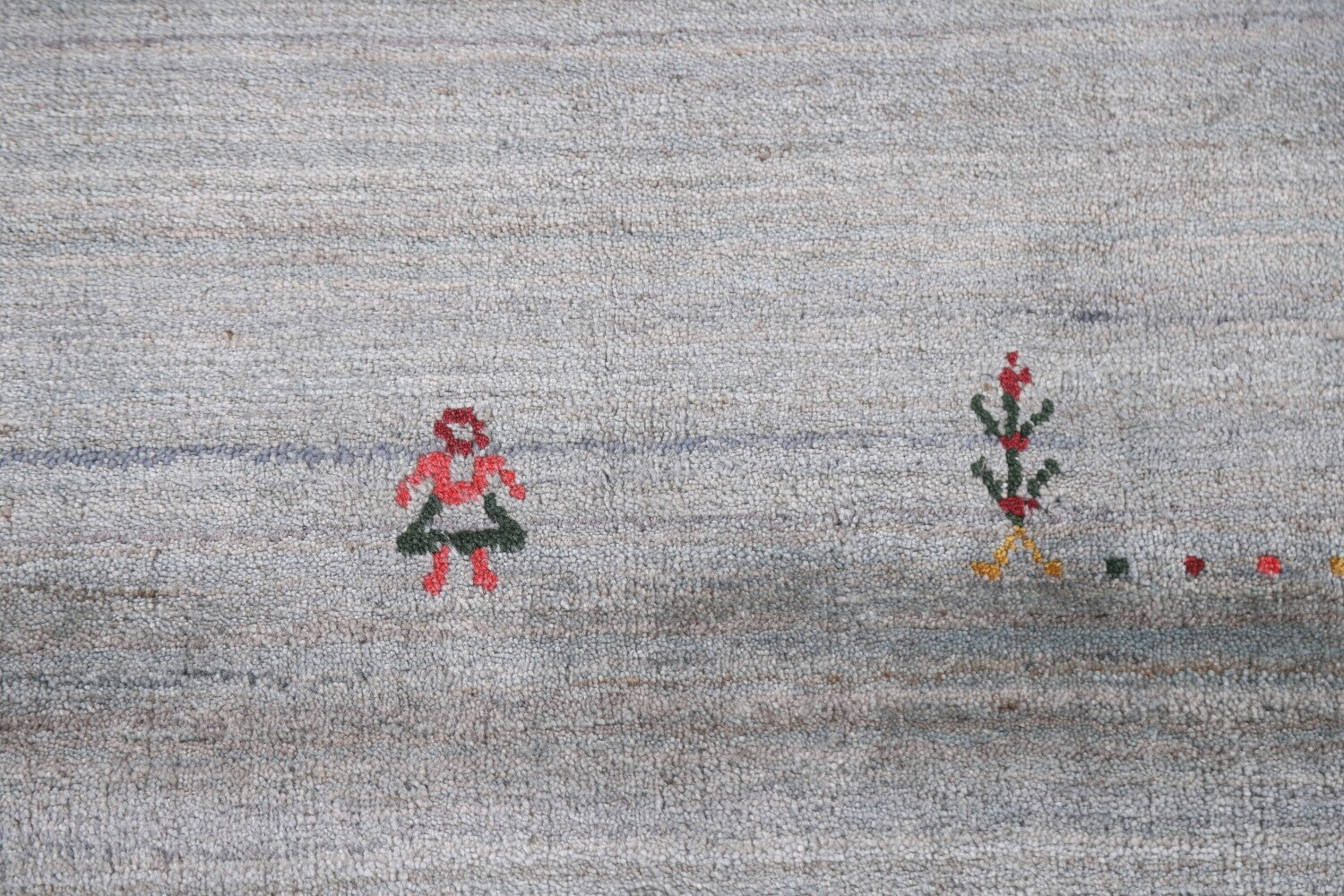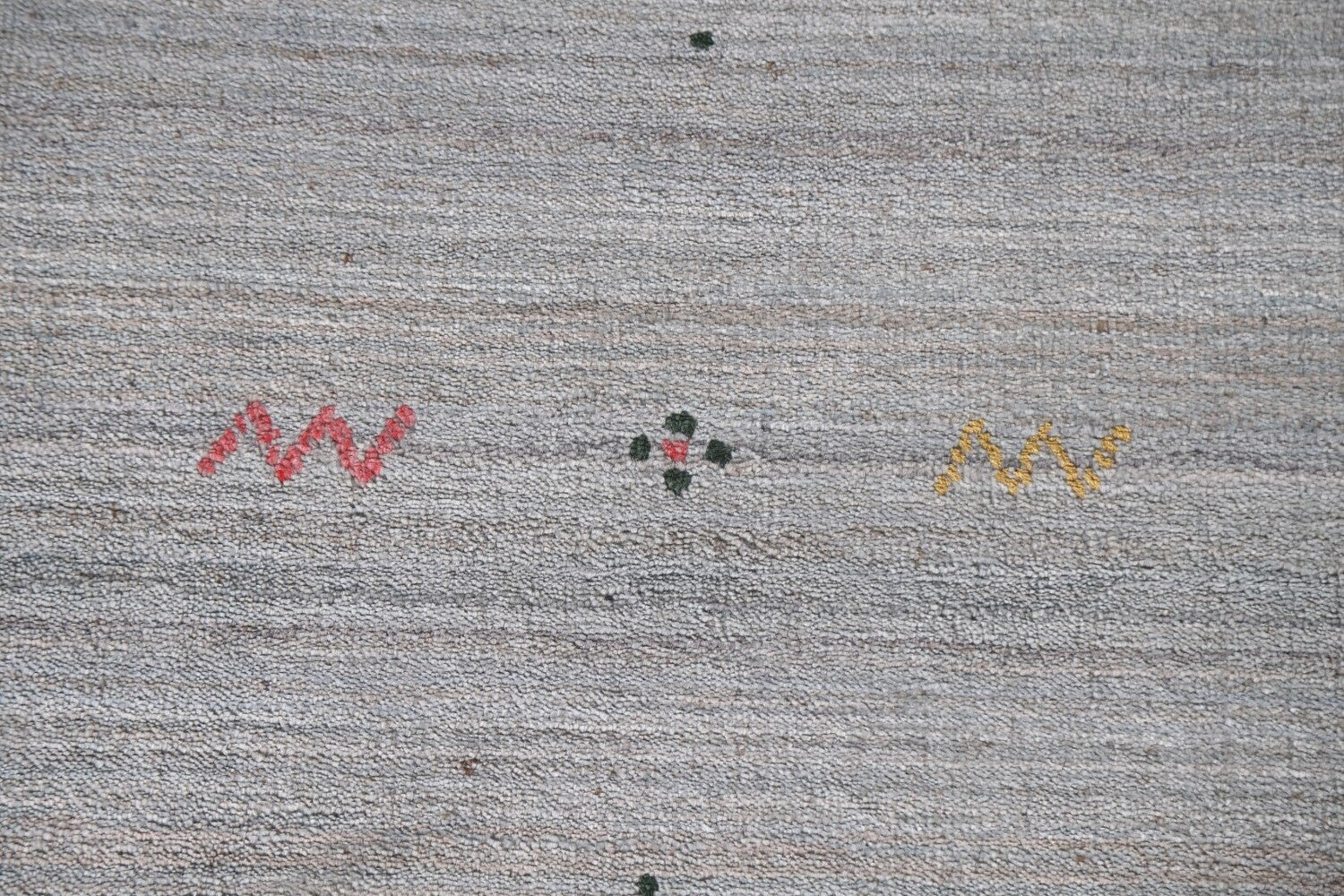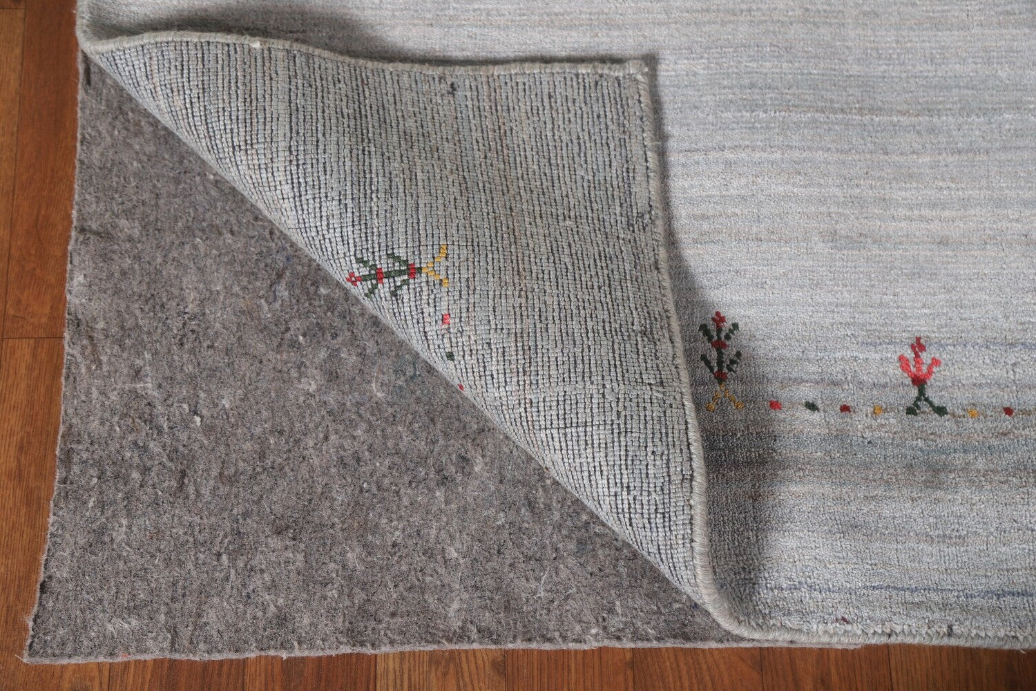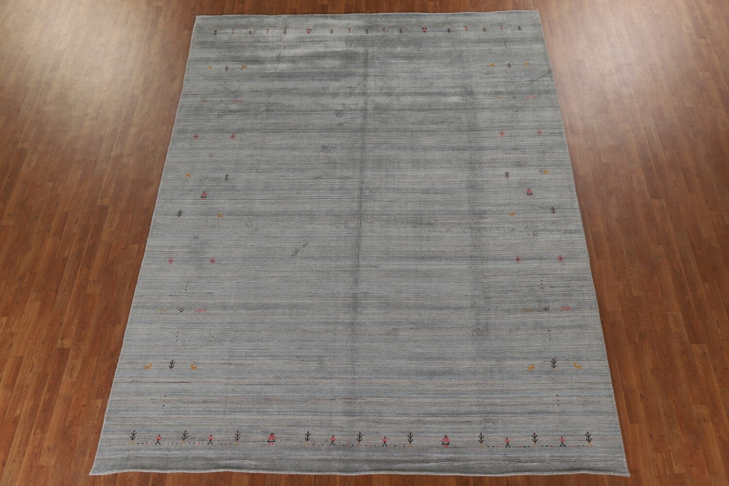 A Beautiful Genuine India Gabbeh rug is Hand Knotted by skillful weavers in India with 100% Wool Material. This rug is in New, First Quality condition. dimensions are 11' 8'' X 8' 10'' in foot and 356 X 269 in centimeter. the primary color is Greys & Charcoal.