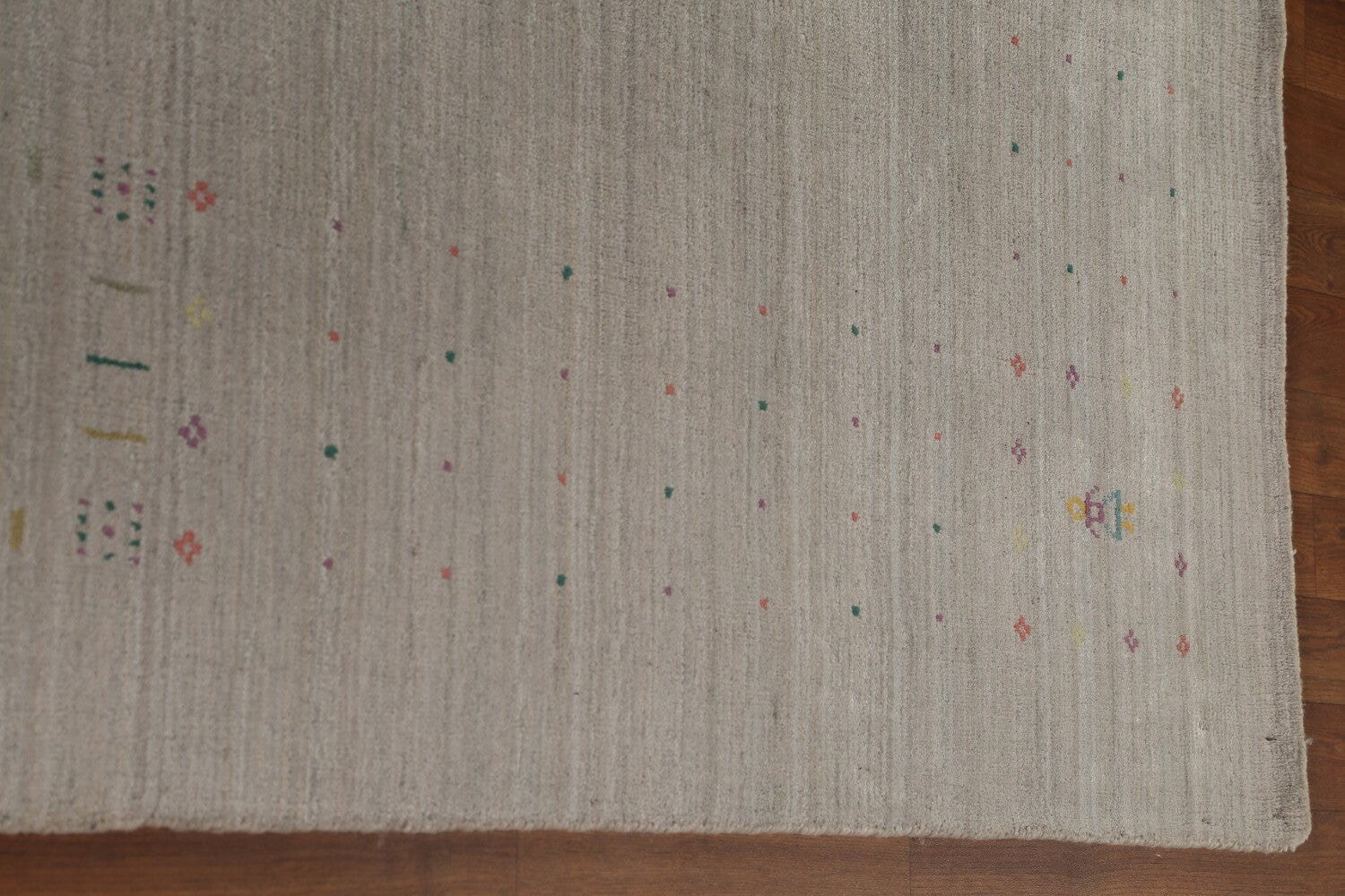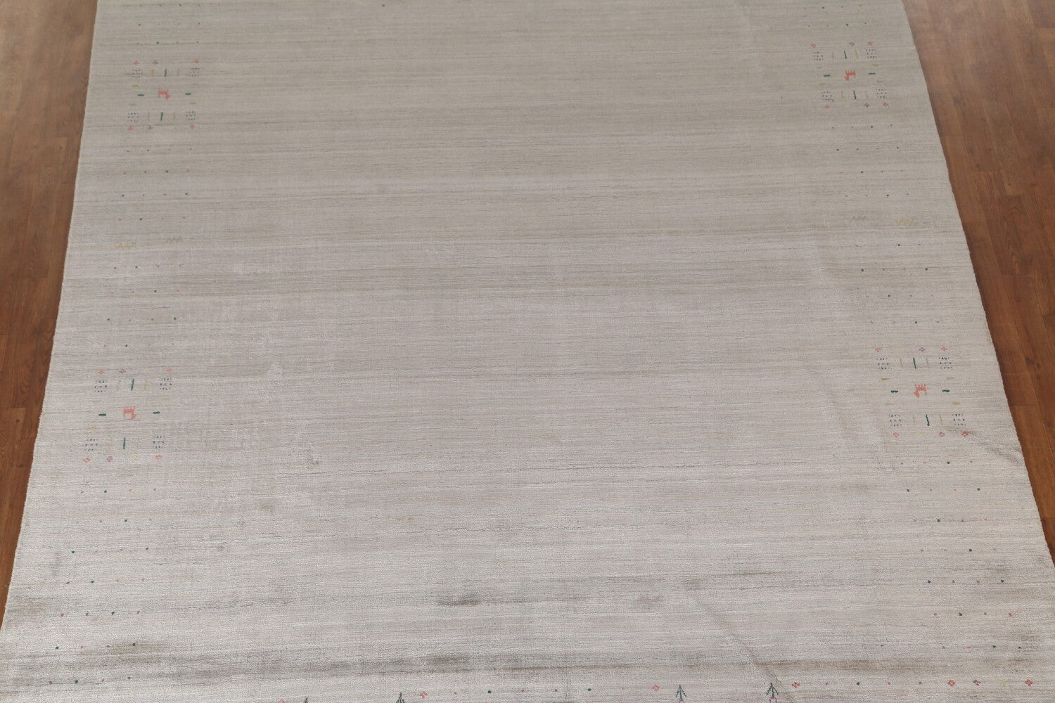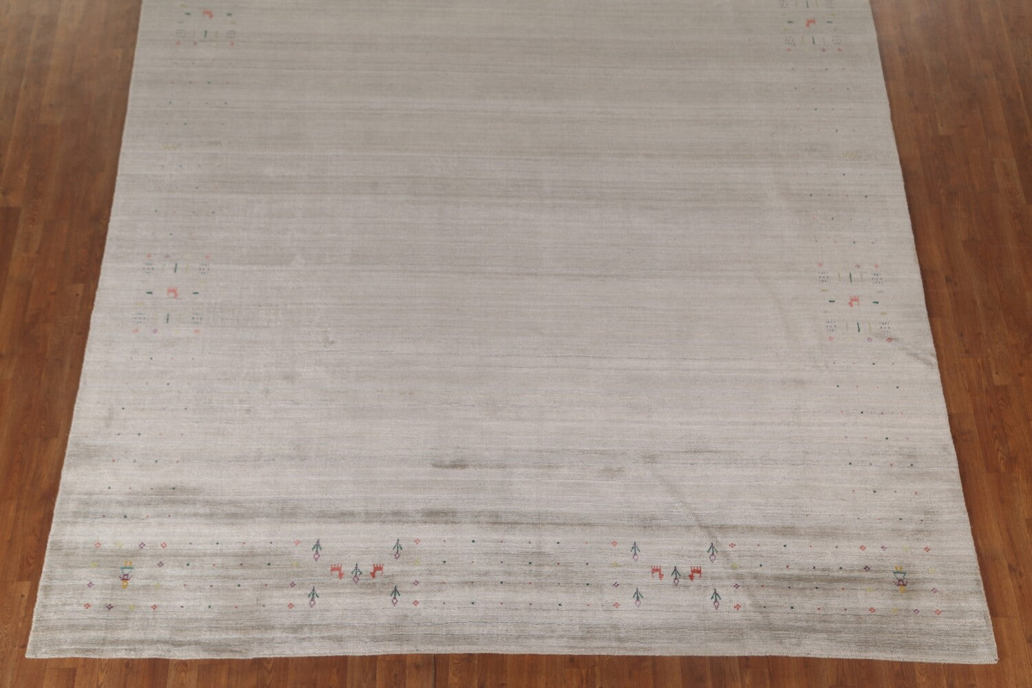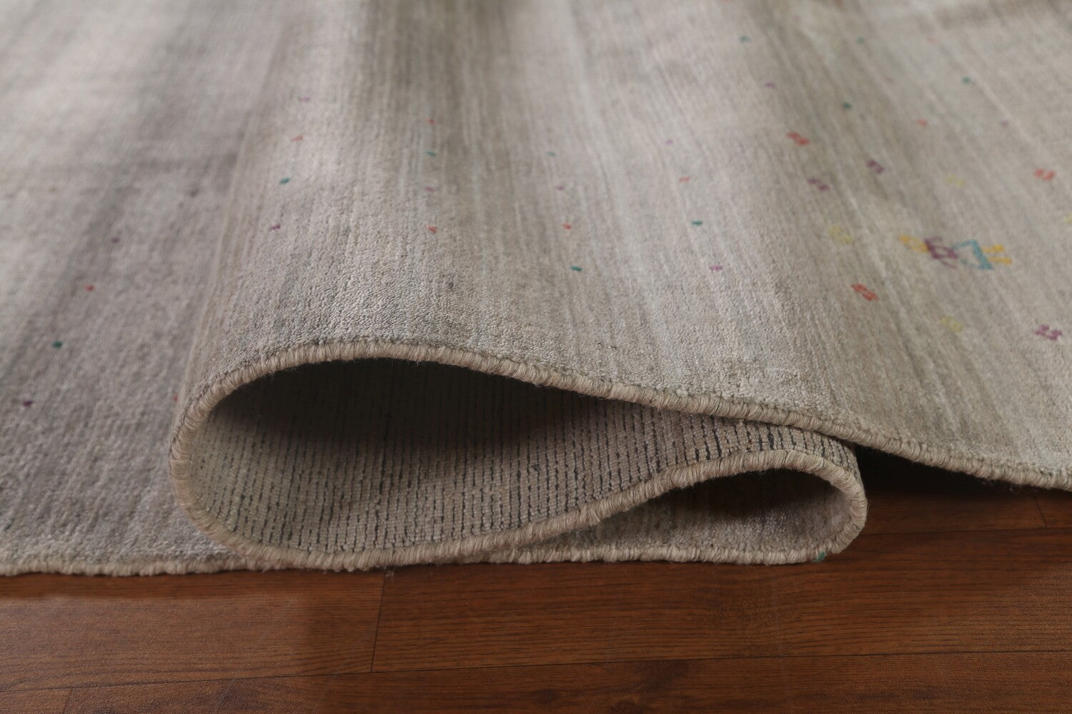 A Beautiful Genuine India Gabbeh rug is Hand Knotted by skillful weavers in India with 100% Wool Material. This rug is in condition. dimensions are 11' 8'' X 9' 0'' in foot and 356 X 274 in centimeter. the primary color is Beige & Ivories.