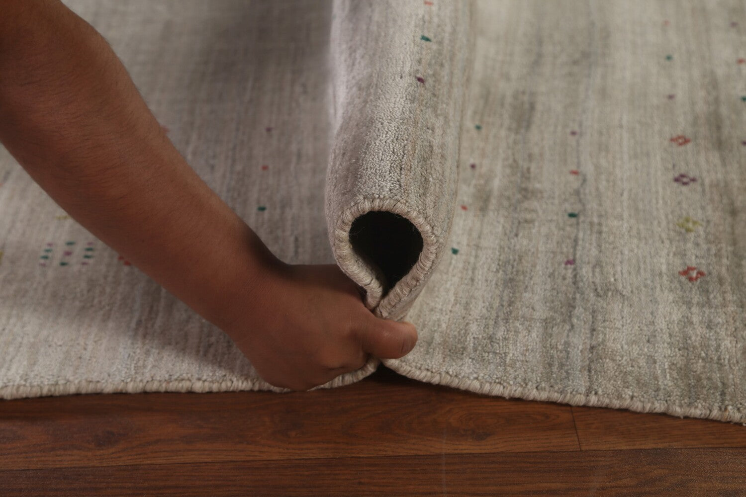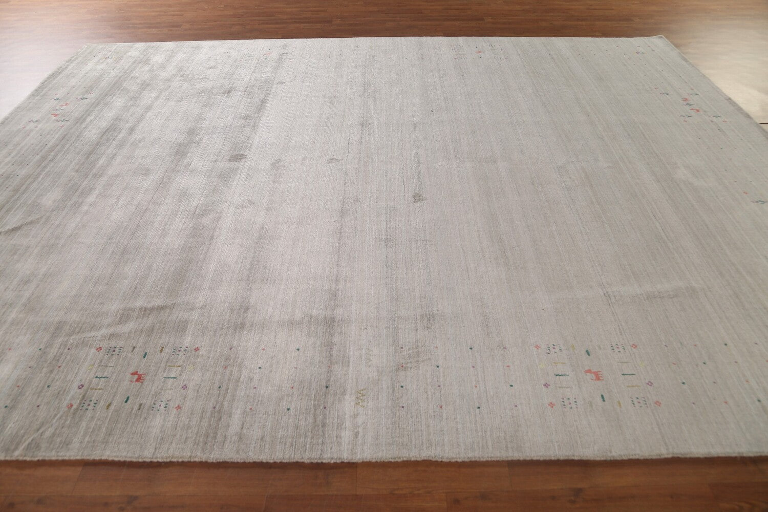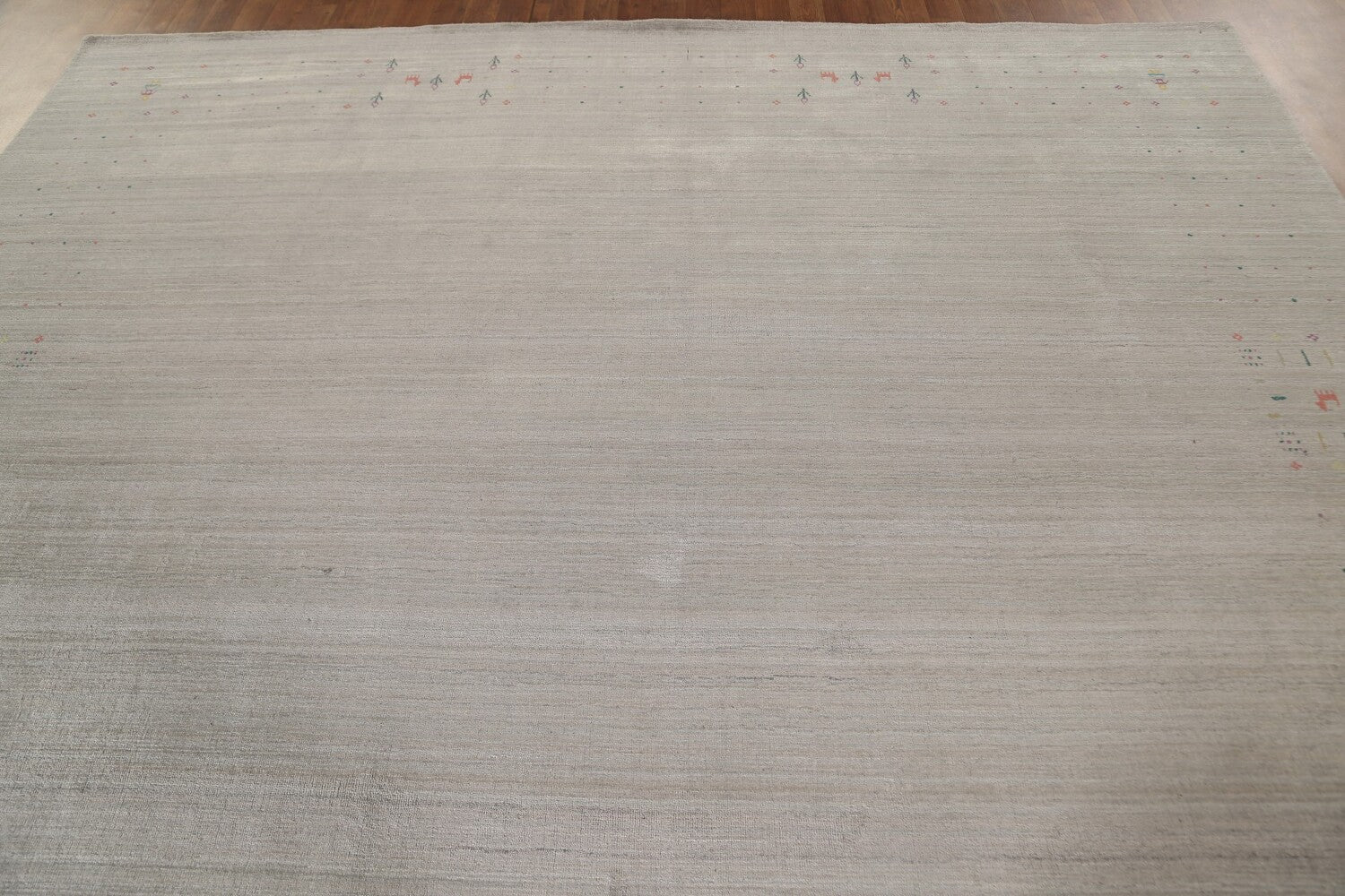 A Beautiful Genuine India Gabbeh rug is Hand Knotted by skillful weavers in India with 100% Wool Material. This rug is in condition. dimensions are 11' 8'' X 9' 0'' in foot and 356 X 274 in centimeter. the primary color is Beige & Ivories.