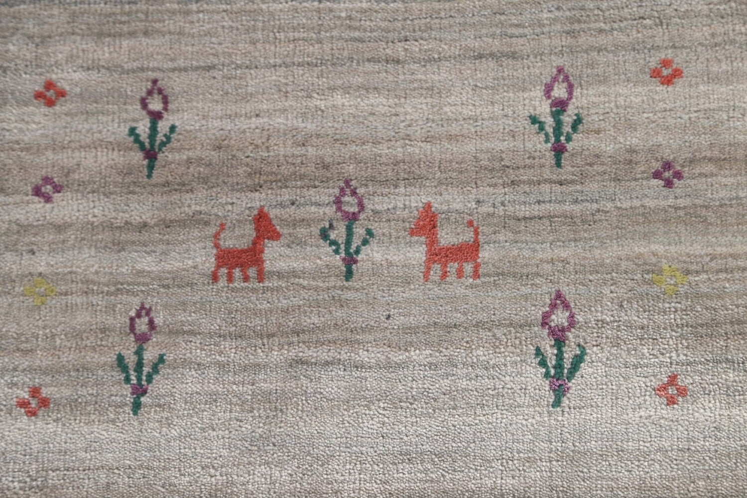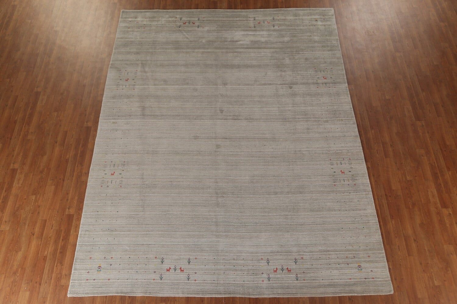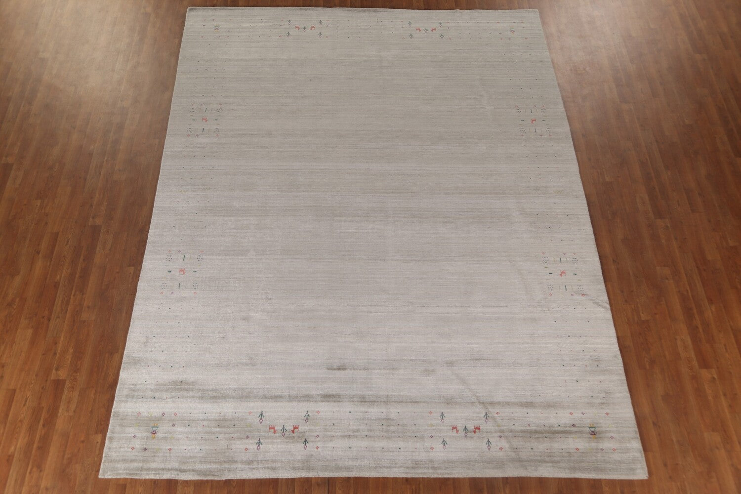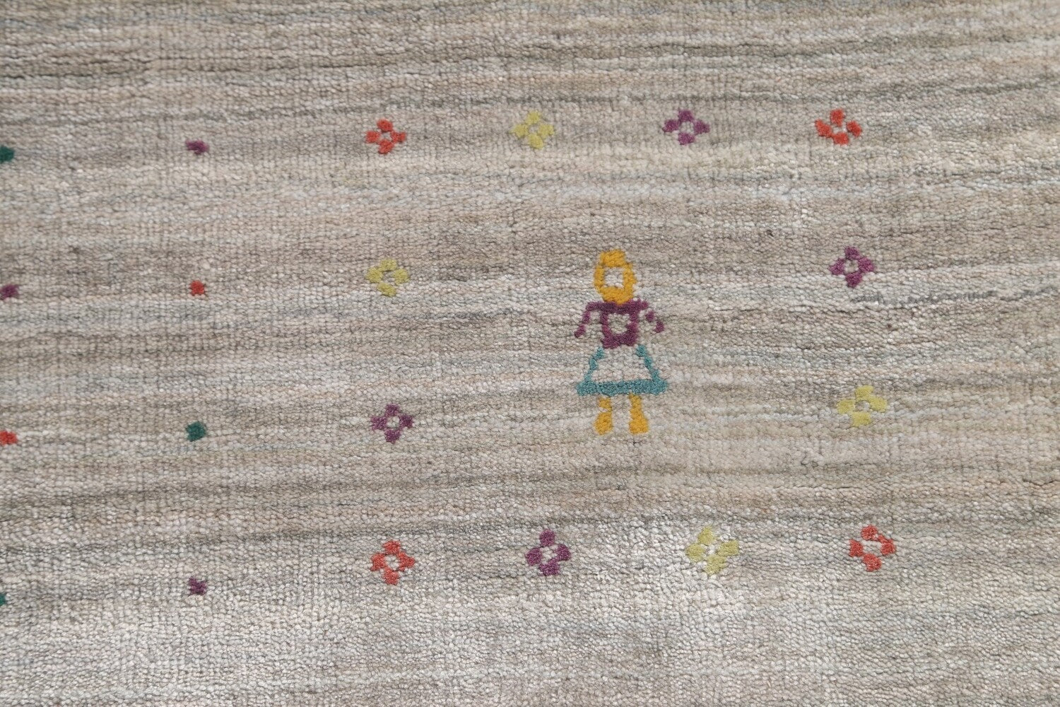 A Beautiful Genuine India Gabbeh rug is Hand Knotted by skillful weavers in India with 100% Wool Material. This rug is in condition. dimensions are 11' 8'' X 9' 0'' in foot and 356 X 274 in centimeter. the primary color is Beige & Ivories.