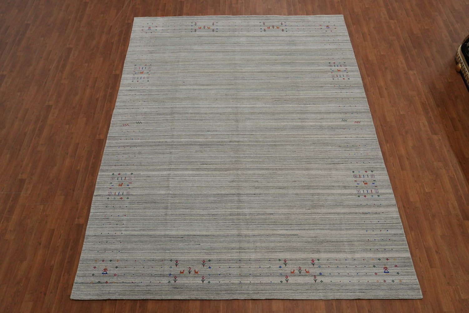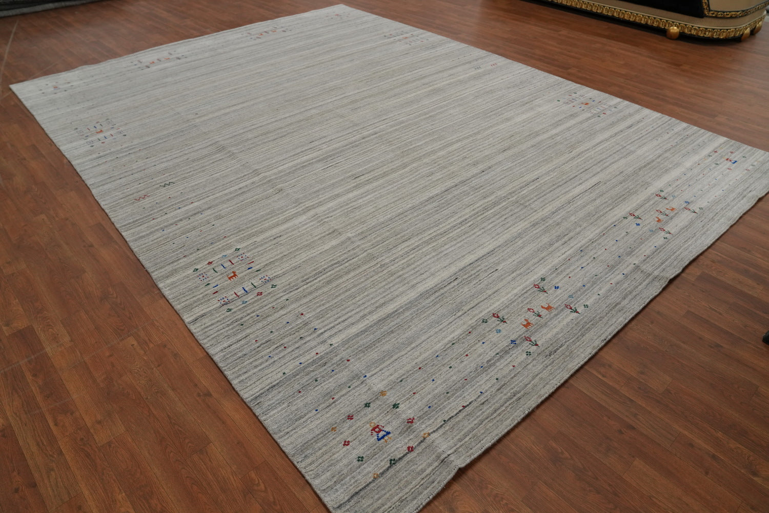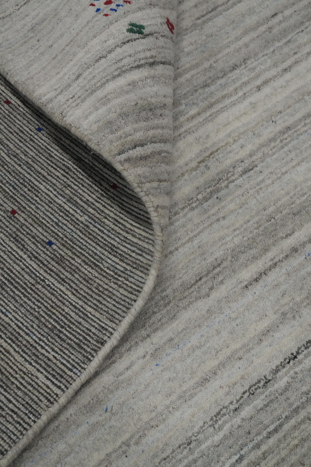 A Beautiful Genuine India Gabbeh rug is Hand Knotted by skillful weavers in India with 100% Wool Material. This rug is in New, First Quality condition. dimensions are 12' 6'' X 9' 3'' in foot and 381 X 282 in centimeter. the primary color is Greys & Charcoal.