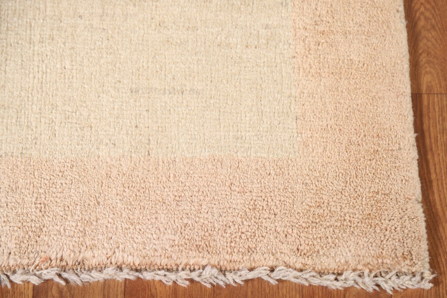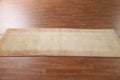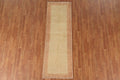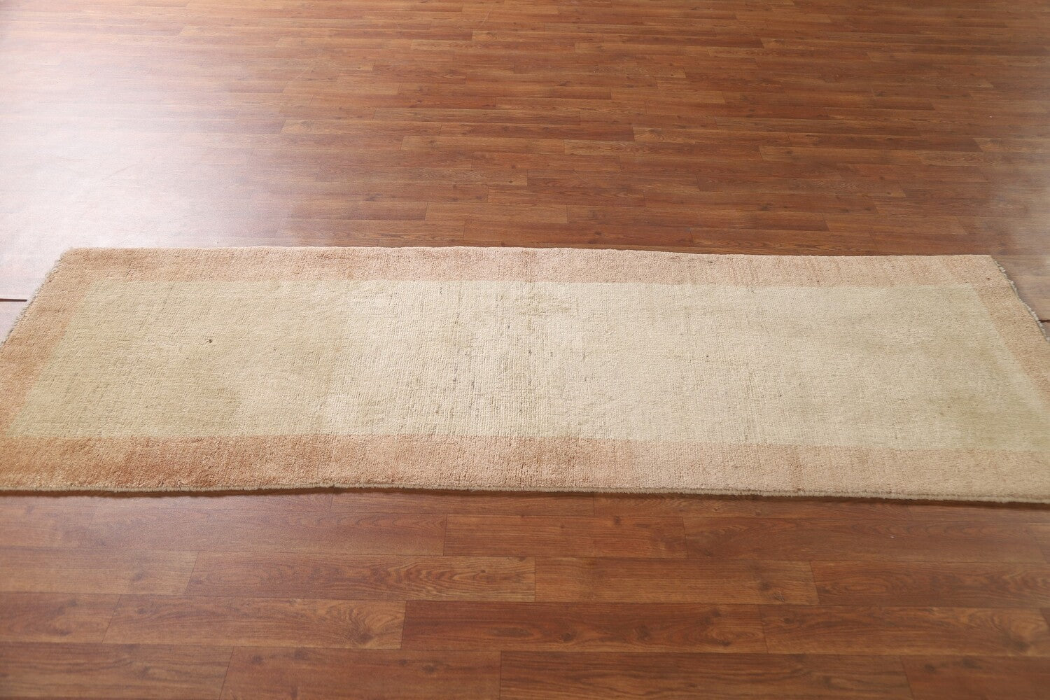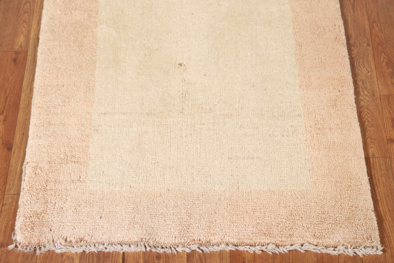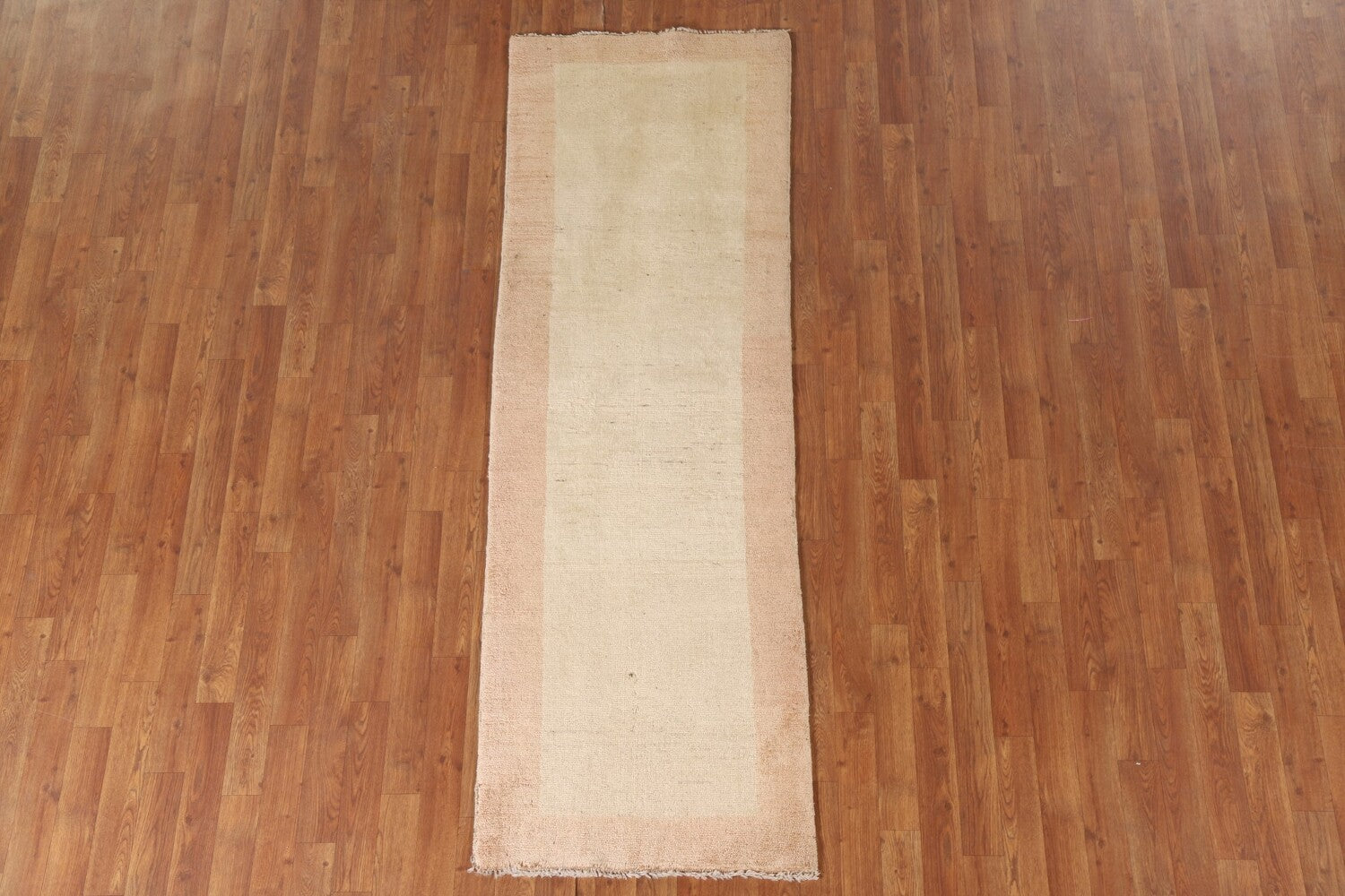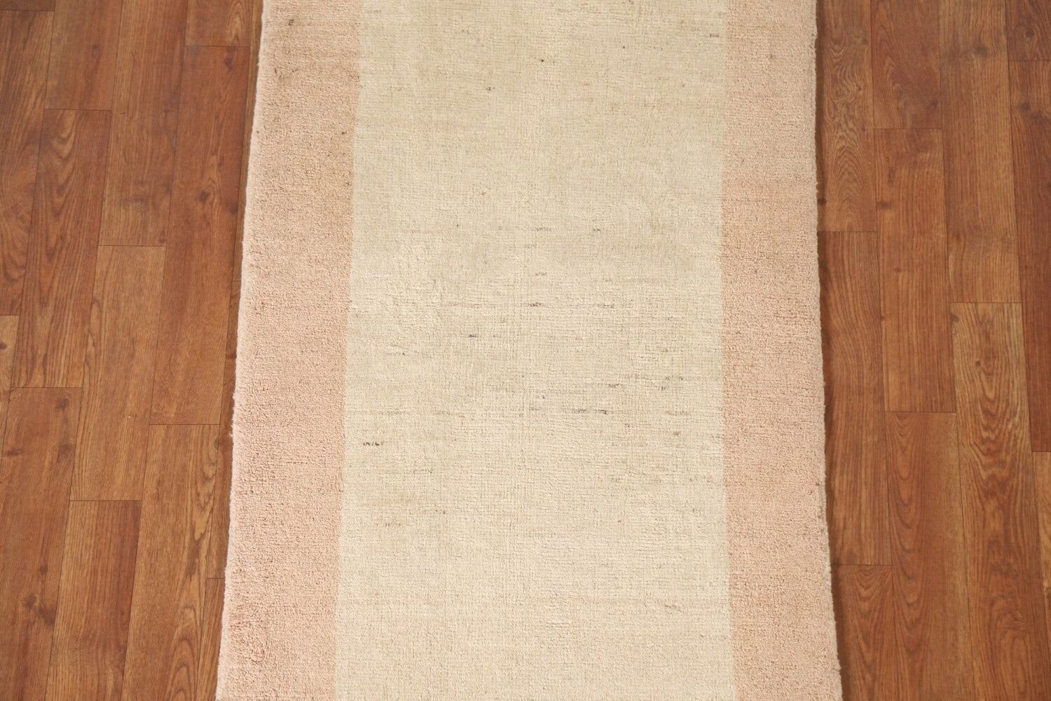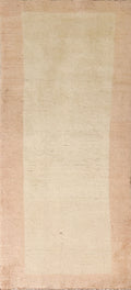 A Beautiful Genuine Persia ( Persia ) Gabbeh rug is Hand Knotted by skillful weavers in Persia ( Persia ) with 100% Wool Material. This rug is in Very Good (Small Missing Pile) condition. dimensions are 7' 1'' X 2' 4'' in foot and 216 X 71 in centimeter. the primary color is Beige & Ivories.