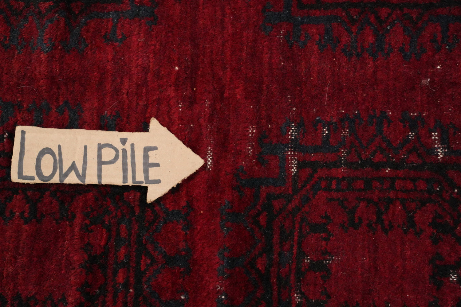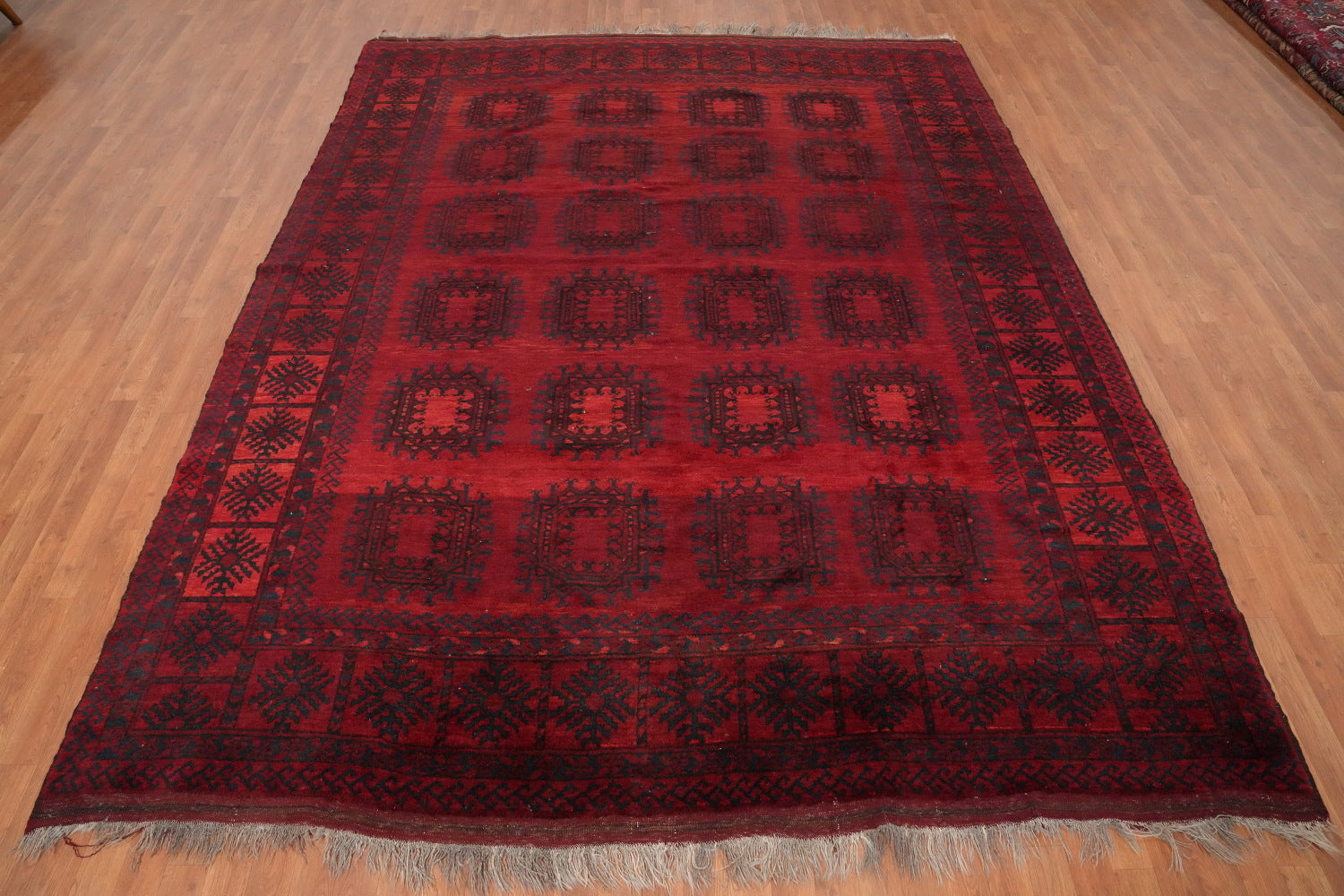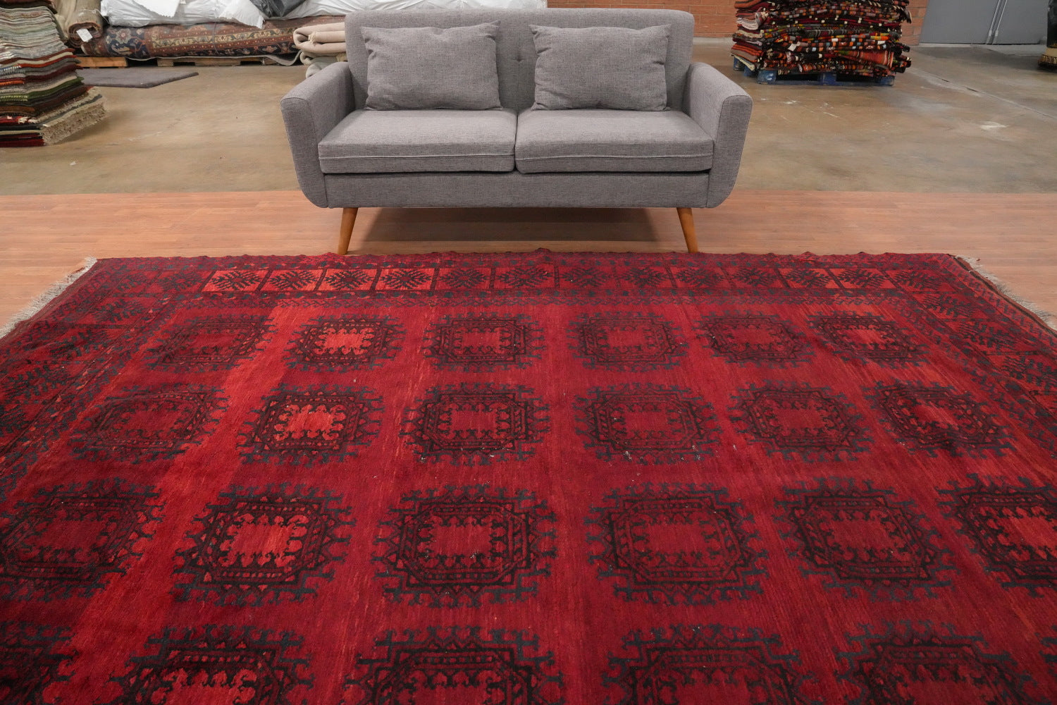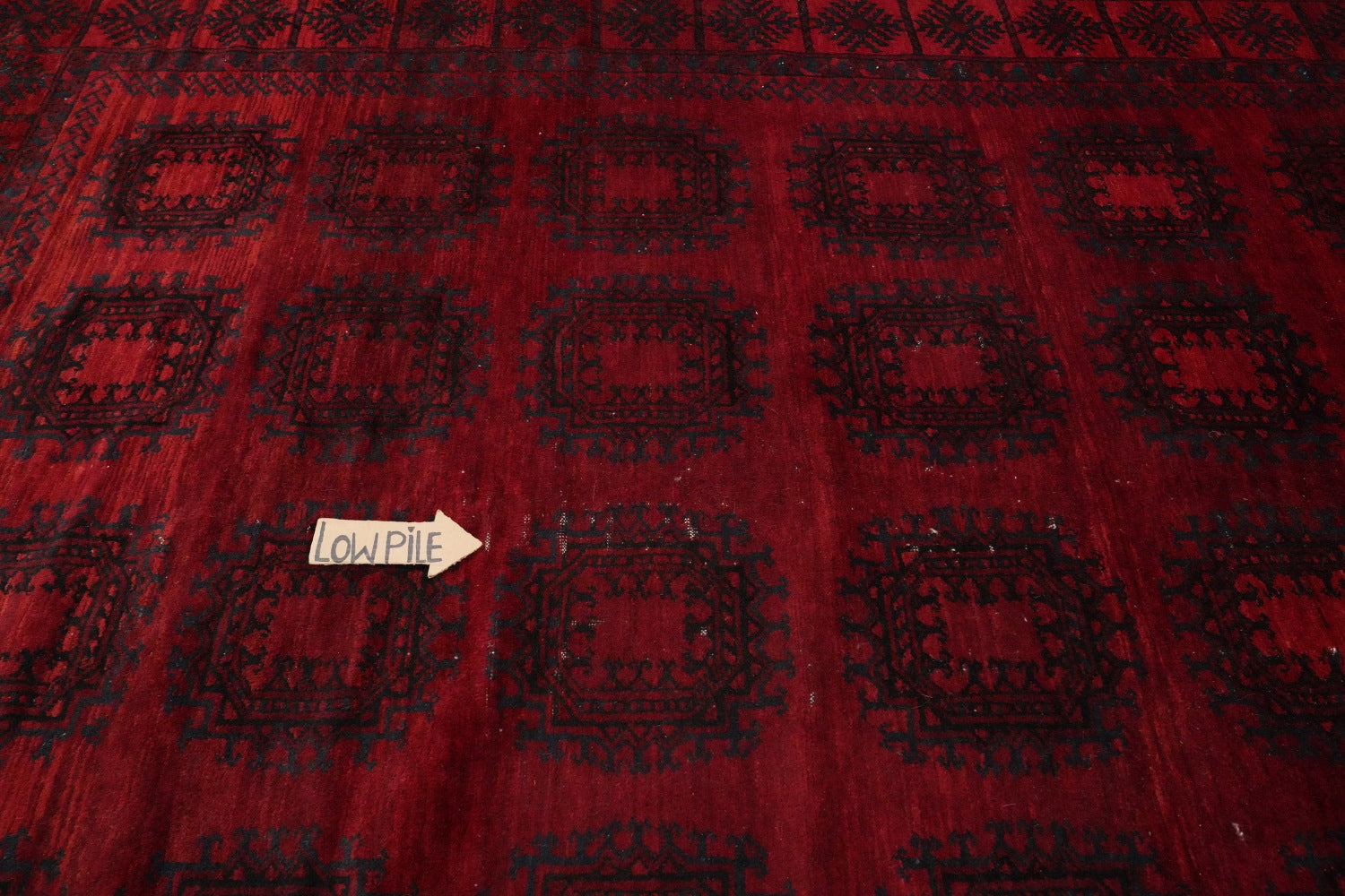 A Beautiful Genuine Afghanistan Balouch rug is Hand Knotted by skillful weavers in Afghanistan with 100% Wool Material. This rug is in Very Good ( Low Pile ) condition. dimensions are 11' 3'' X 8' 8'' in foot and 343 X 264 in centimeter. the primary color is Red.