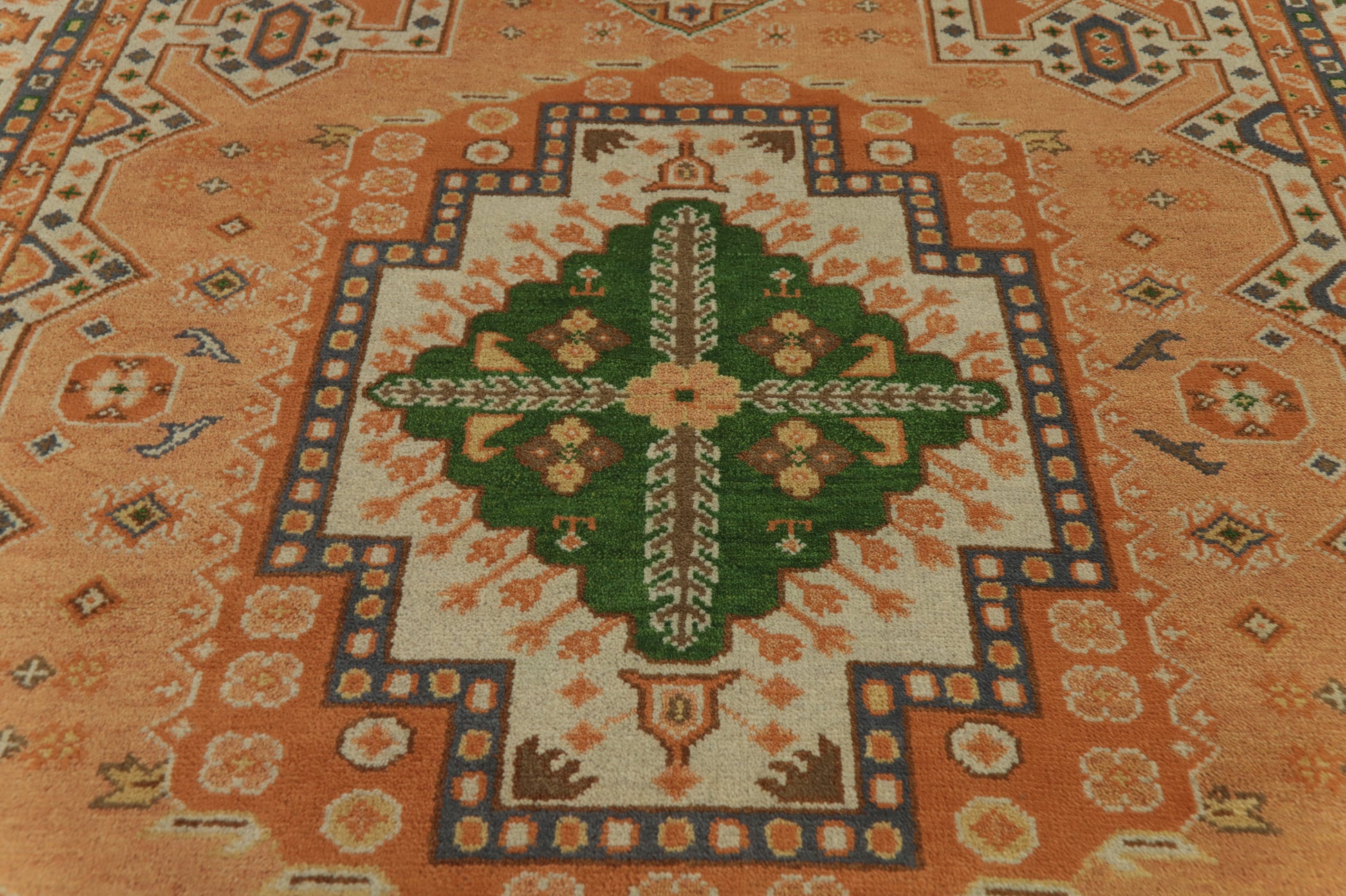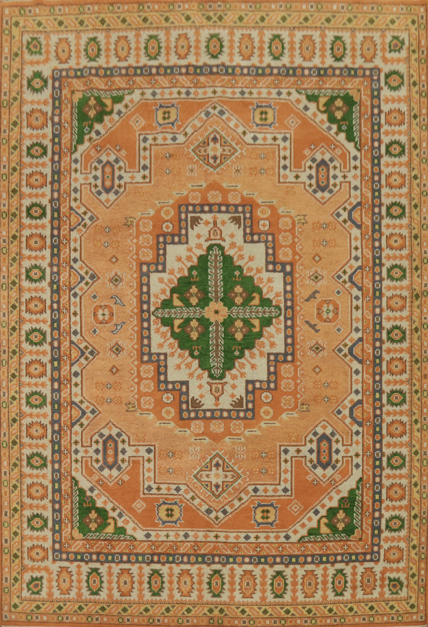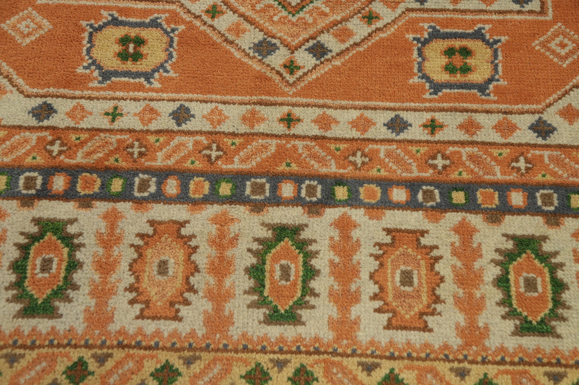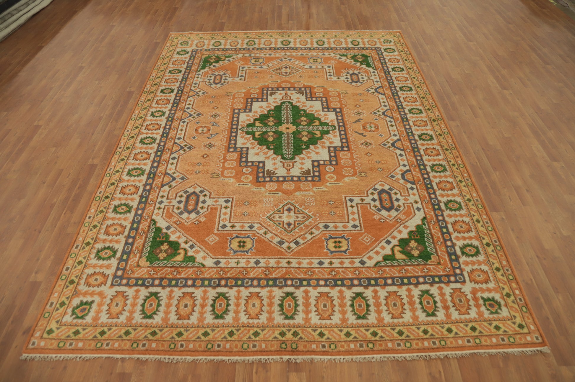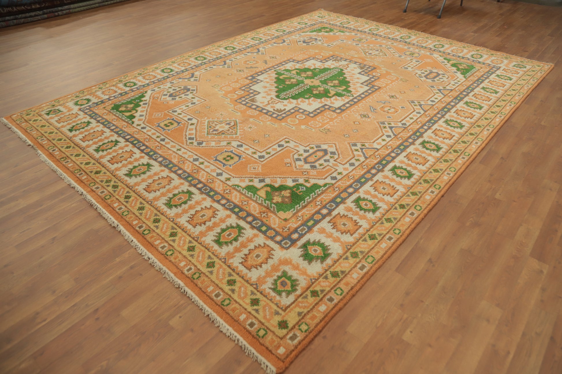 A Beautiful Genuine India Kazak rug is Hand Knotted by skillful weavers in India with 100% Wool Material. This rug is in New, First Quality condition. dimensions are 11' 10'' X 8' 9'' in foot and  361 X 267 in centimeter. the primary color is Oranges & Rust.