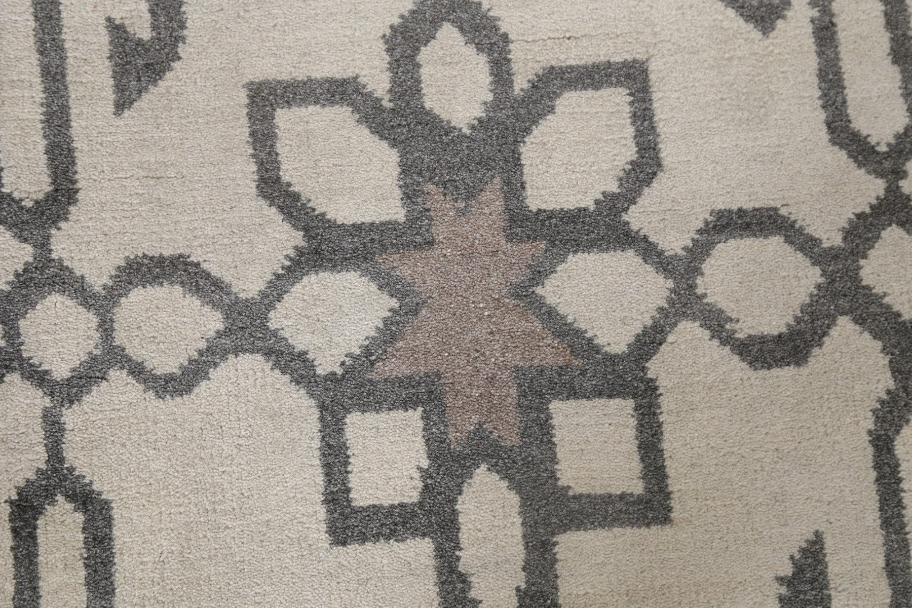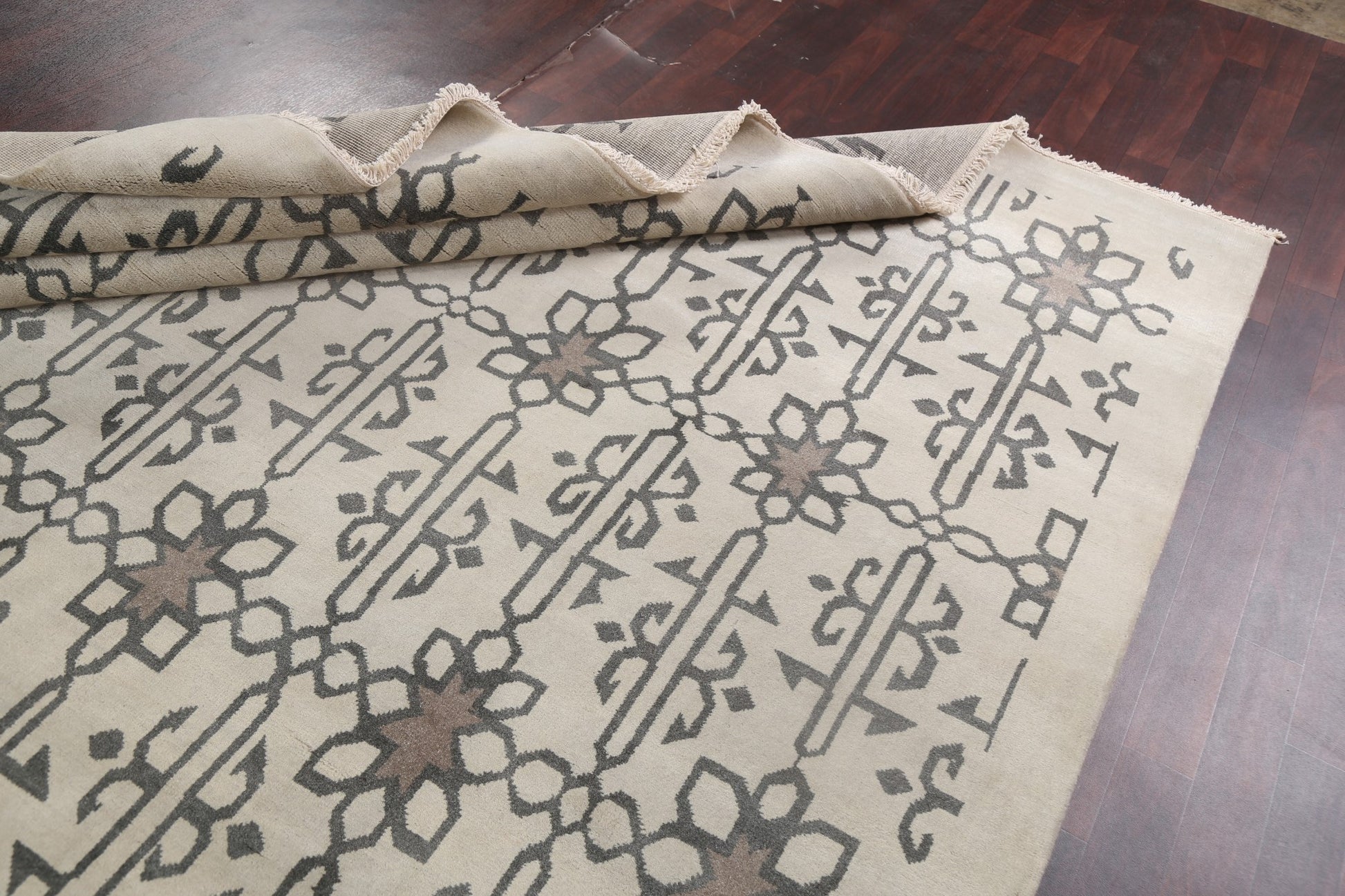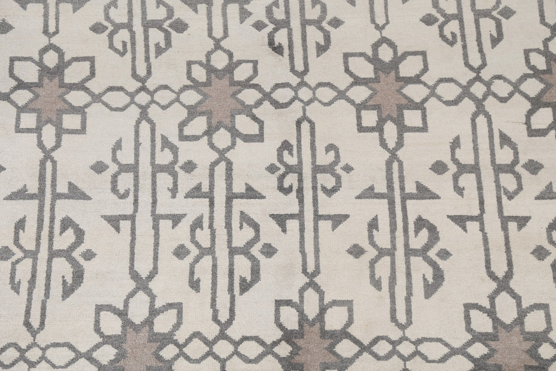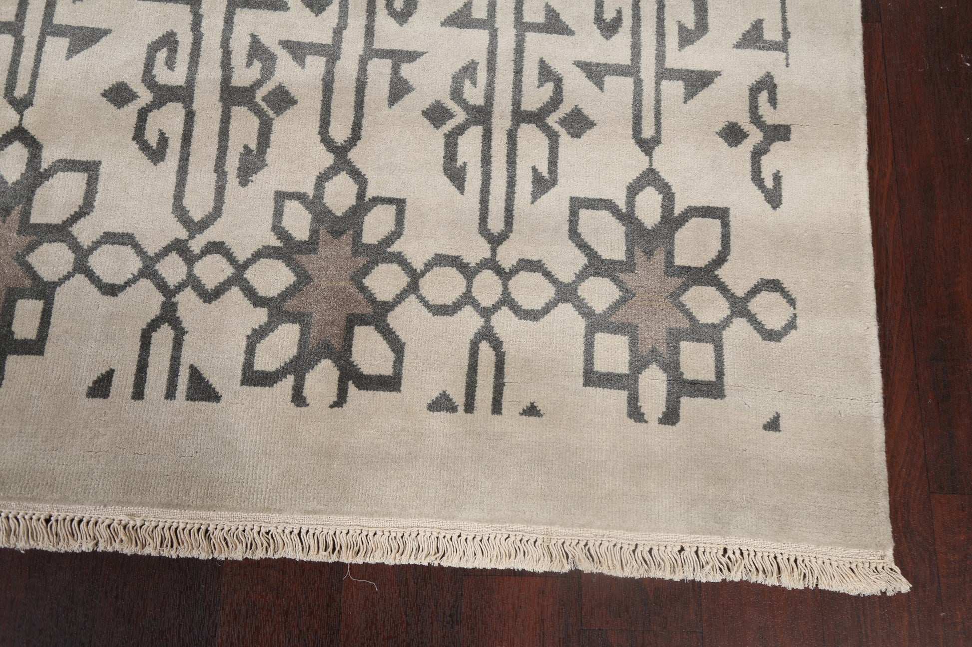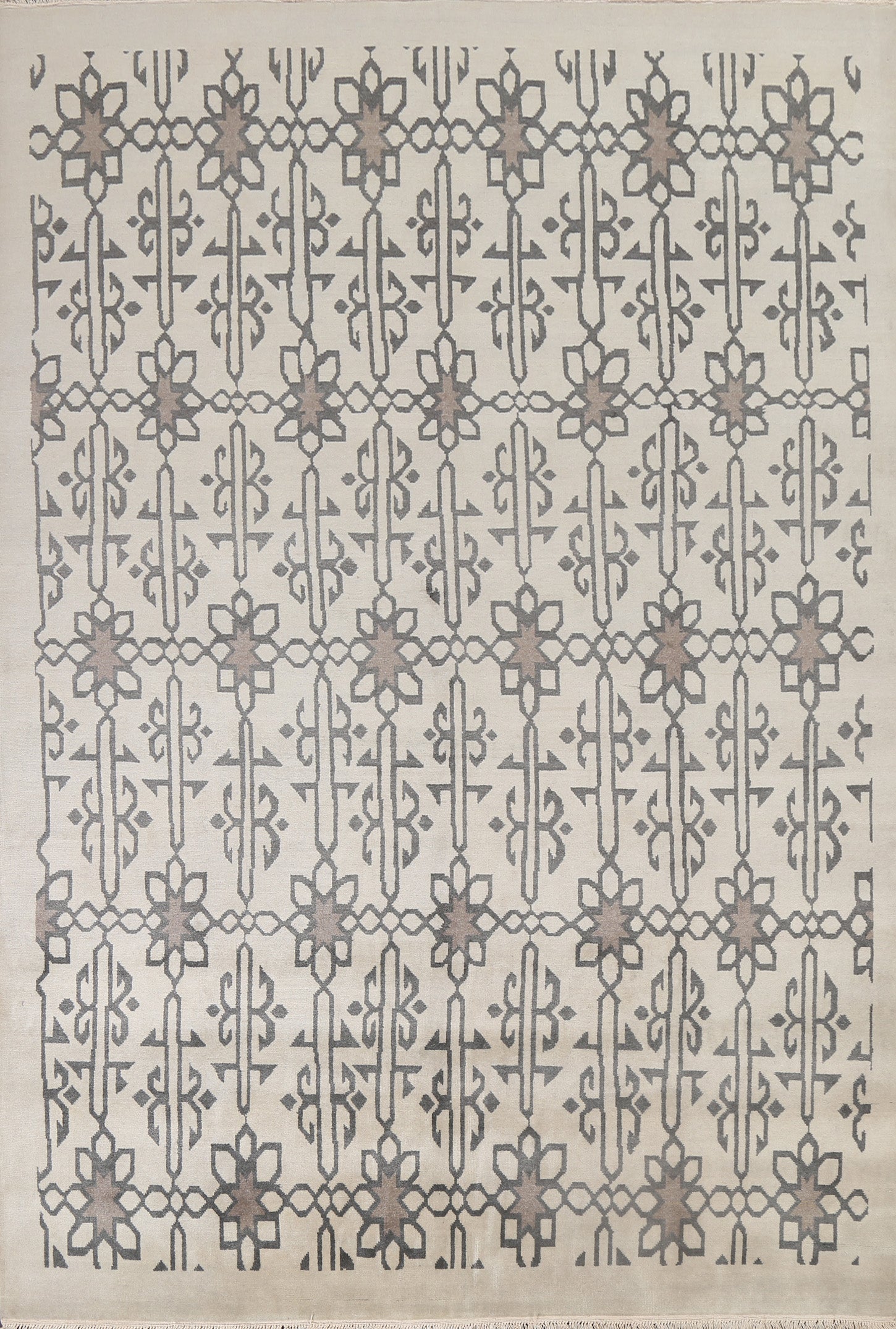 A Beautiful Genuine India Modern rug is Hand Knotted by skillful weavers in India with 100% Wool Material. This rug is in New, First Quality condition. dimensions are 9' 10'' X 7' 11'' in foot and 300 X 241 in centimeter. the primary color is Beige & Ivories.