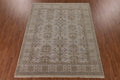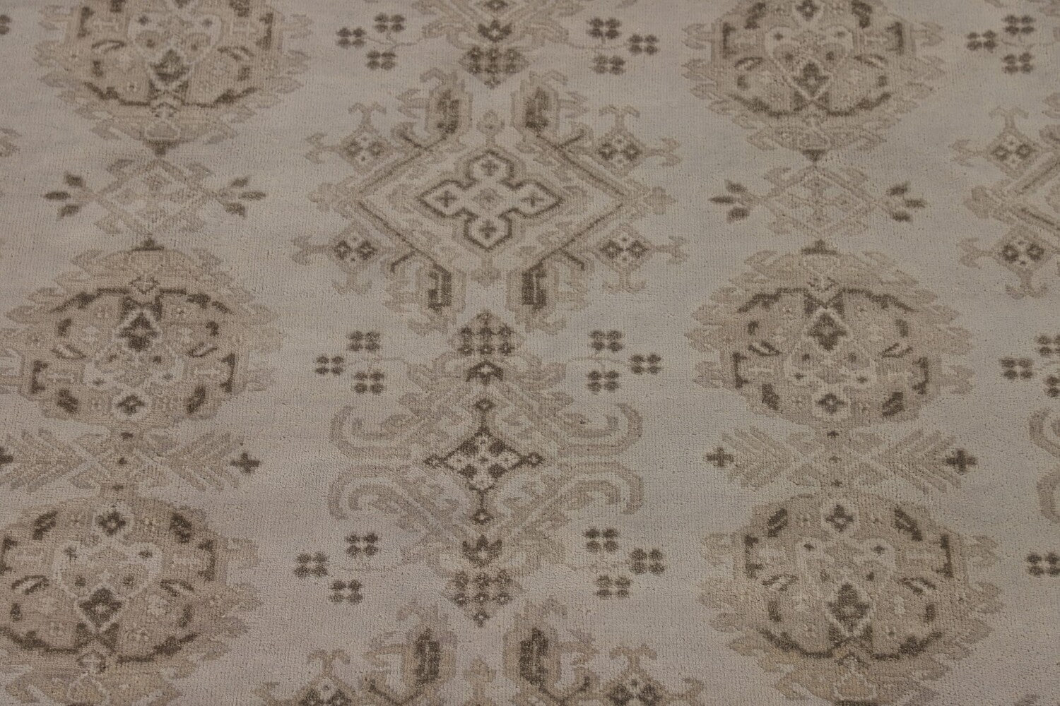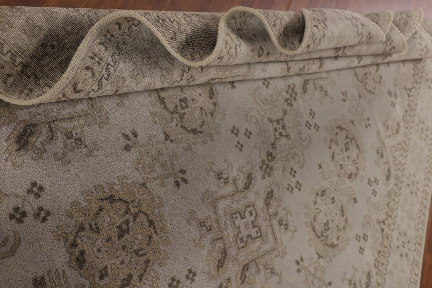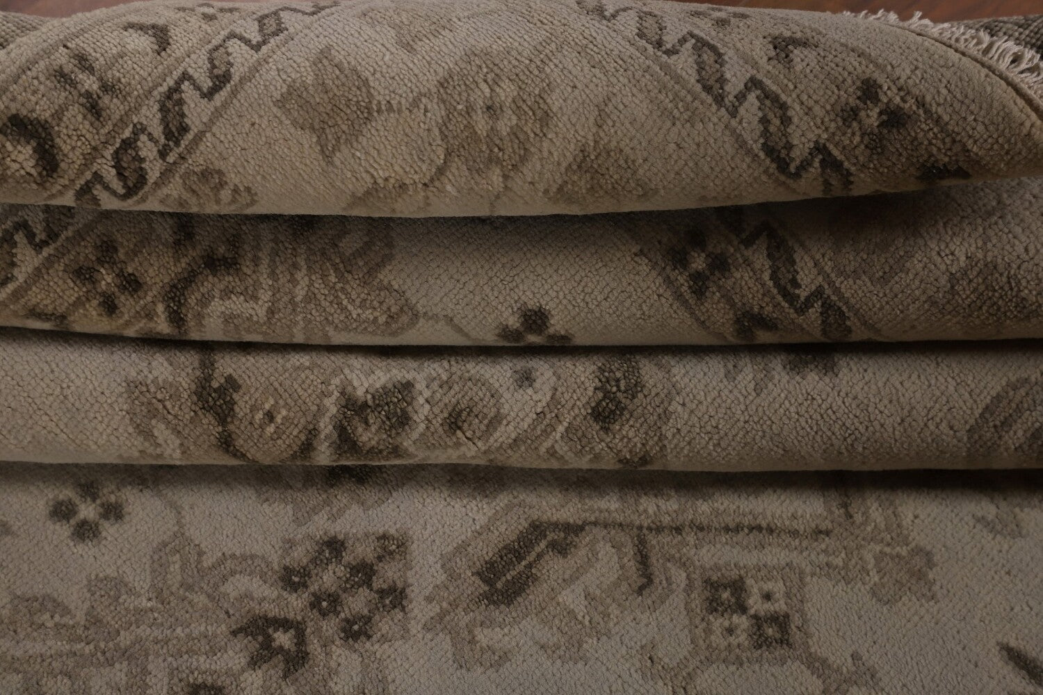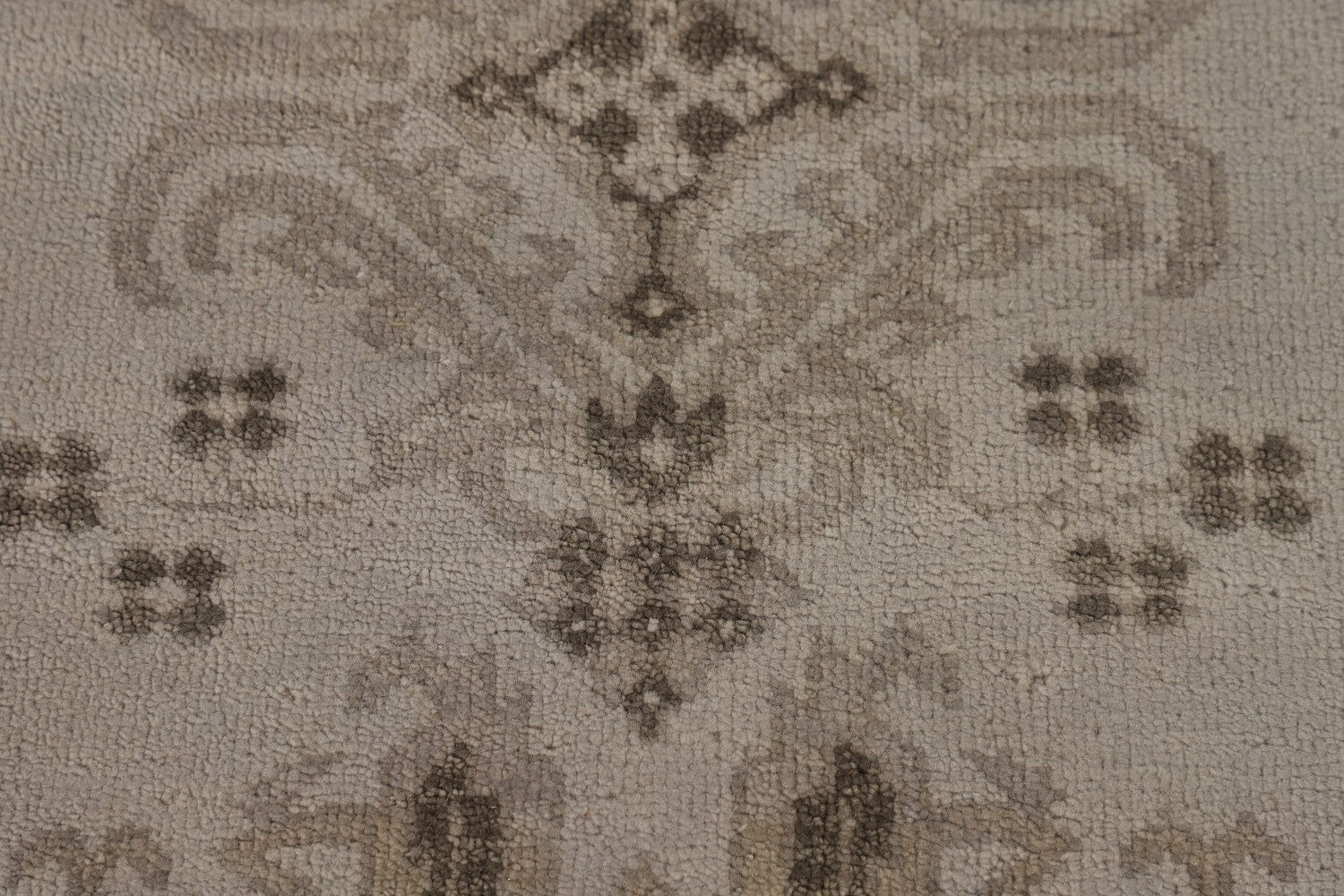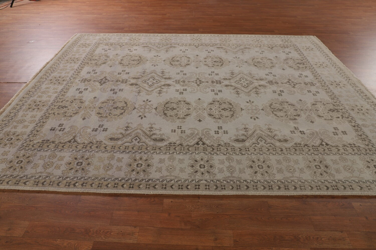 A Beautiful Genuine India Oushak rug is Hand Knotted by skillful weavers in India with 100% Wool Material. This rug is in New, First Quality condition. dimensions are 9' 9'' X 7' 11'' in foot and 297 X 241 in centimeter. the primary color is Beige & Ivories.