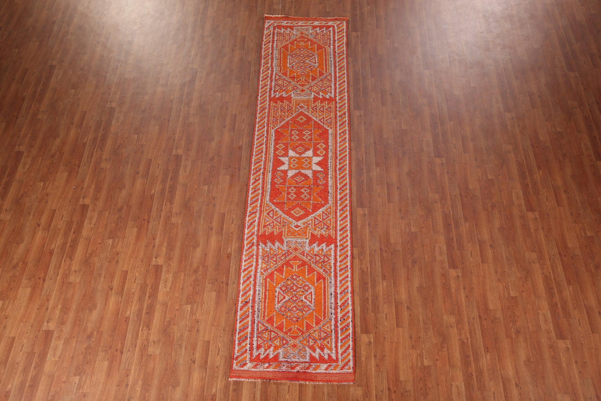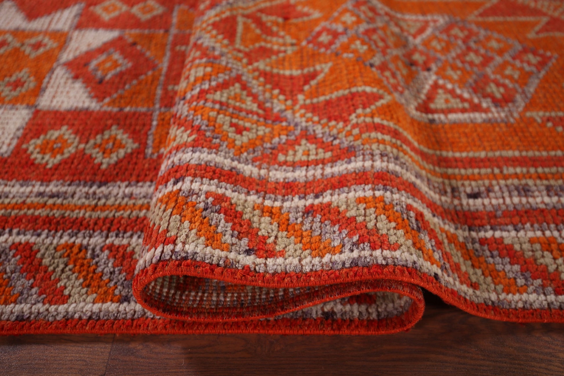 Handmade Geometric Oushak Turkish Runner Rug 3x12