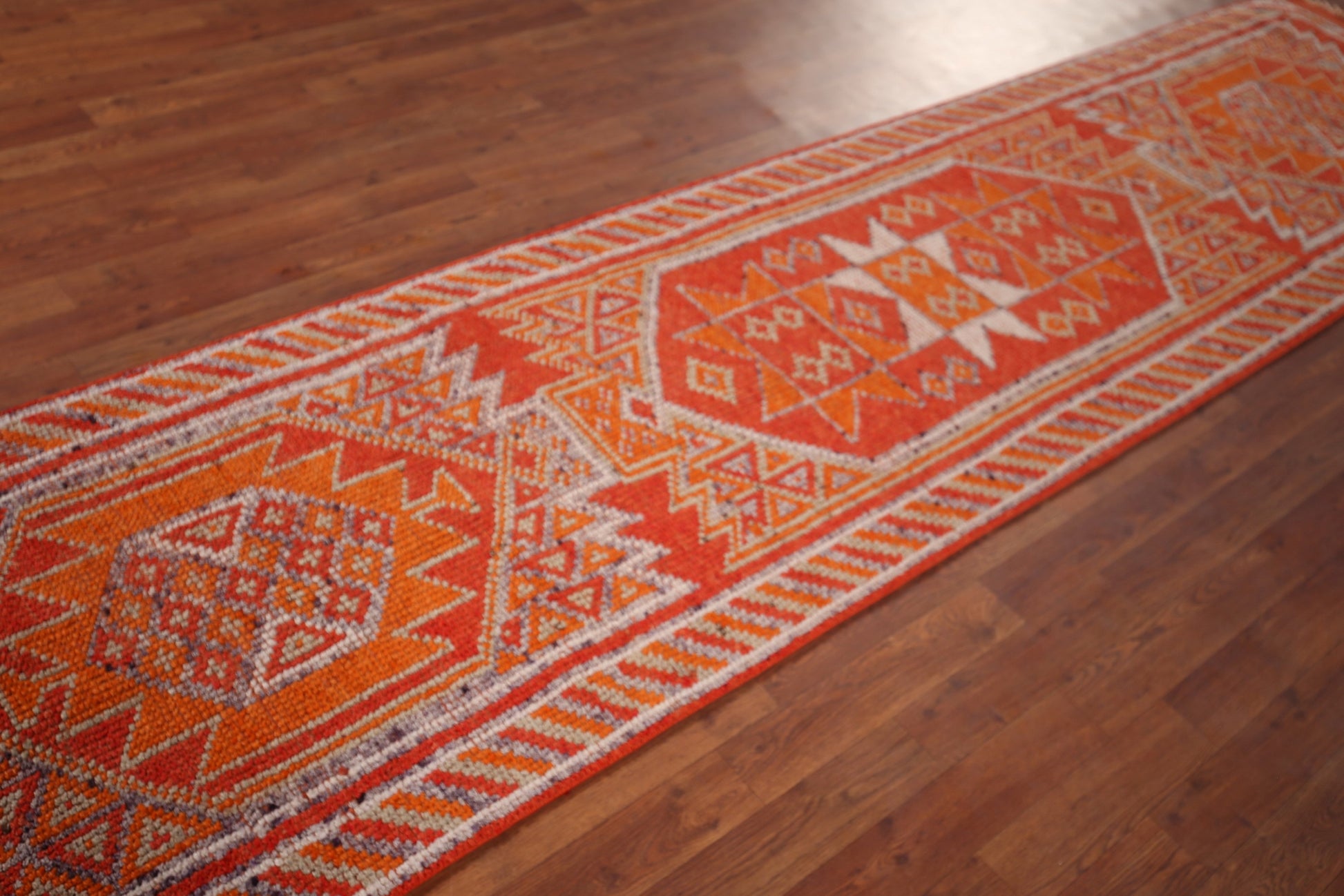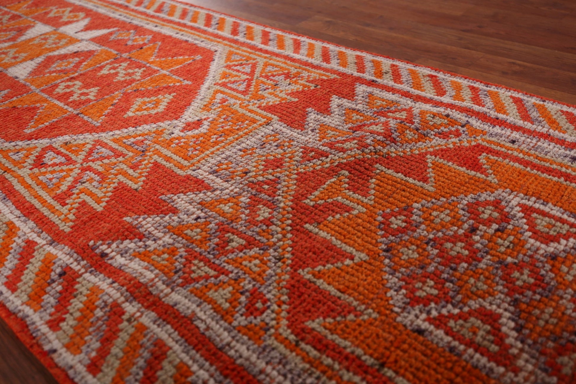 A Beautiful Genuine Turkey Oushak rug is Hand Knotted by skillful weavers in Turkey with 100% Wool Material. This rug is in Very Good condition. dimensions are 11' 7'' X 2' 9'' in foot and 353 X 84 in centimeter. the primary color is Oranges & Rust.