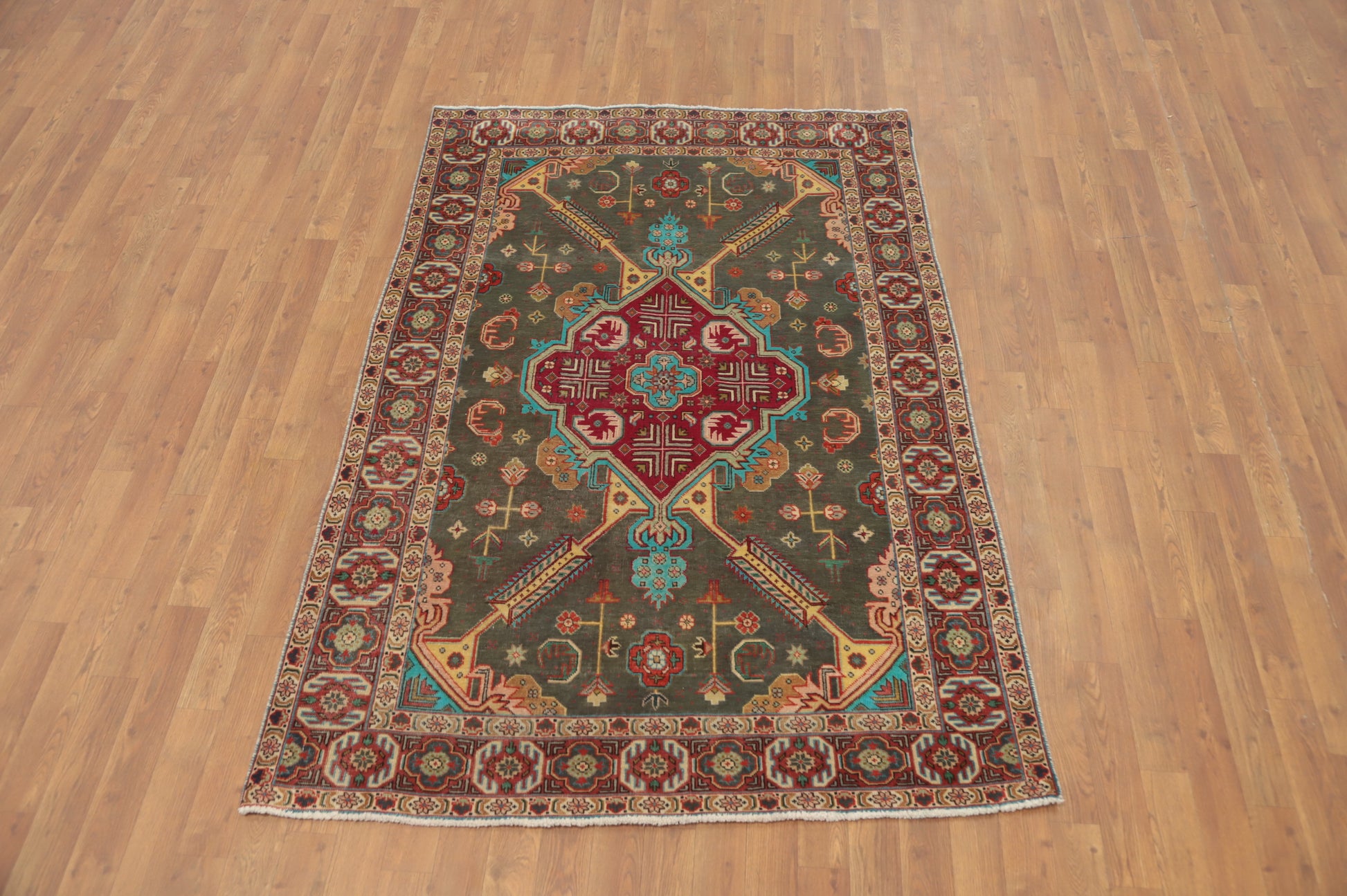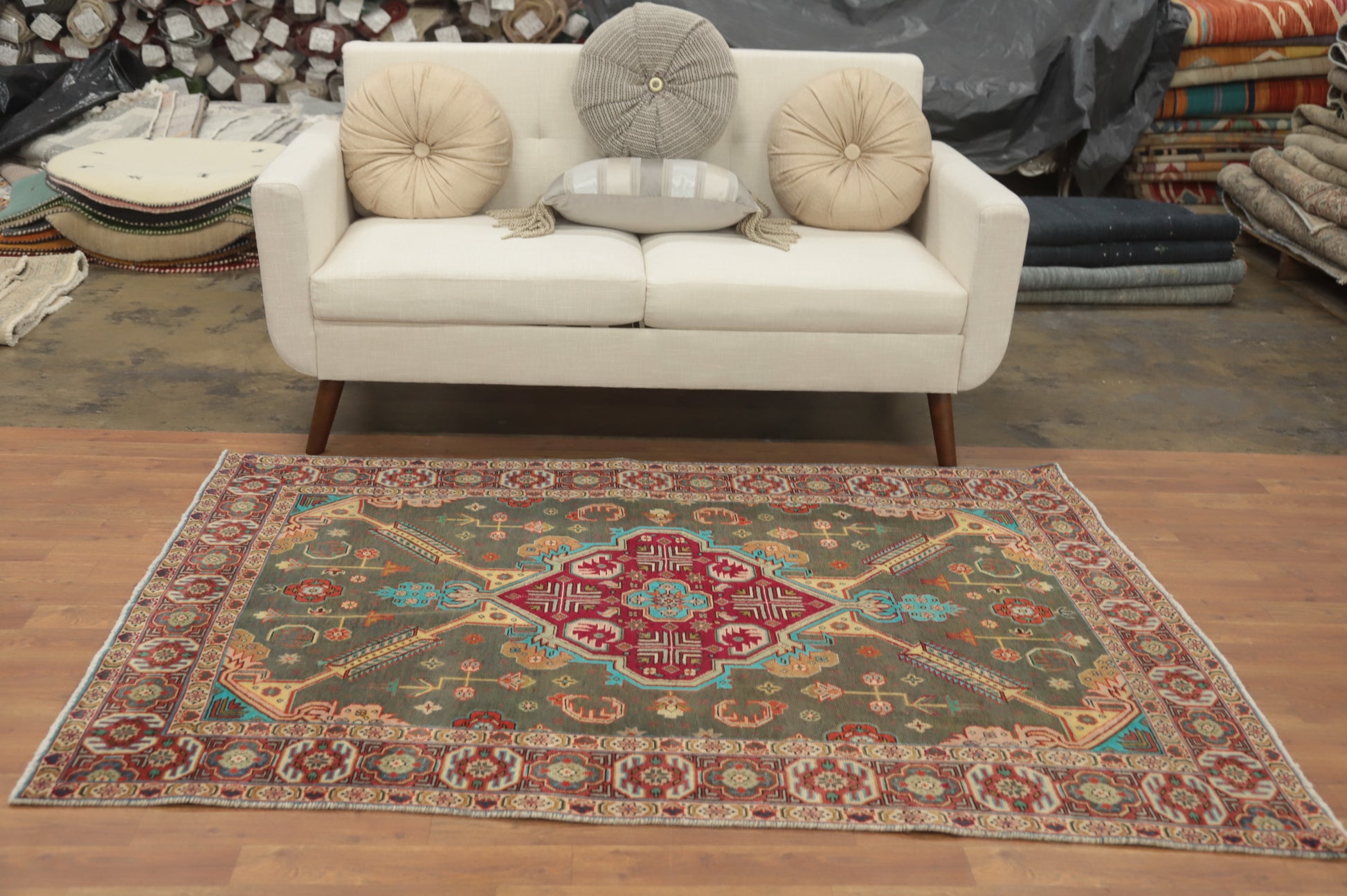 A Beautiful Genuine Persia ( Persia ) Tabriz rug is Hand Knotted by skillful weavers in Persia ( Persia ) with 100% Wool Material. This rug is in Very Good condition. dimensions are 6' 3'' X 4' 4'' in foot and 191 X 132 in centimeter. the primary color is Green.