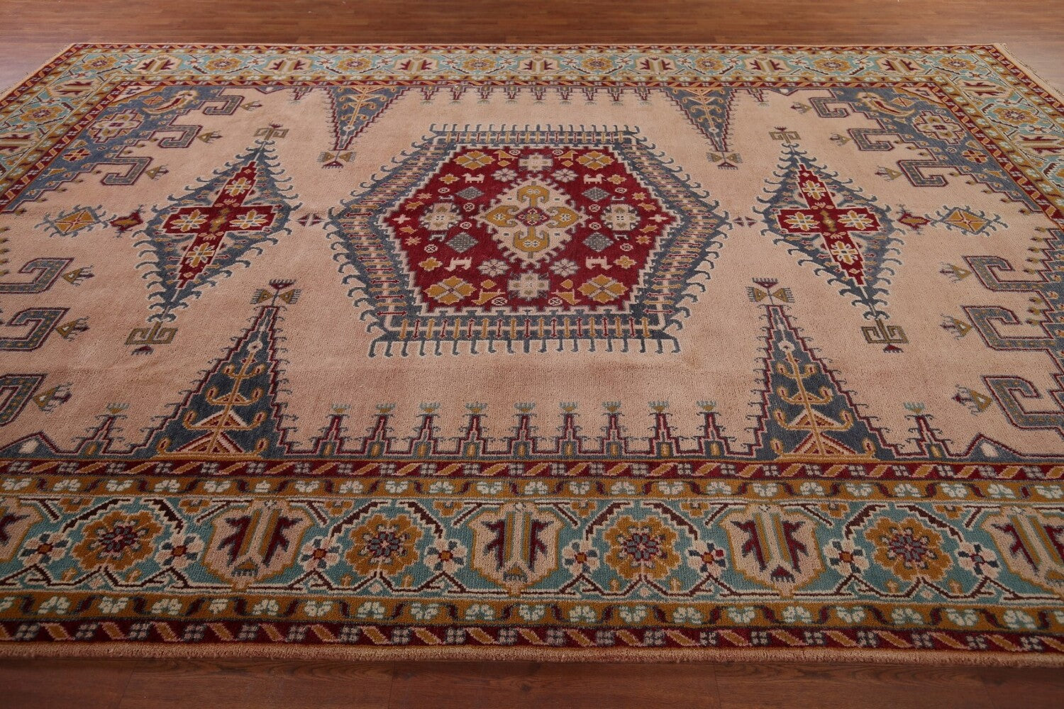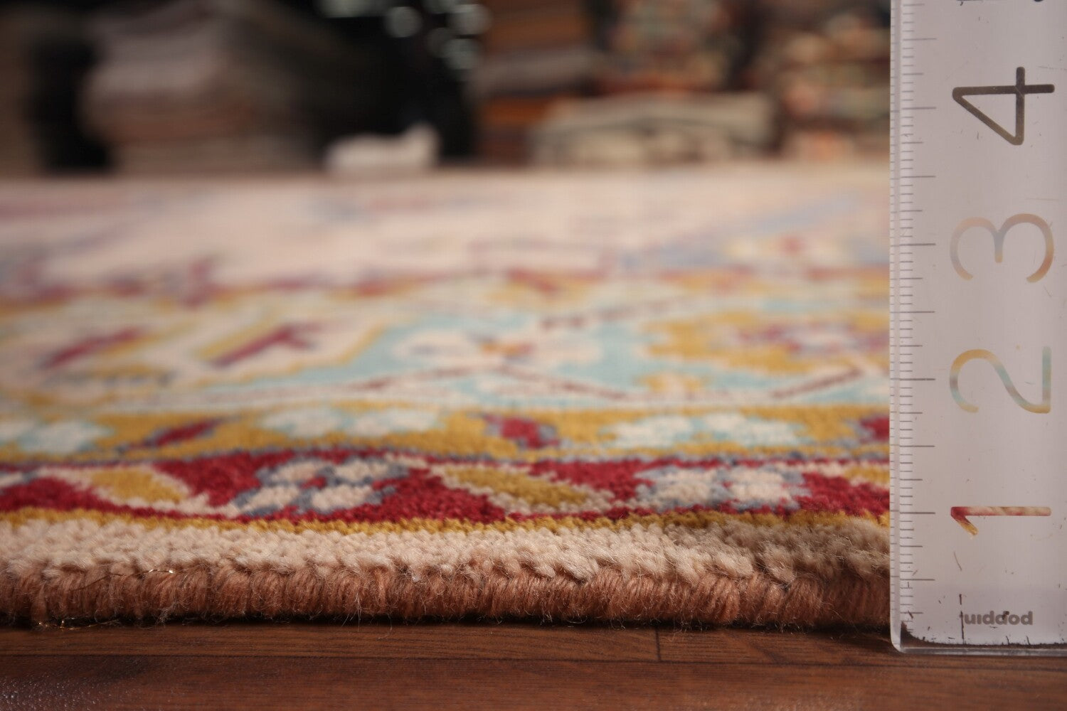 A Beautiful Genuine India Viss rug is Hand Knotted by skillful weavers in India with 100% Wool Material. This rug is in New, First Quality condition. dimensions are 14' 1'' X 9' 7'' in foot and 429 X 292 in centimeter. the primary color is Peach.