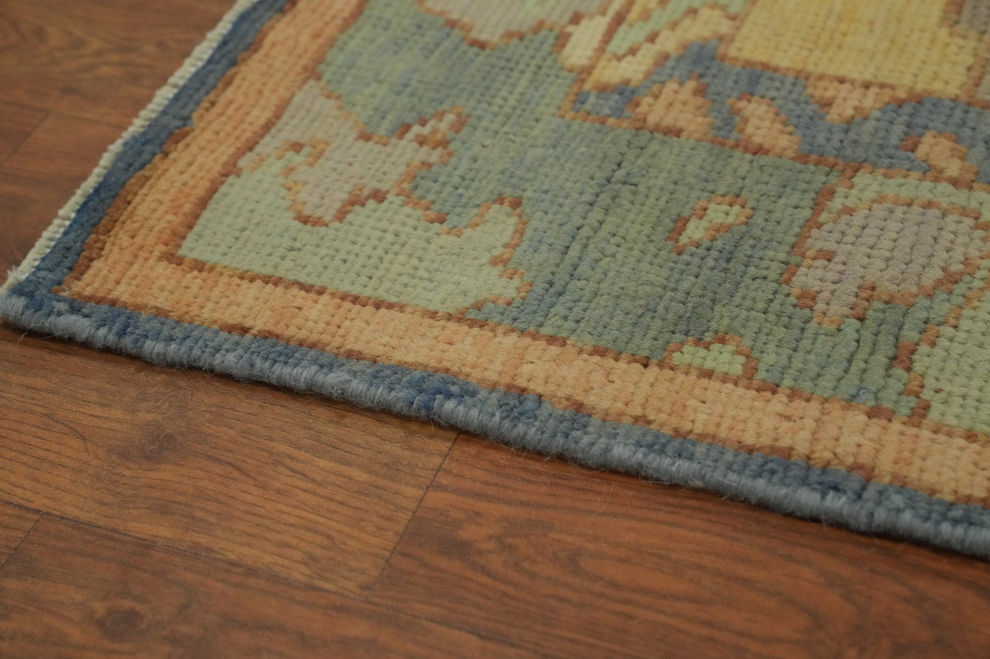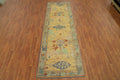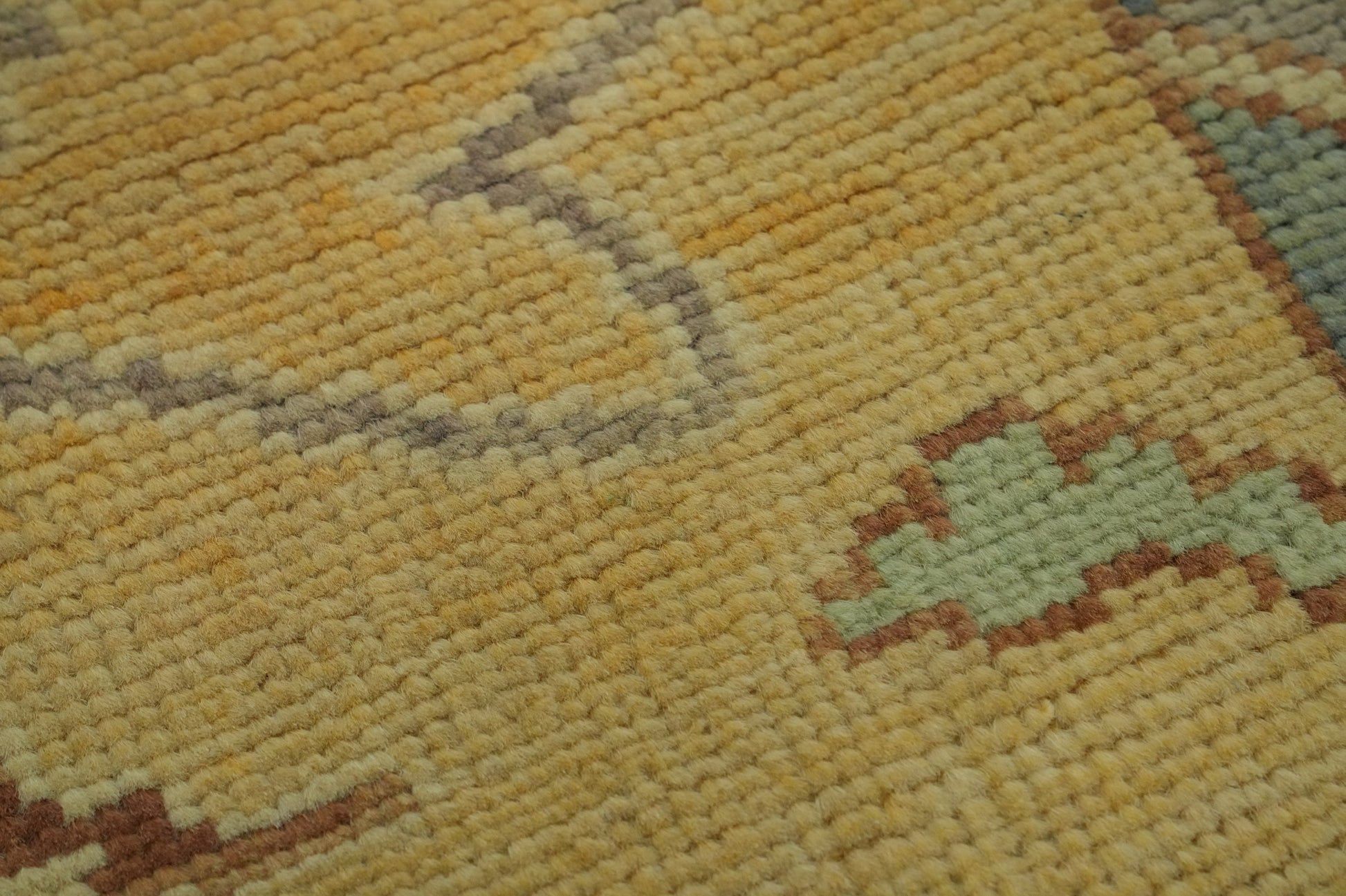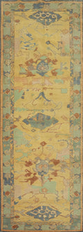 Handmade Gold Oushak Vegetable Dye Runner Rug 4x12