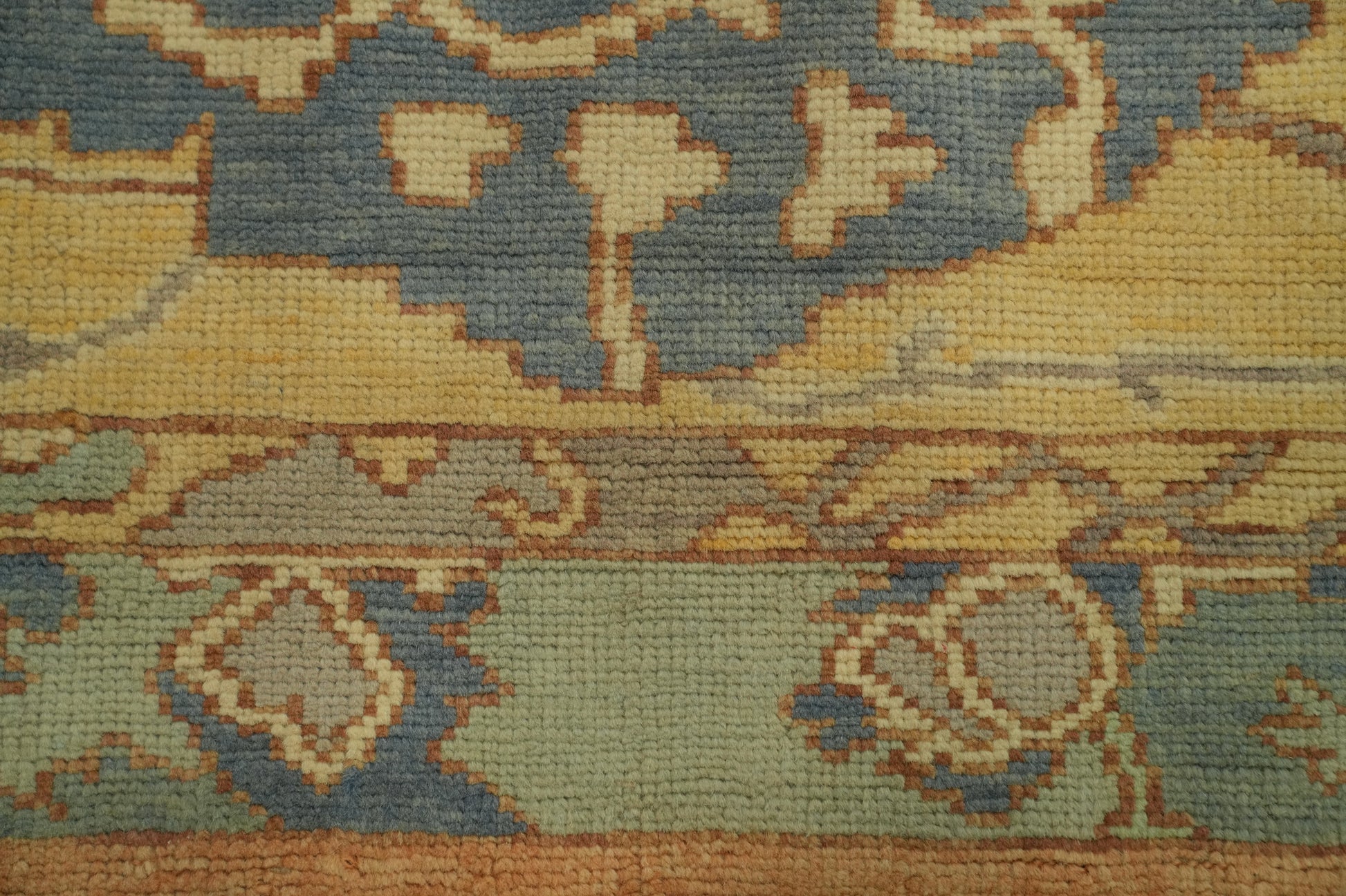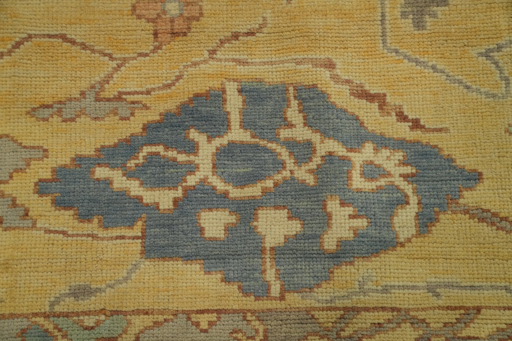 A Beautiful Genuine Turkey Oushak rug is Hand Knotted by skillful weavers in Turkey with 100% Wool Material. This rug is in New, First Quality condition. dimensions are 11' 11'' X 3' 10'' in foot and 363 X 117 in centimeter. the primary color is Yellow & Gold.