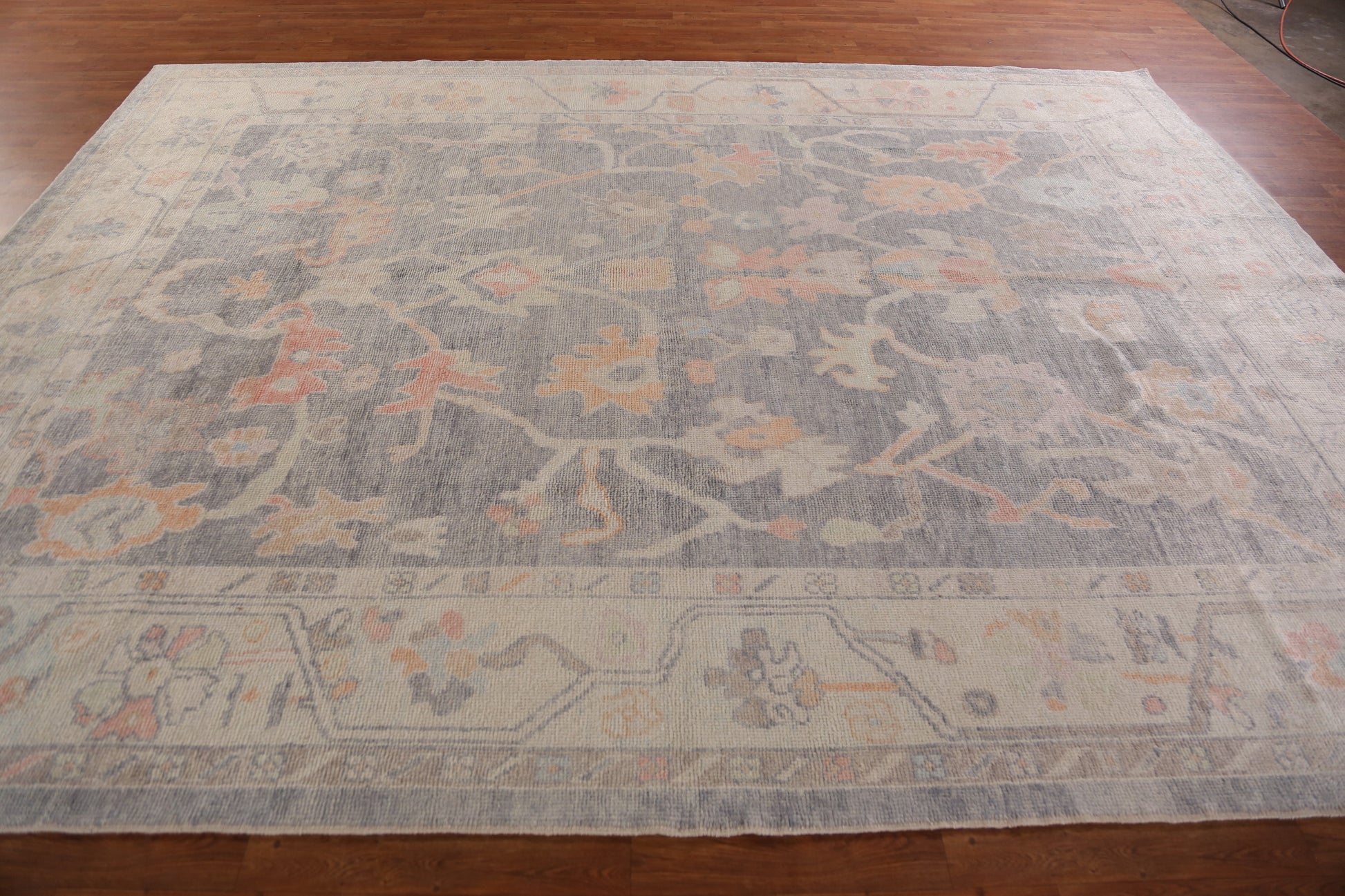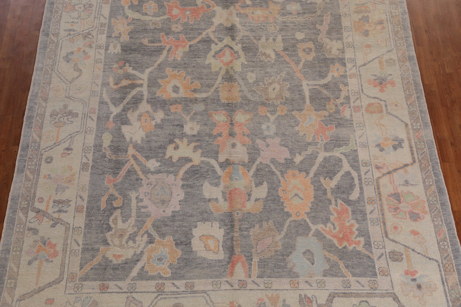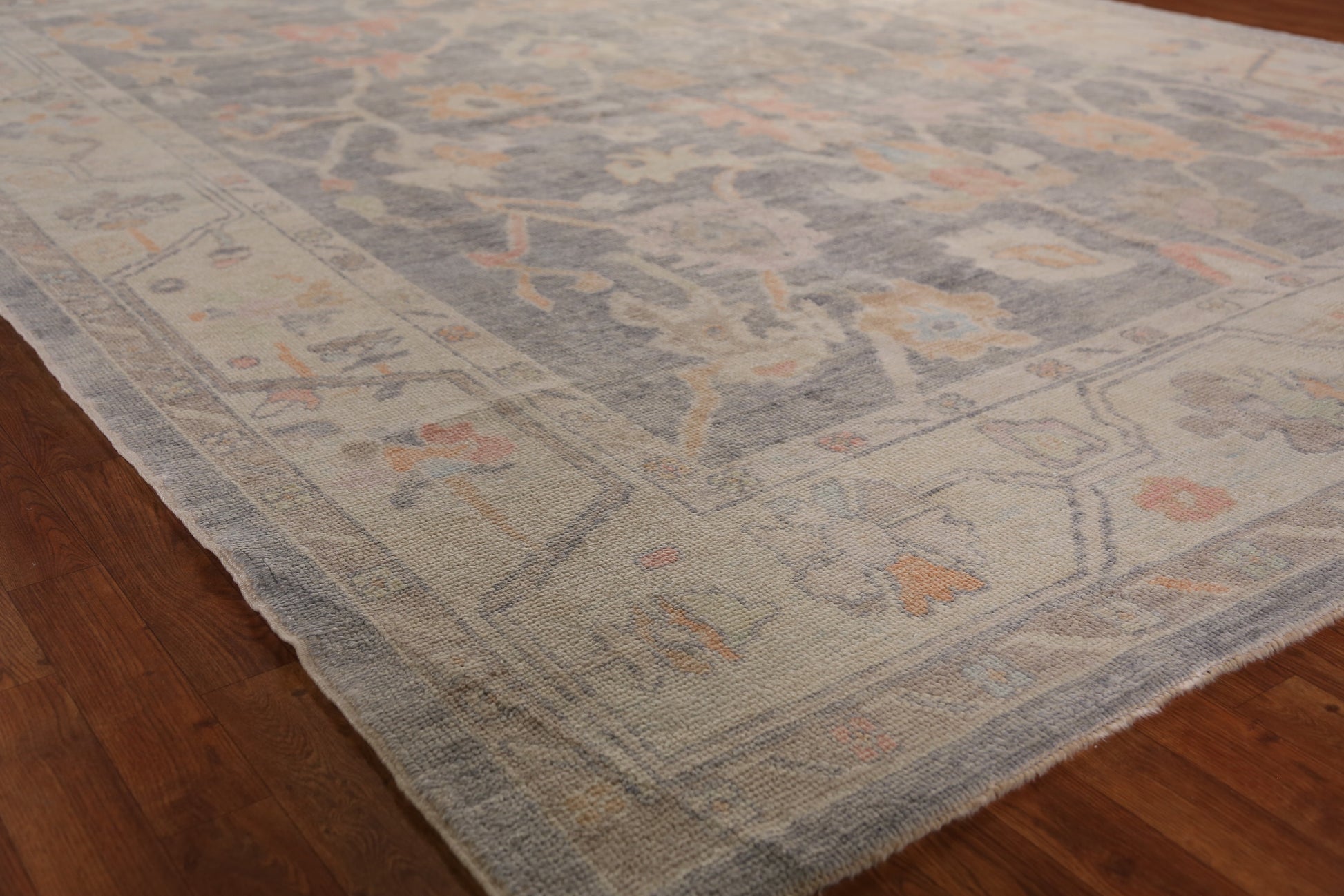 Handmade Gray Floral Oushak Vegetable Dye Area Rug 9x12