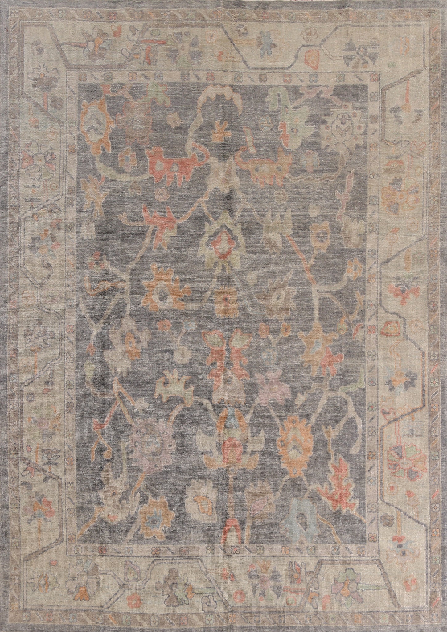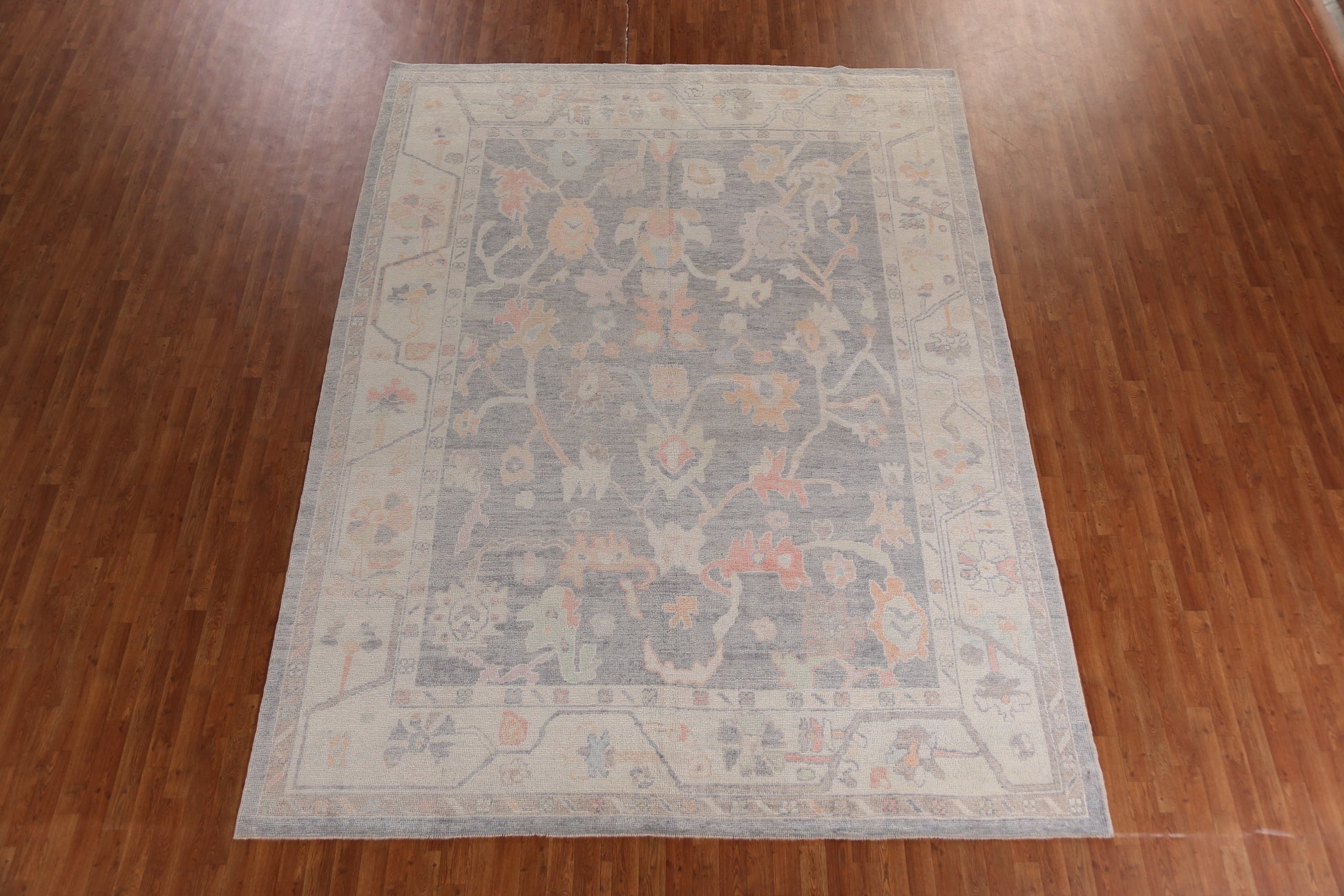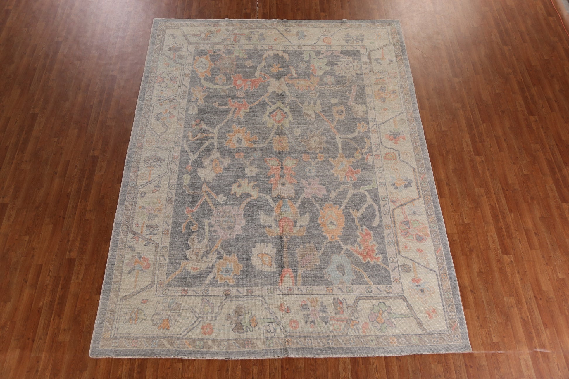 Handmade Gray Floral Oushak Vegetable Dye Area Rug 9x12