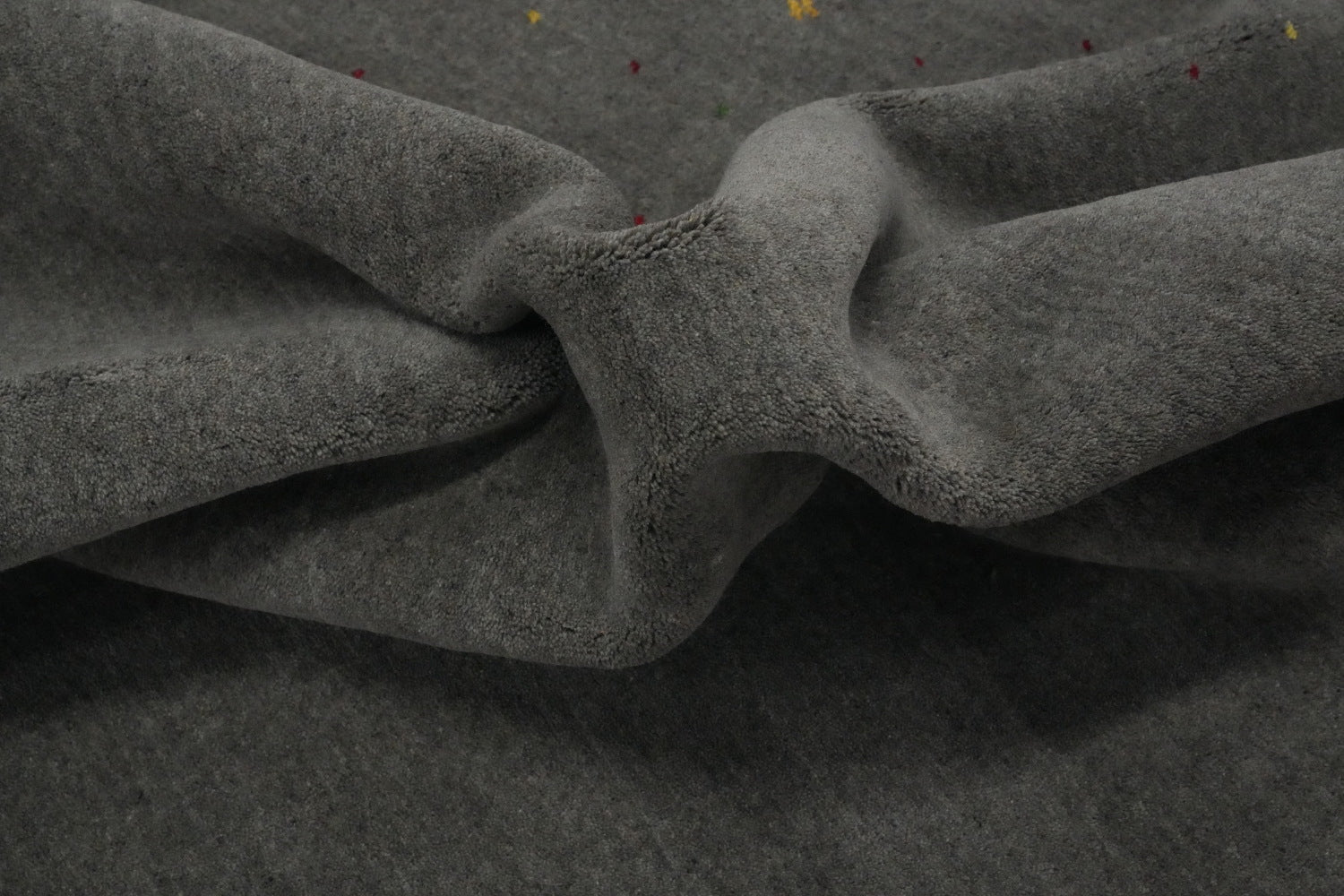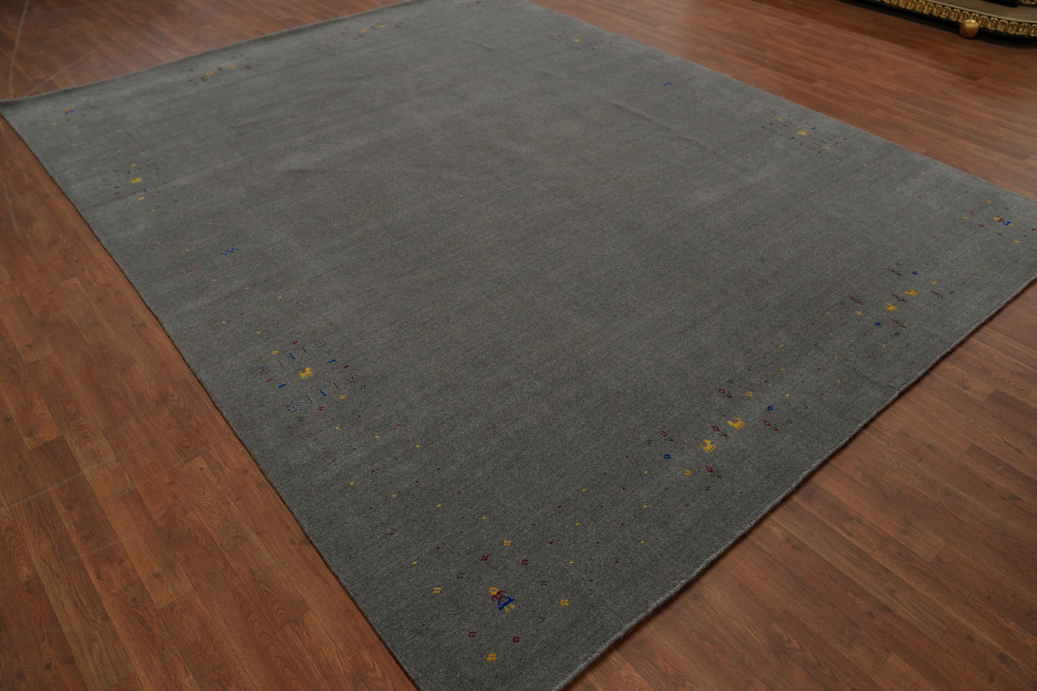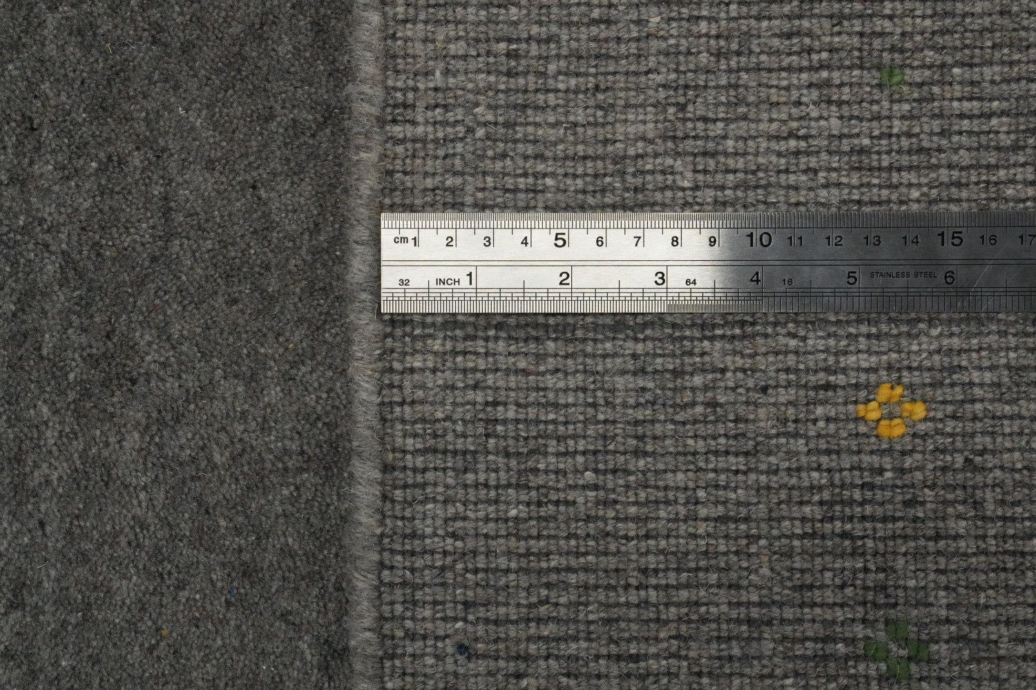A Beautiful Genuine India Gabbeh rug is Hand Knotted by skillful weavers in India with 100% Wool Material. This rug is in New, First Quality condition. dimensions are 11' 9'' X 9' 2'' in foot and 358 X 279 in centimeter. the primary color is Greys & Charcoal.