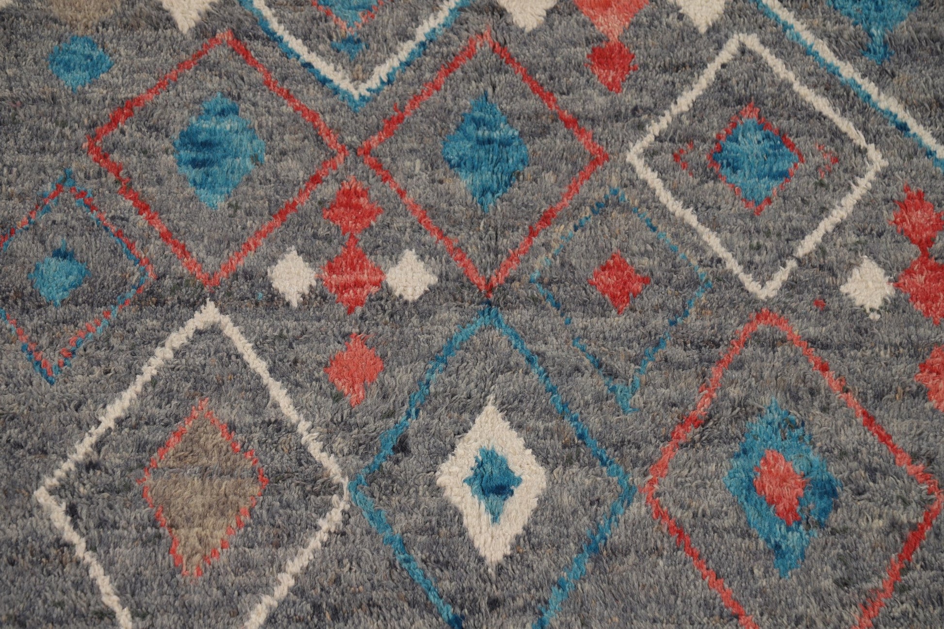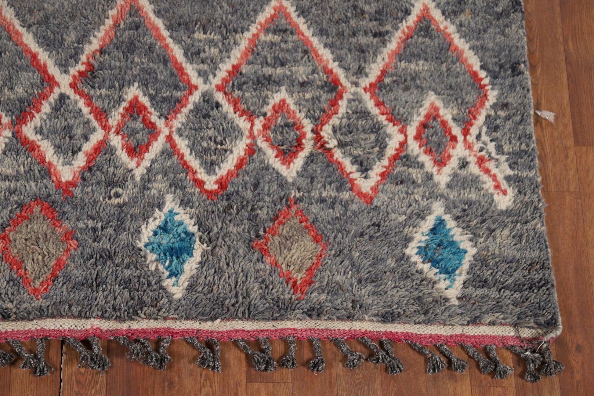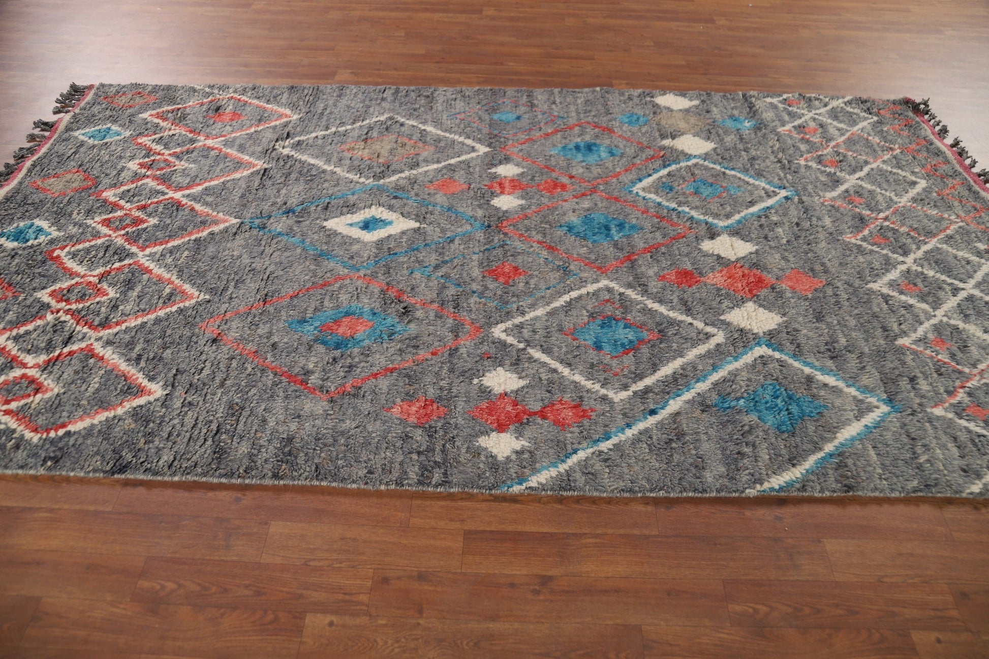 A Beautiful Genuine Pakistan Moroccan rug is Hand Knotted by skillful weavers in Pakistan with 100% Wool Material. This rug is in condition. dimensions are 9' 6'' X 5' 4'' in foot and 290 X 163 in centimeter. the primary color is Greys & Charcoal.