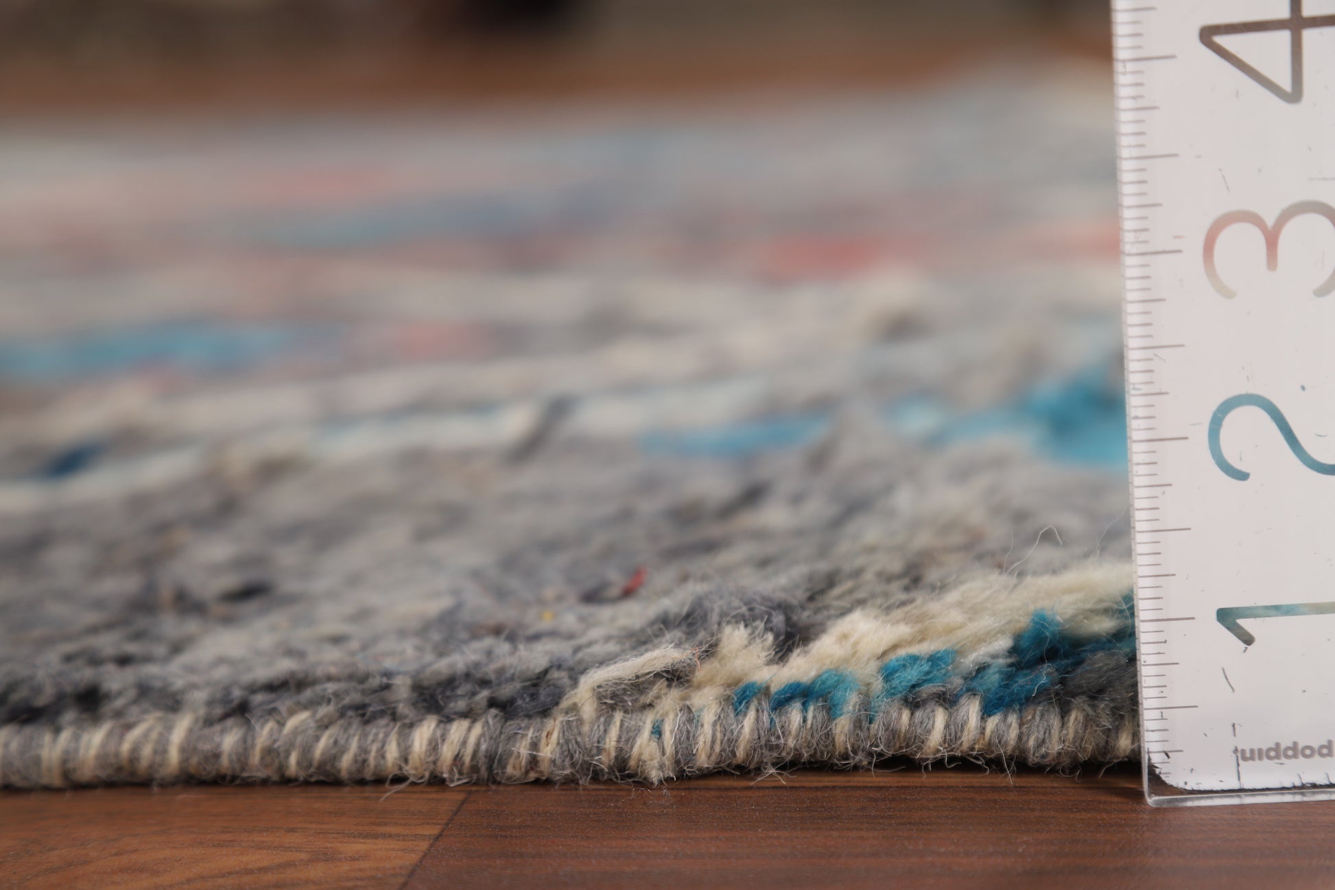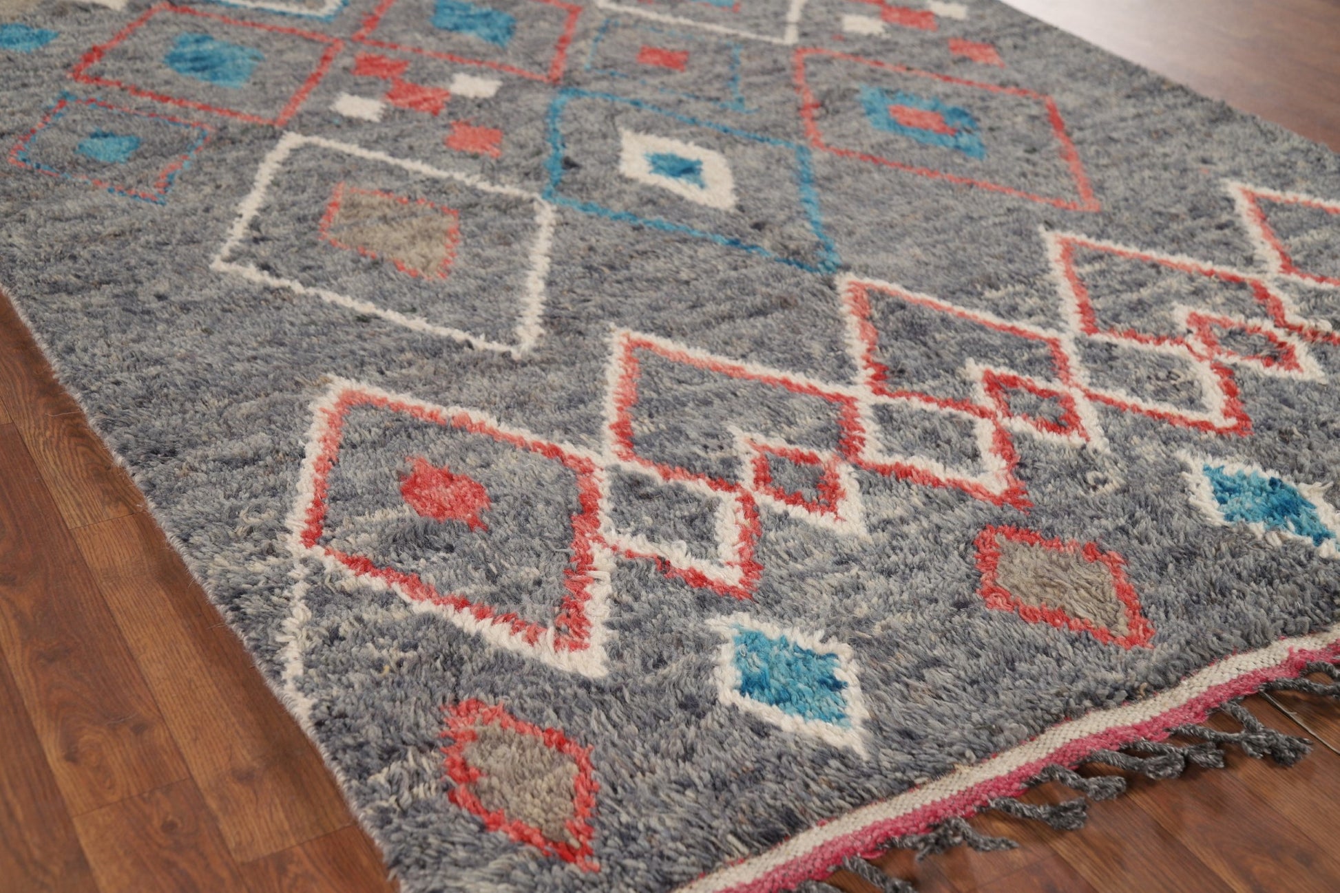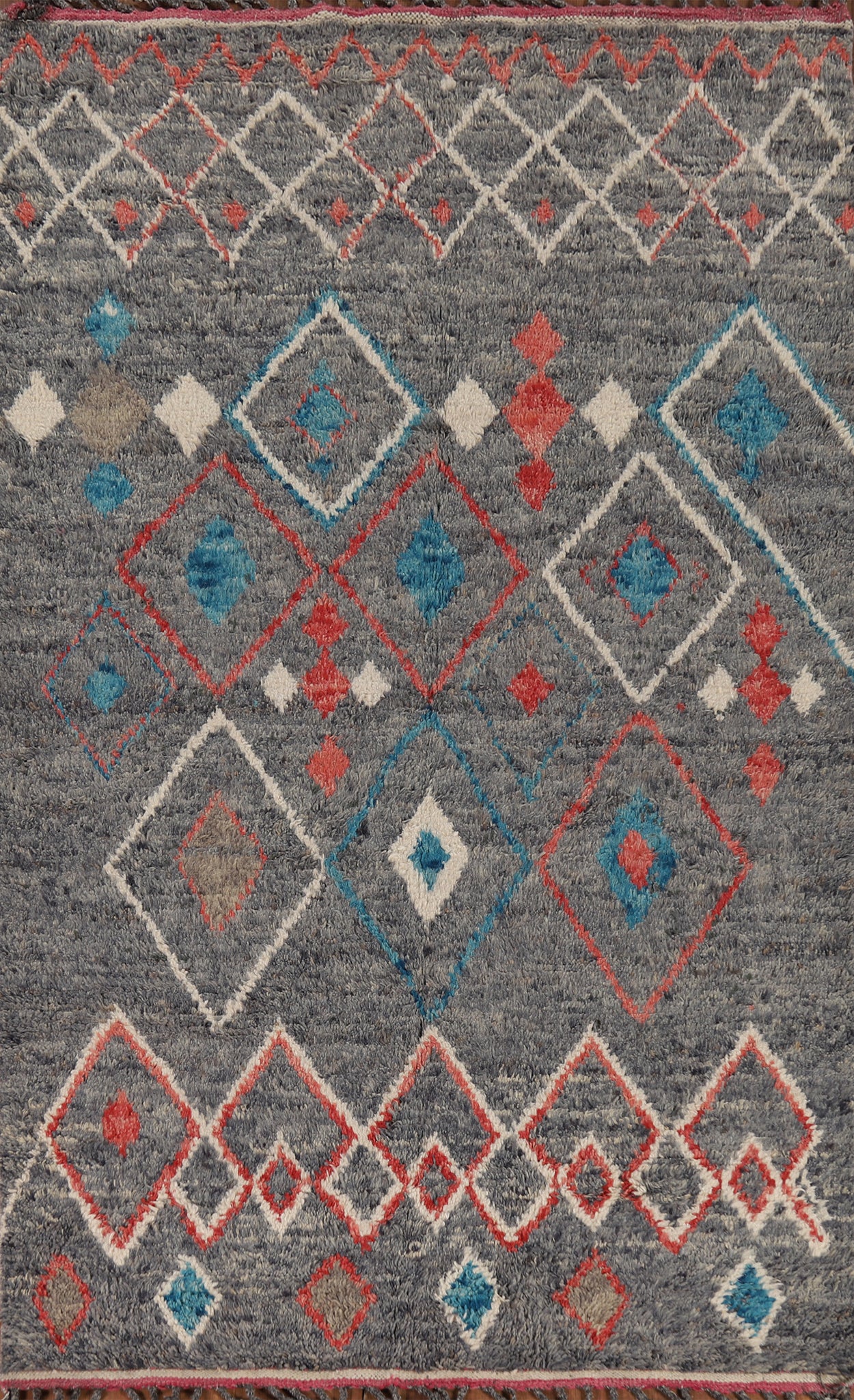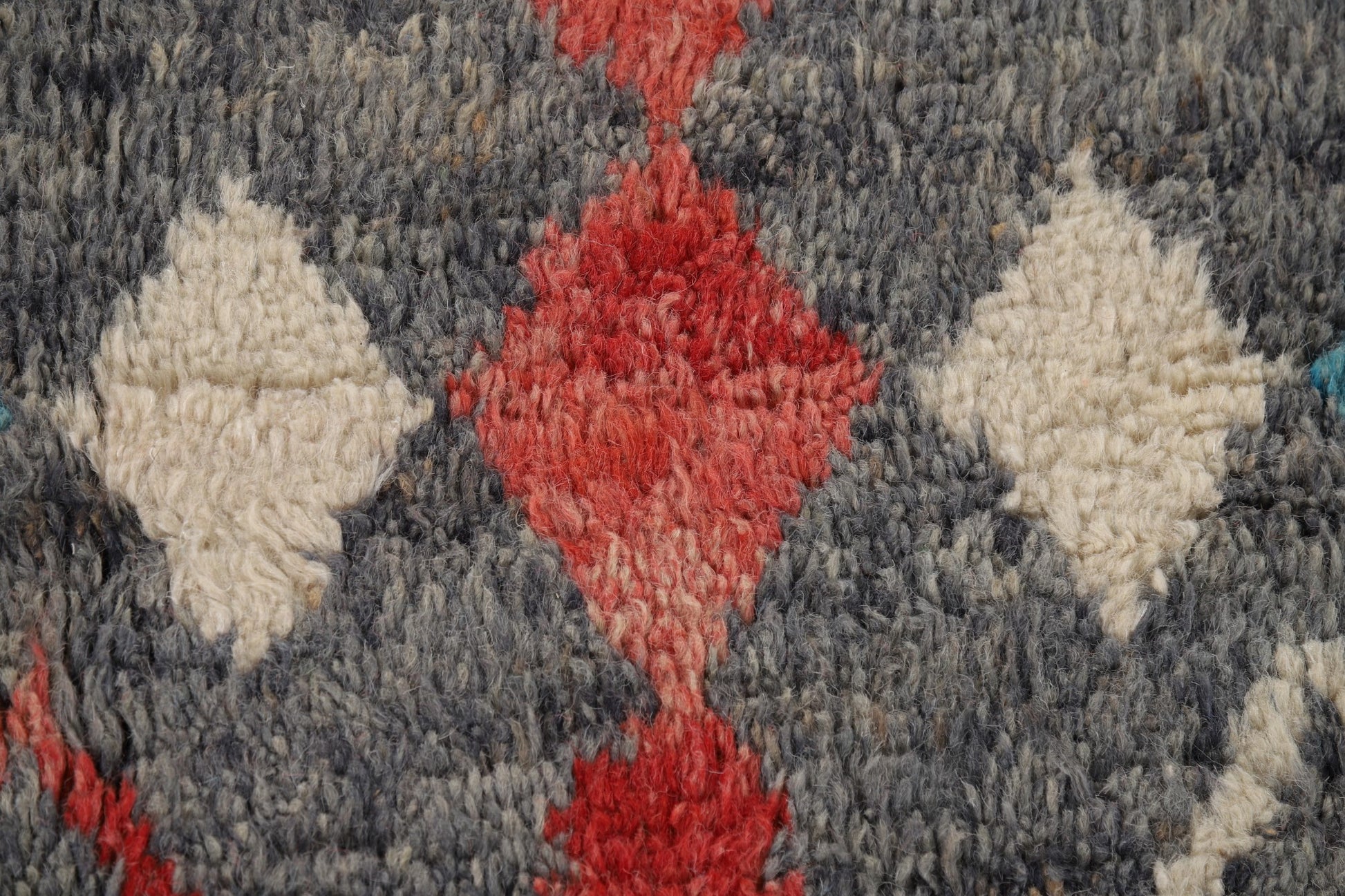 A Beautiful Genuine Pakistan Moroccan rug is Hand Knotted by skillful weavers in Pakistan with 100% Wool Material. This rug is in condition. dimensions are 9' 6'' X 5' 4'' in foot and 290 X 163 in centimeter. the primary color is Greys & Charcoal.