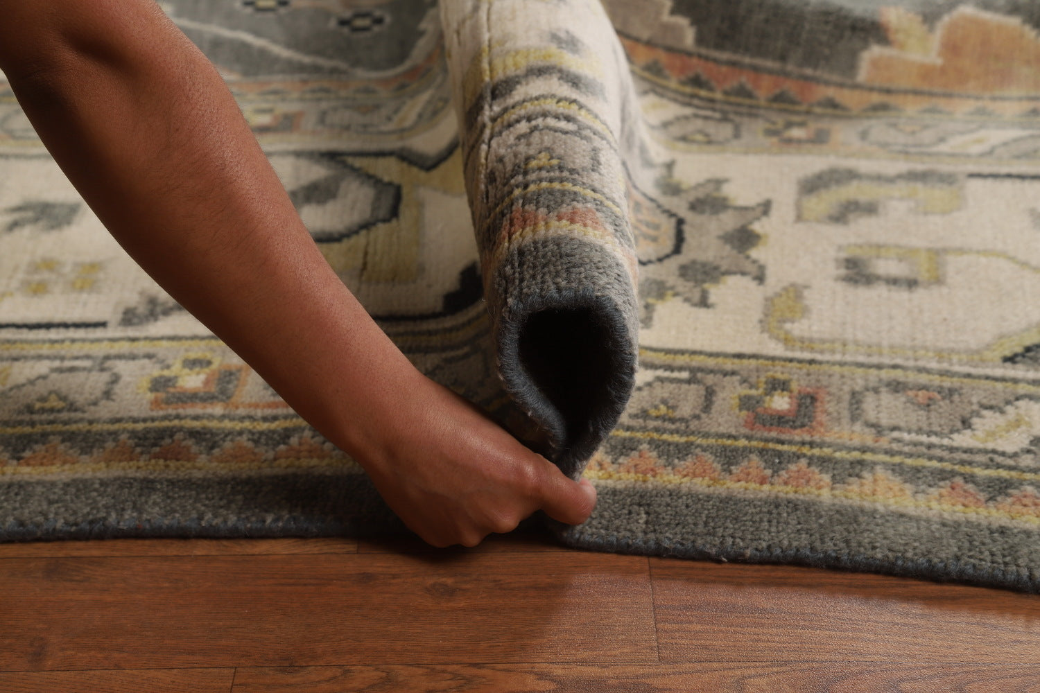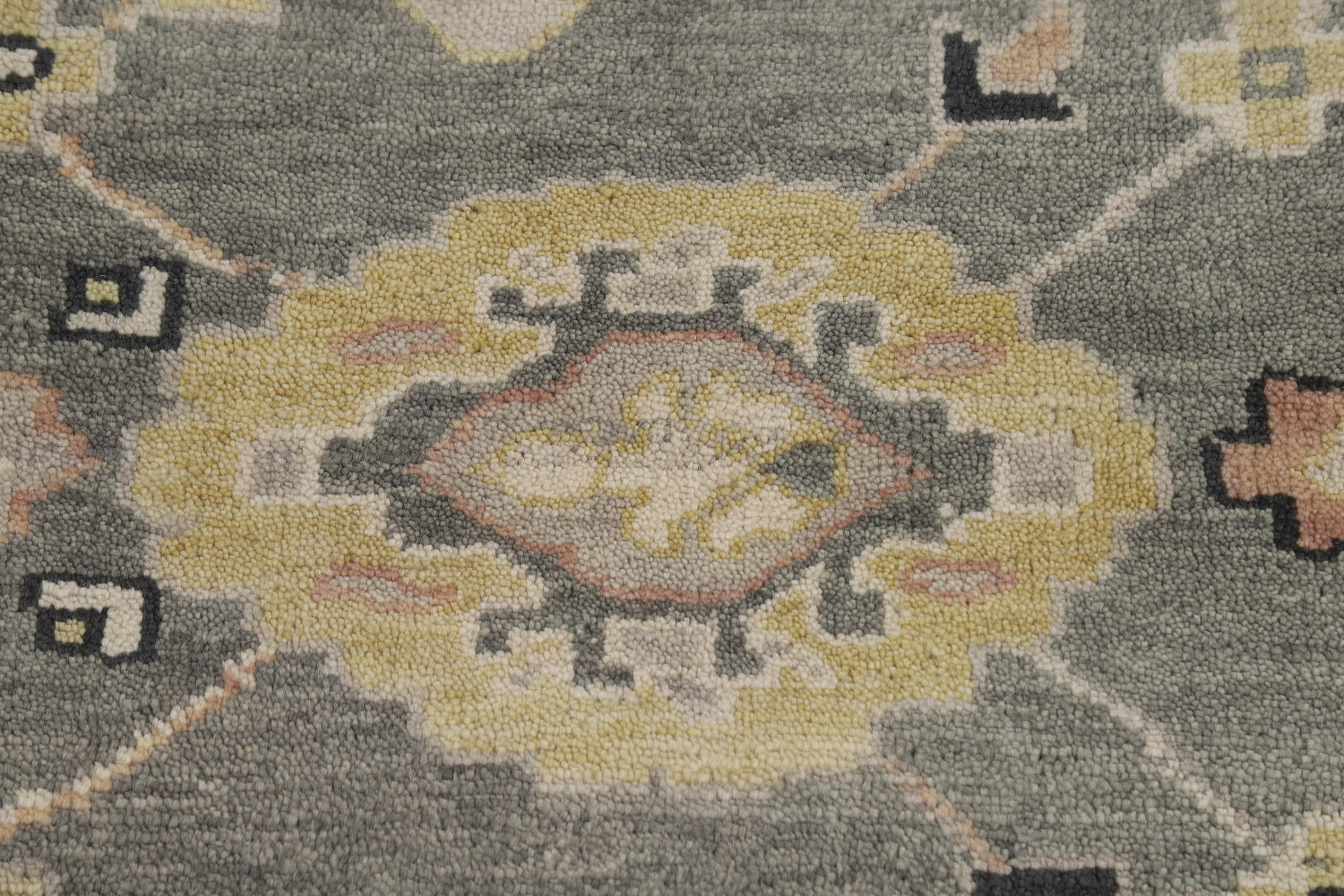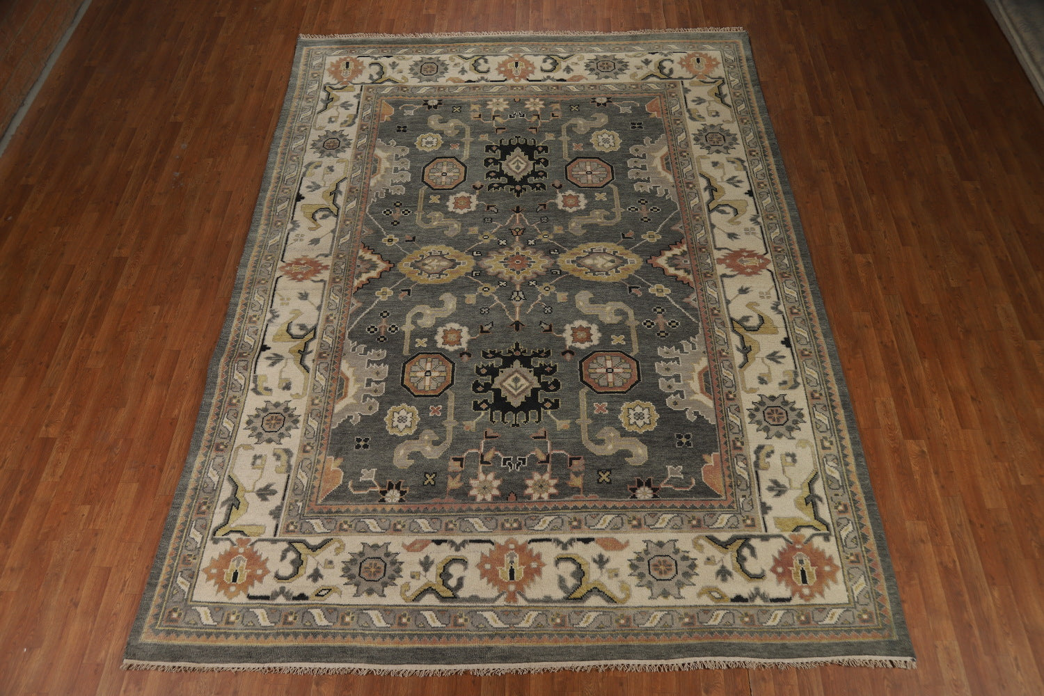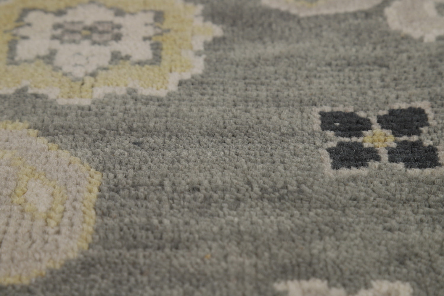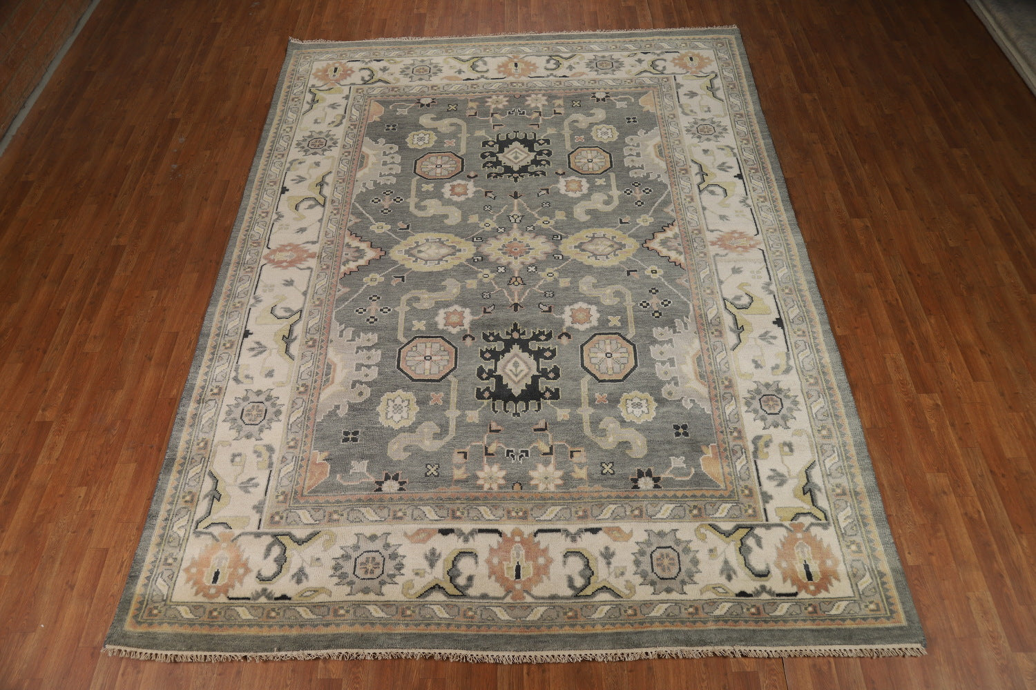 A Beautiful Genuine India Oushak rug is Hand Knotted by skillful weavers in India with 100% Wool Material. This rug is in New, First Quality condition. dimensions are 11' 10'' X 8' 4'' in foot and 361 X 254 in centimeter. the primary color is Greys & Charcoal.