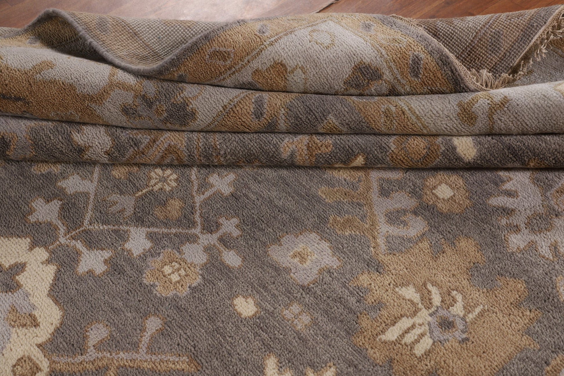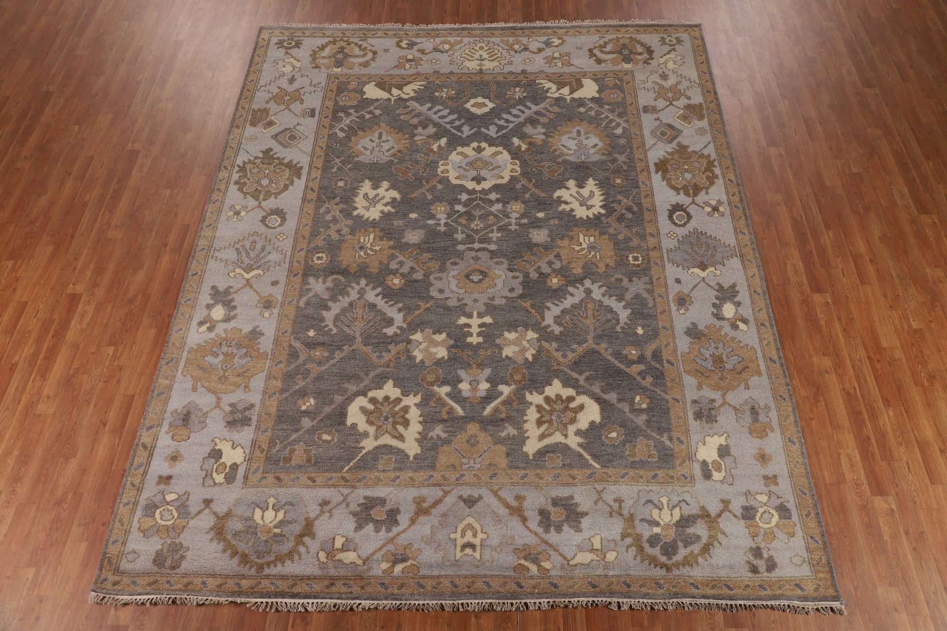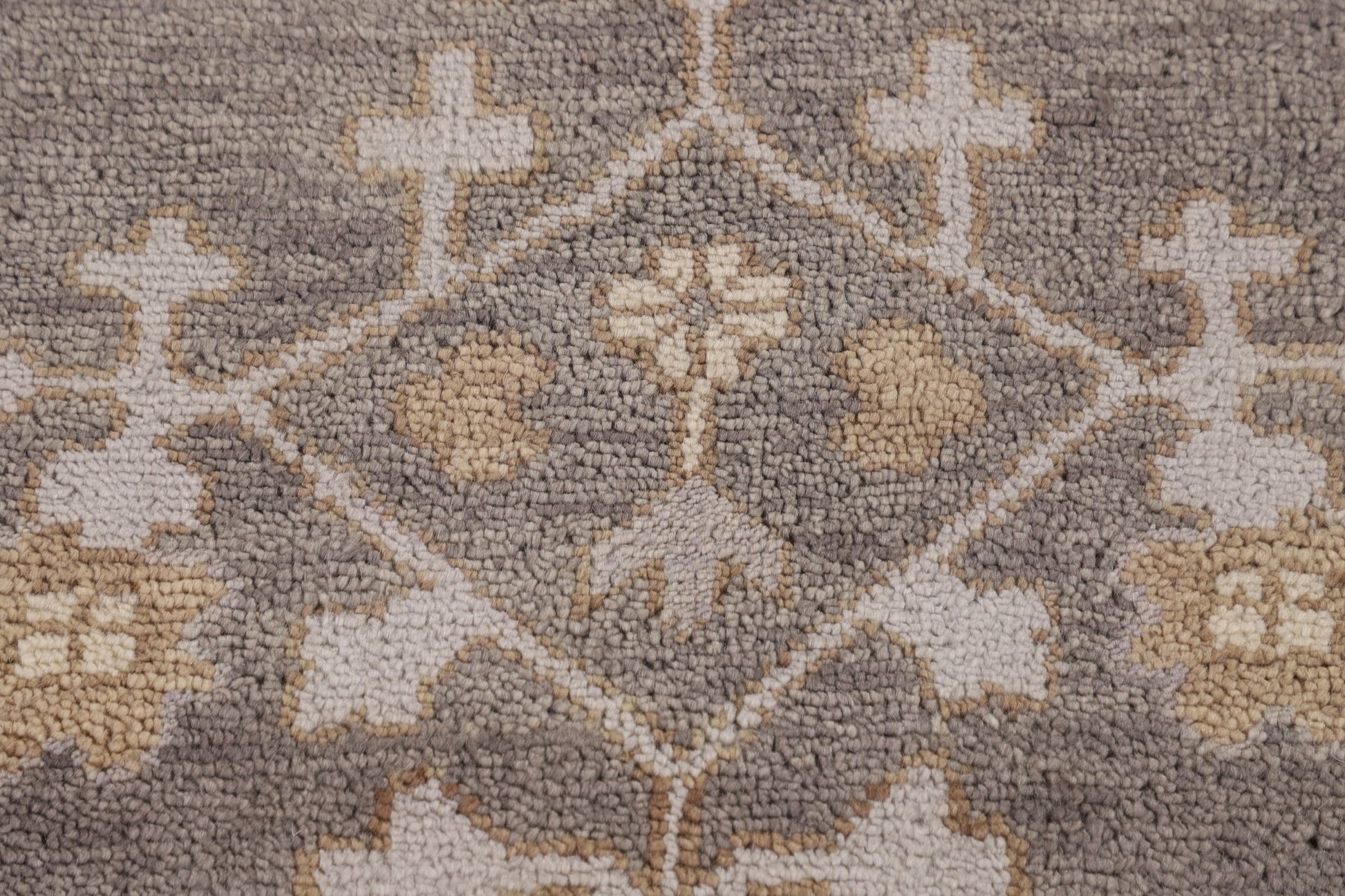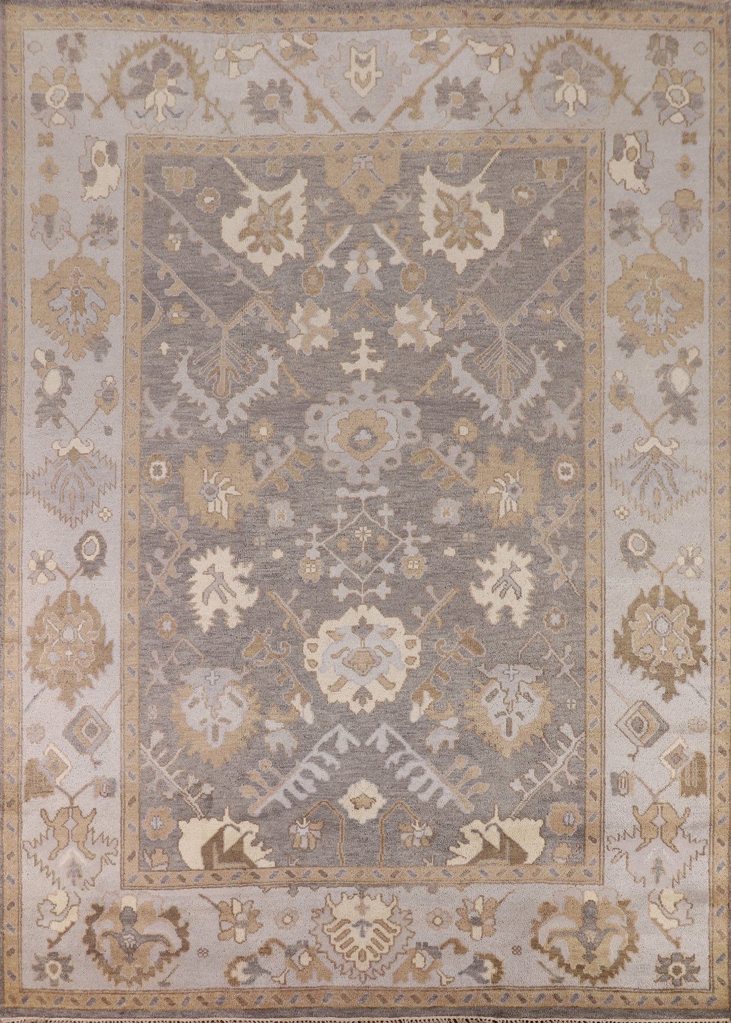 A Beautiful Genuine India Oushak rug is Hand Knotted by skillful weavers in India with 100% Wool Material. This rug is in New, First Quality condition. dimensions are 11' 7'' X 9' 3'' in foot and 353 X 282 in centimeter. the primary color is Greys & Charcoal.