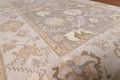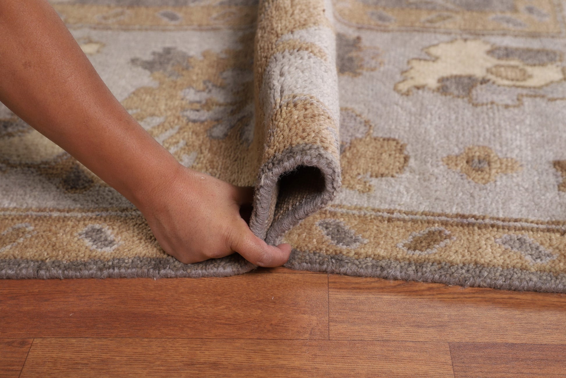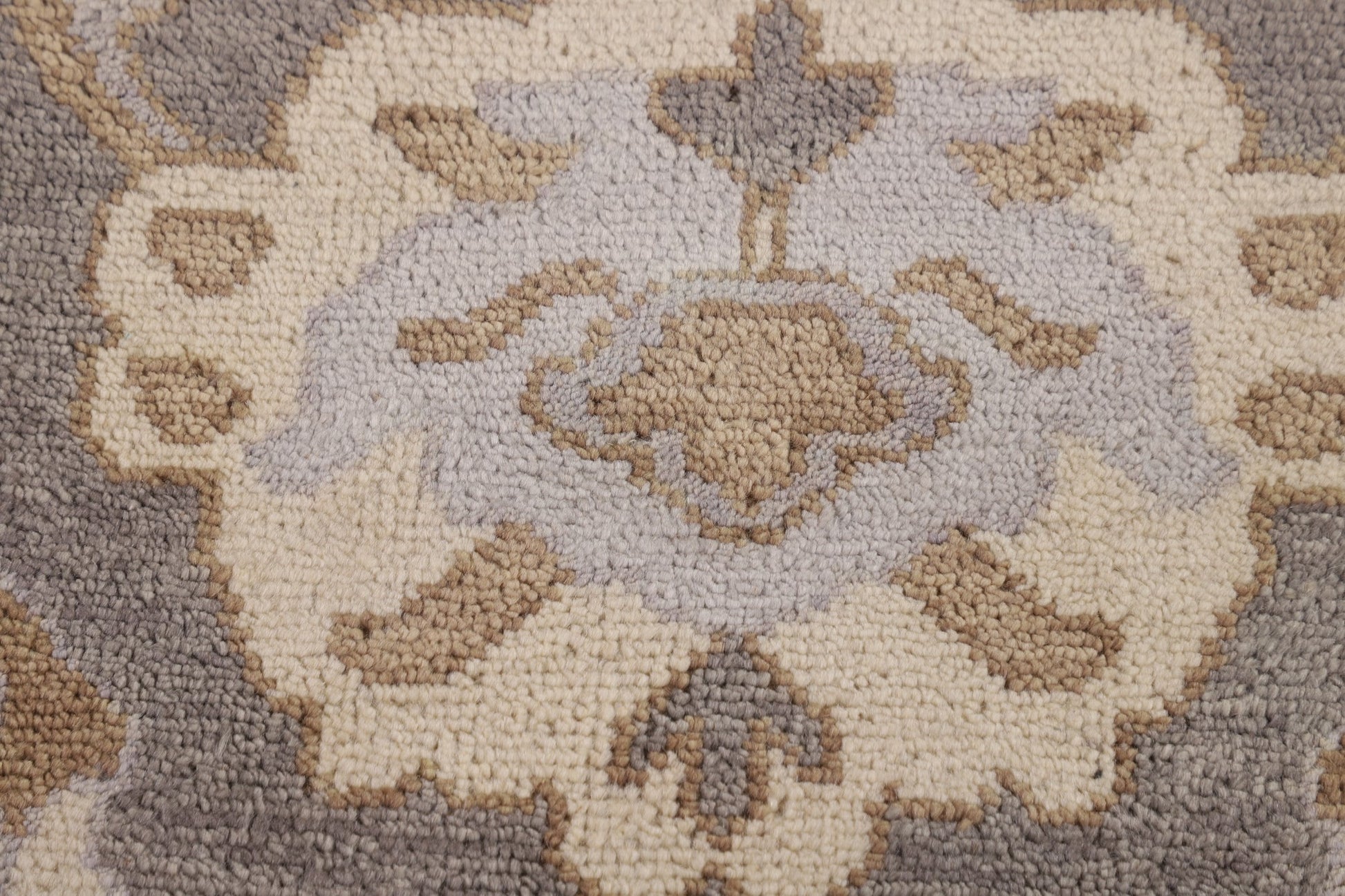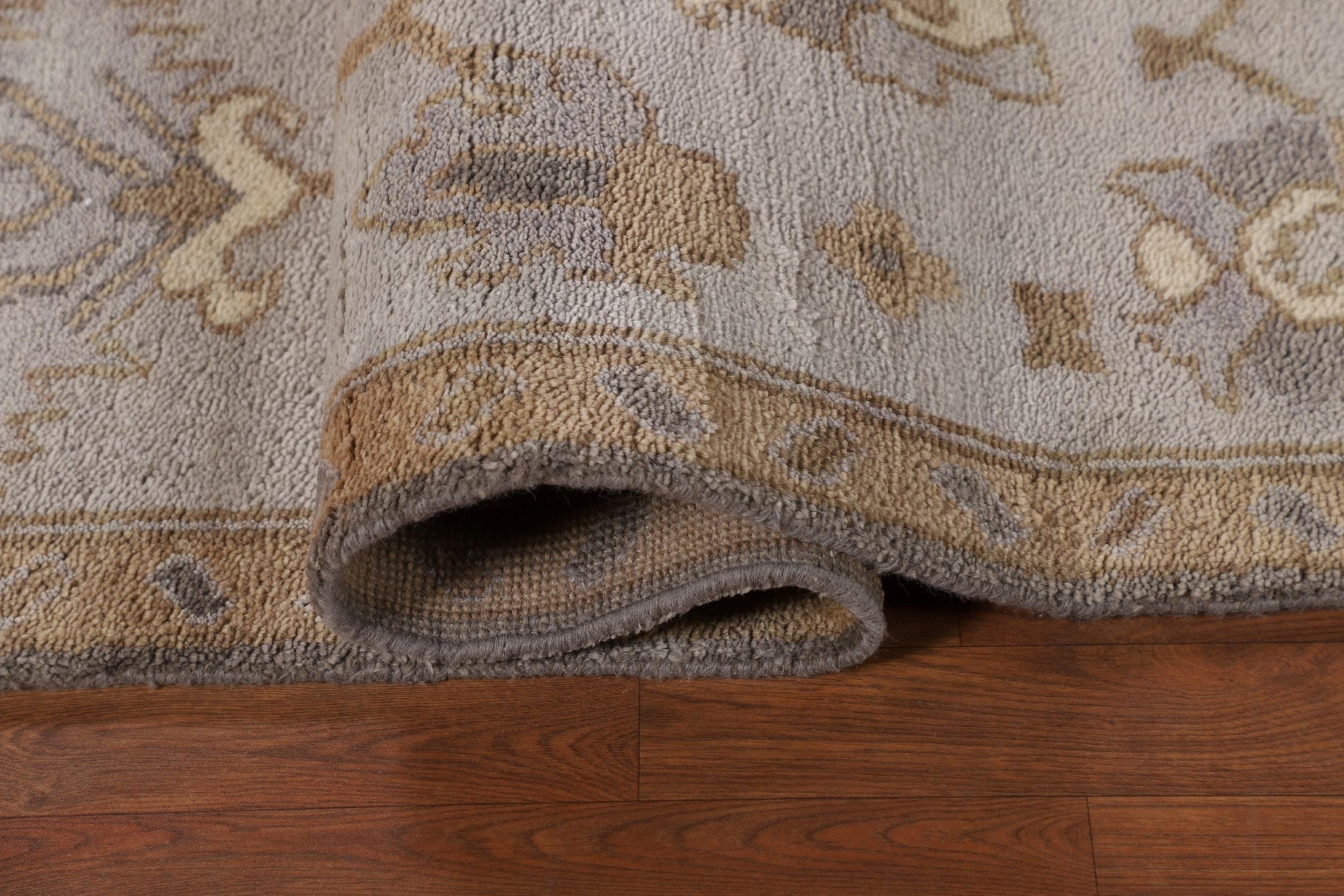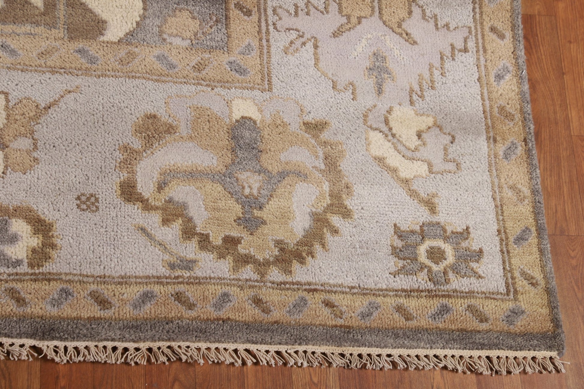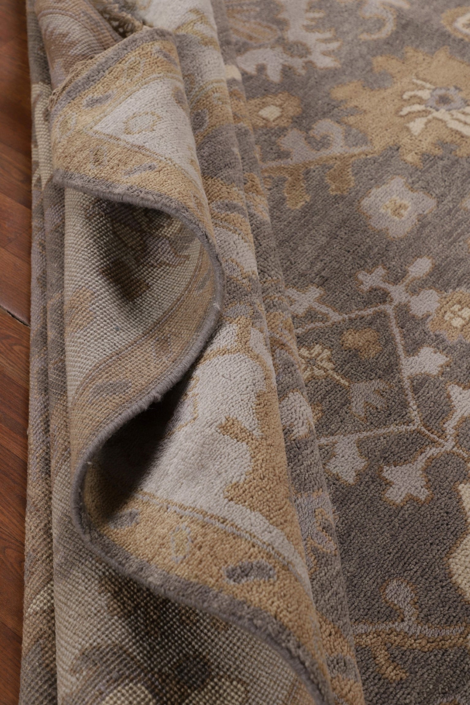 A Beautiful Genuine India Oushak rug is Hand Knotted by skillful weavers in India with 100% Wool Material. This rug is in New, First Quality condition. dimensions are 11' 7'' X 9' 3'' in foot and 353 X 282 in centimeter. the primary color is Greys & Charcoal.