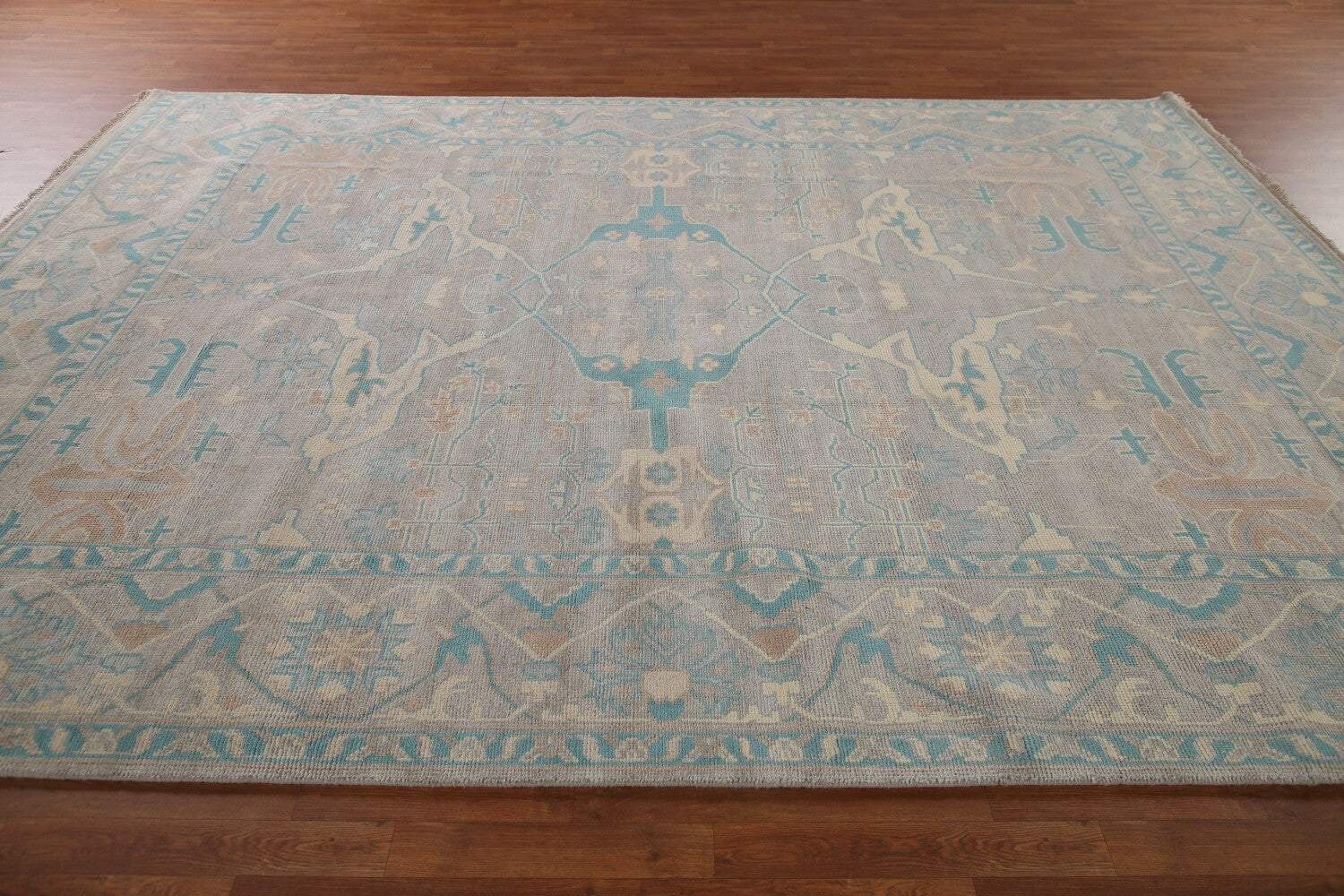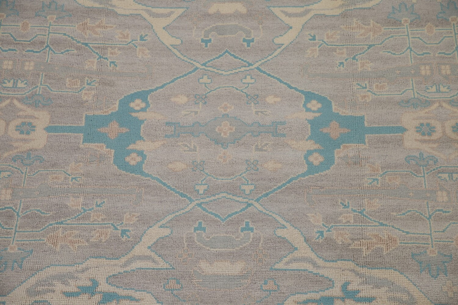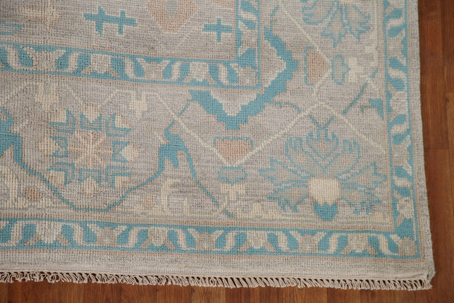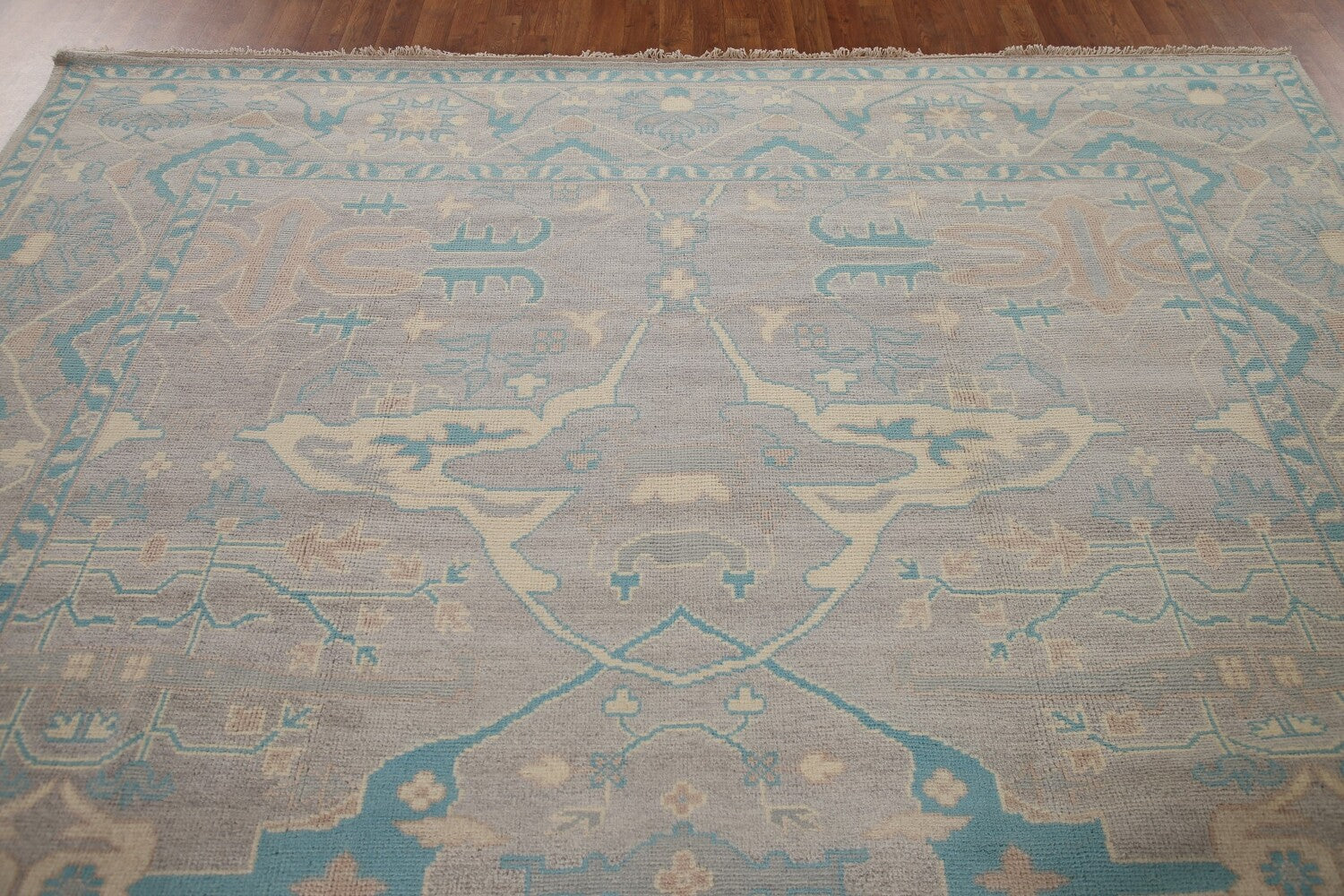 A Beautiful Genuine India Oushak rug is Hand Knotted by skillful weavers in India with 100% Wool Material. This rug is in New, First Quality condition. dimensions are 12' 1'' X 9' 1'' in foot and 368 X 277 in centimeter. the primary color is Greys & Charcoal.