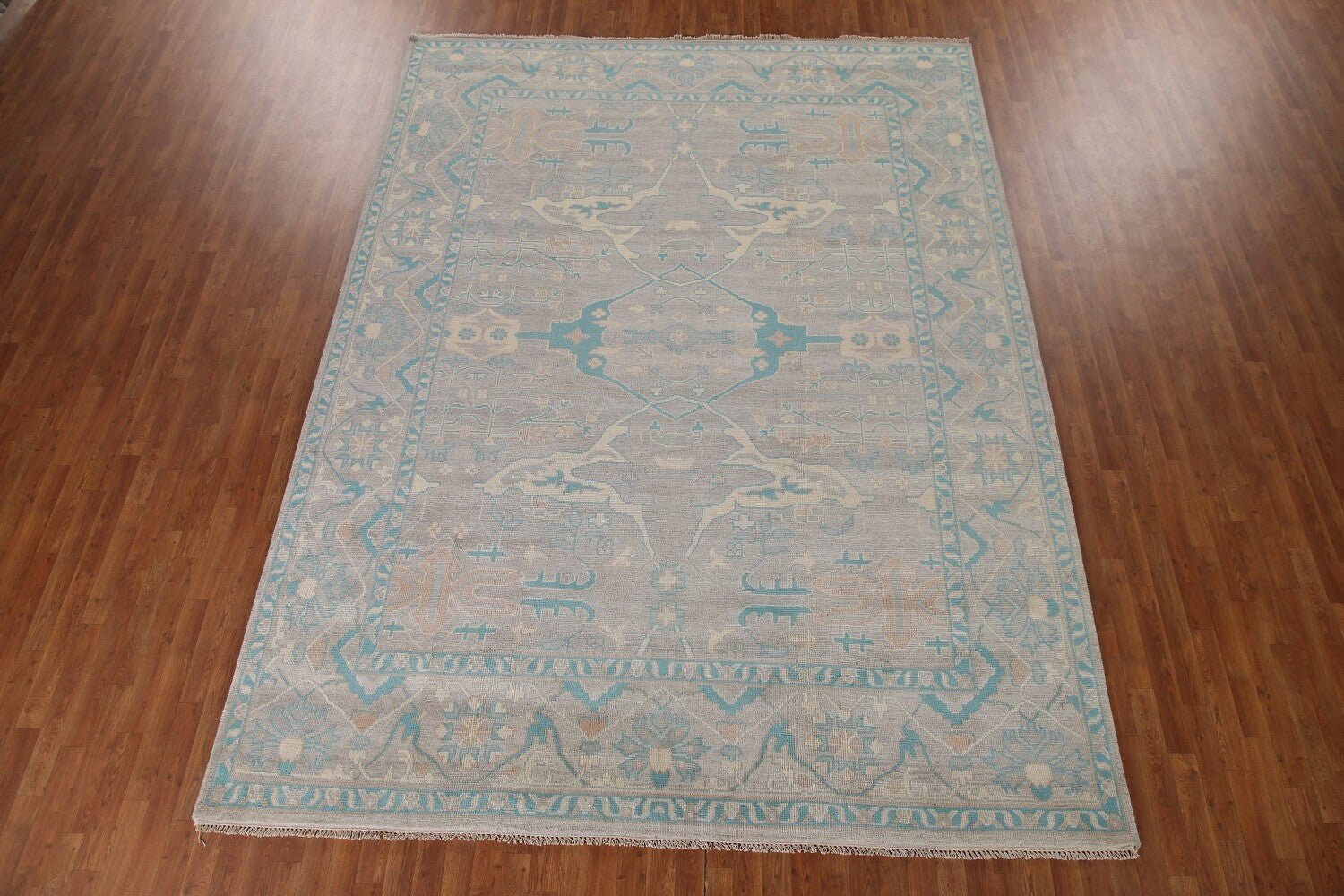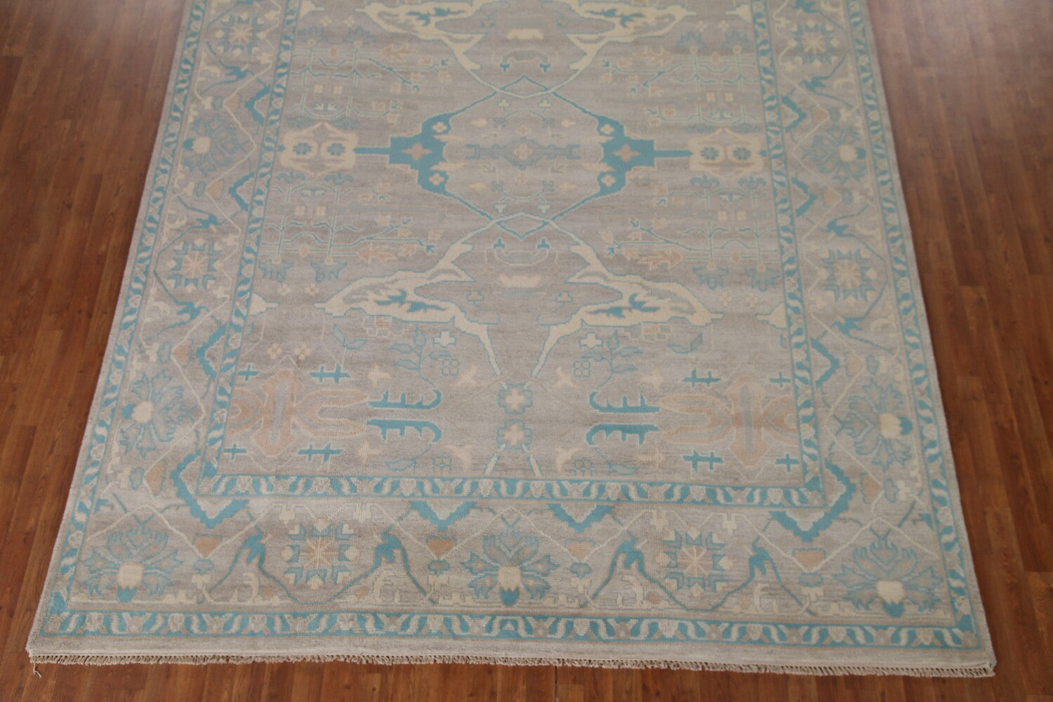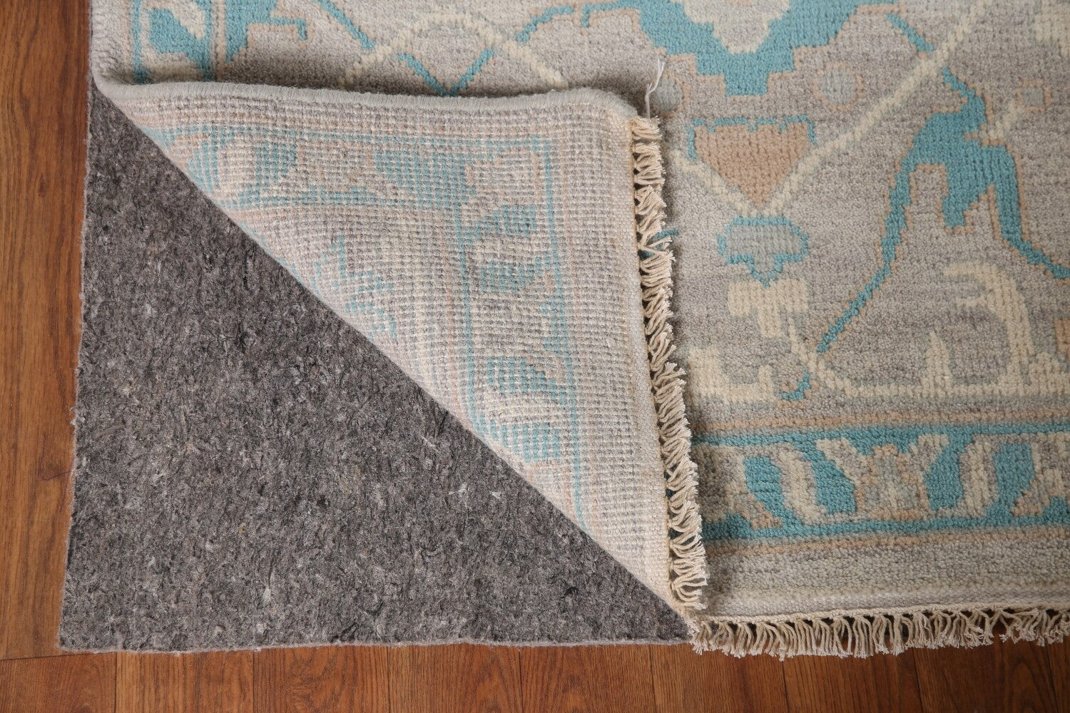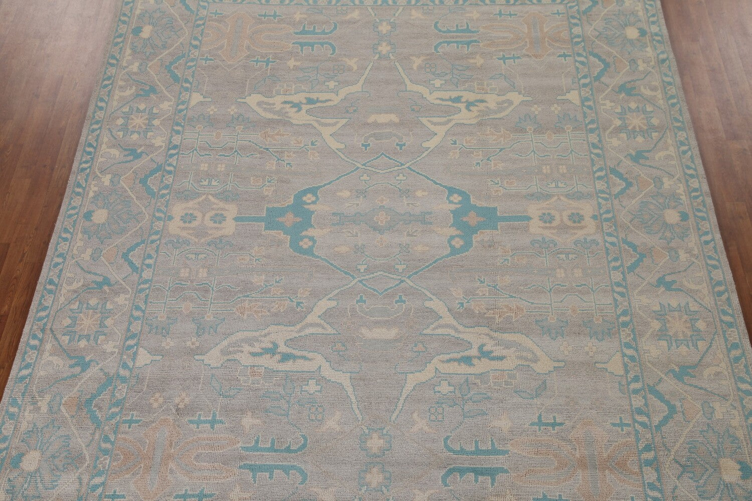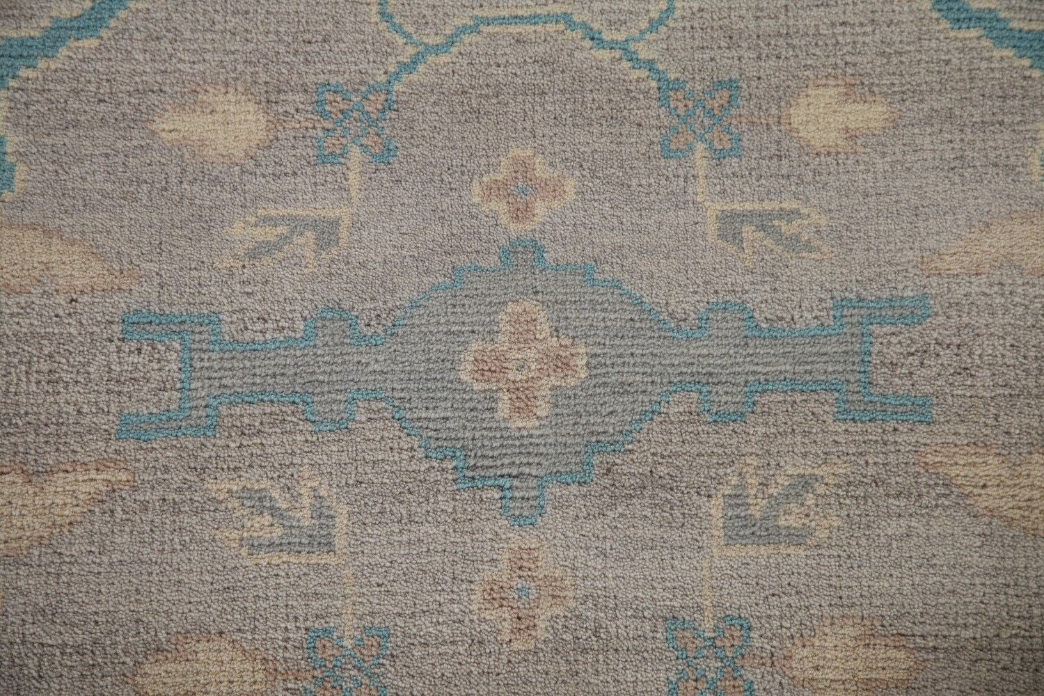 A Beautiful Genuine India Oushak rug is Hand Knotted by skillful weavers in India with 100% Wool Material. This rug is in New, First Quality condition. dimensions are 12' 1'' X 9' 1'' in foot and 368 X 277 in centimeter. the primary color is Greys & Charcoal.